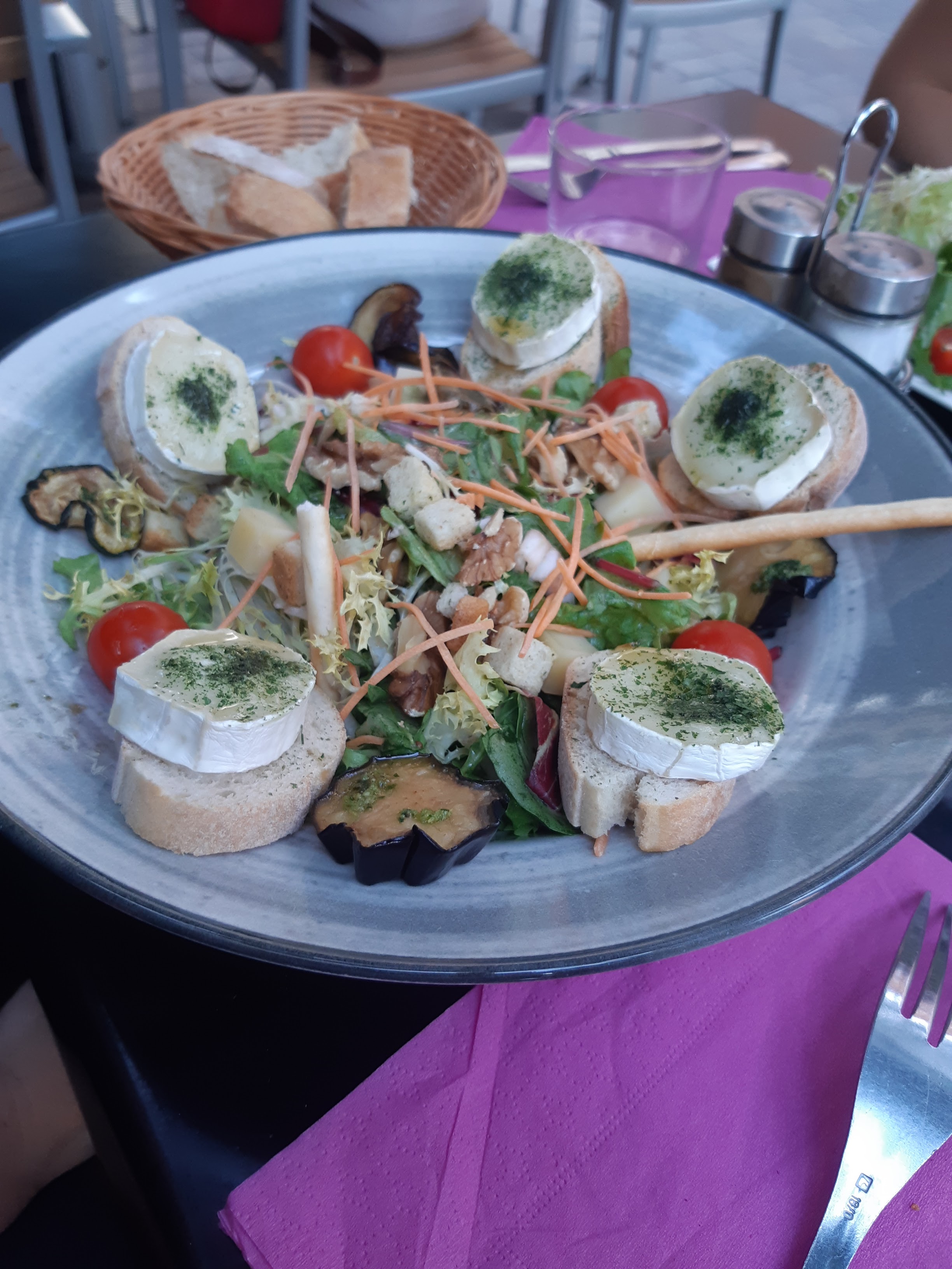 Décevant, attrape touristes. Salade en sachet avec trois tomates cerises et du chèvre pour un prix élevé. Brochette de viande correct servi avec très peu de purée et encore de la salade en sachet. Surtout passer votre chemin...