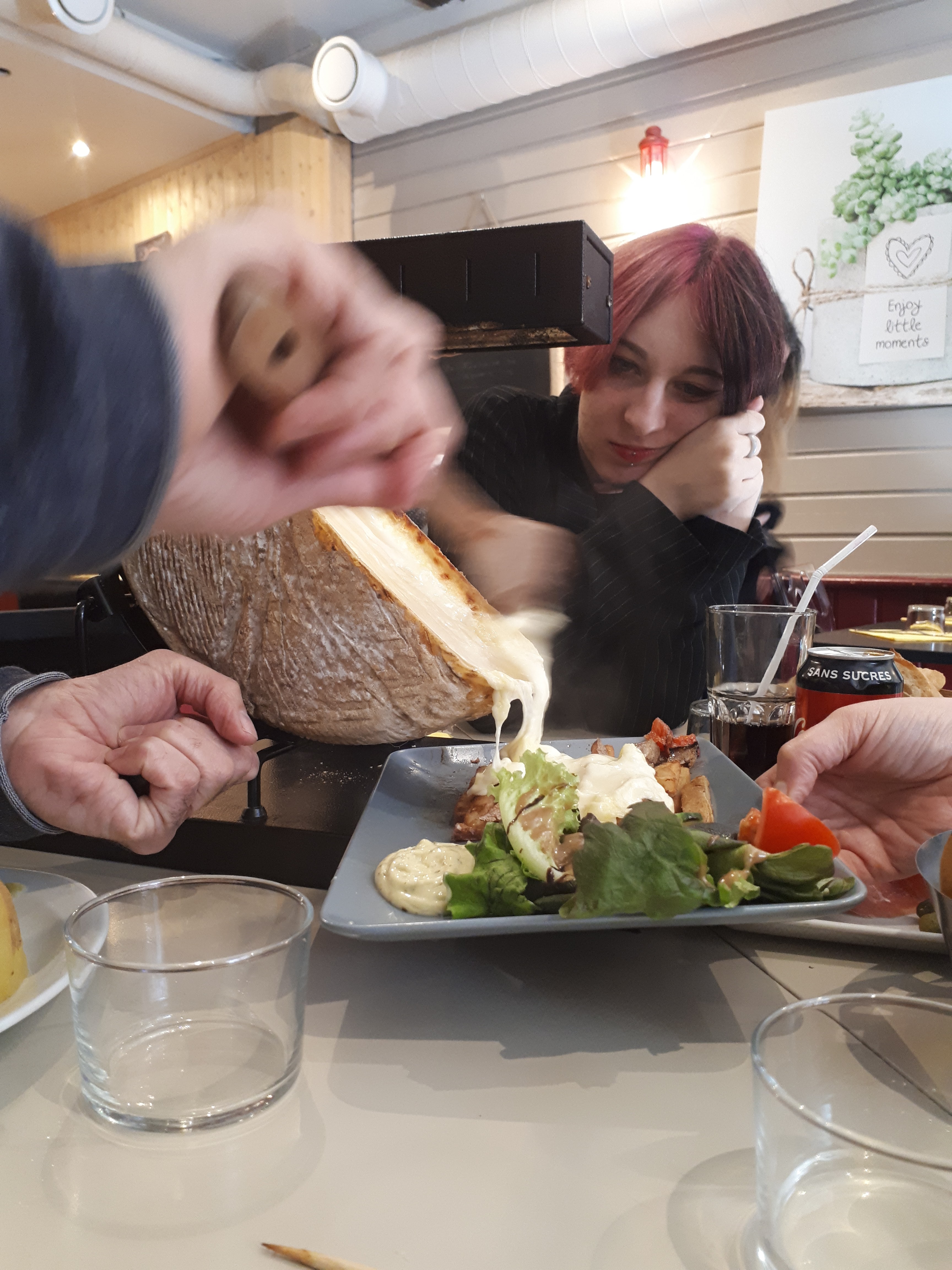 Ne lisez pas les avis négatifs précédent, quand on va dans un restau à raclette c'est pour sa raclette et non son ceviche, sa déco scandinave ou ses entrées vegan... Serveuse très gentille, fromage très correcte pour le prix, plateau de charcuterie quand à lui moyen, saucisson très moyen egalement mais que ça fait du bien. L'hiver est là et une raclette ça réchauffe tjrs. Au plaisir de revenir.