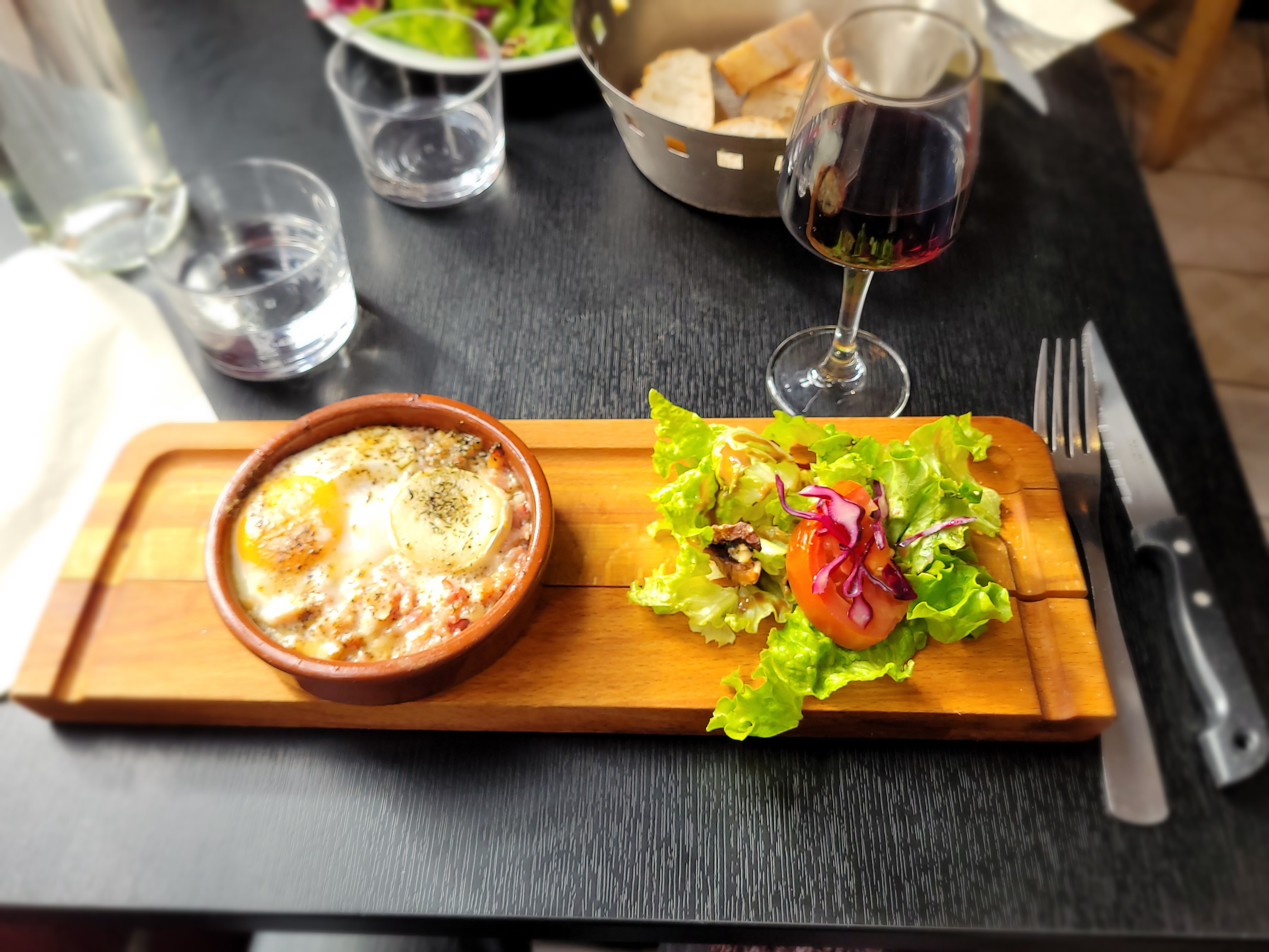 Famille marseillaise de passage à Toulouse. Très belle découverte de ce resto près de La Daurade. Œuf cocotte et fondue au magret de canard délicieux. Un petit Fronton rouge qui passe très bien.