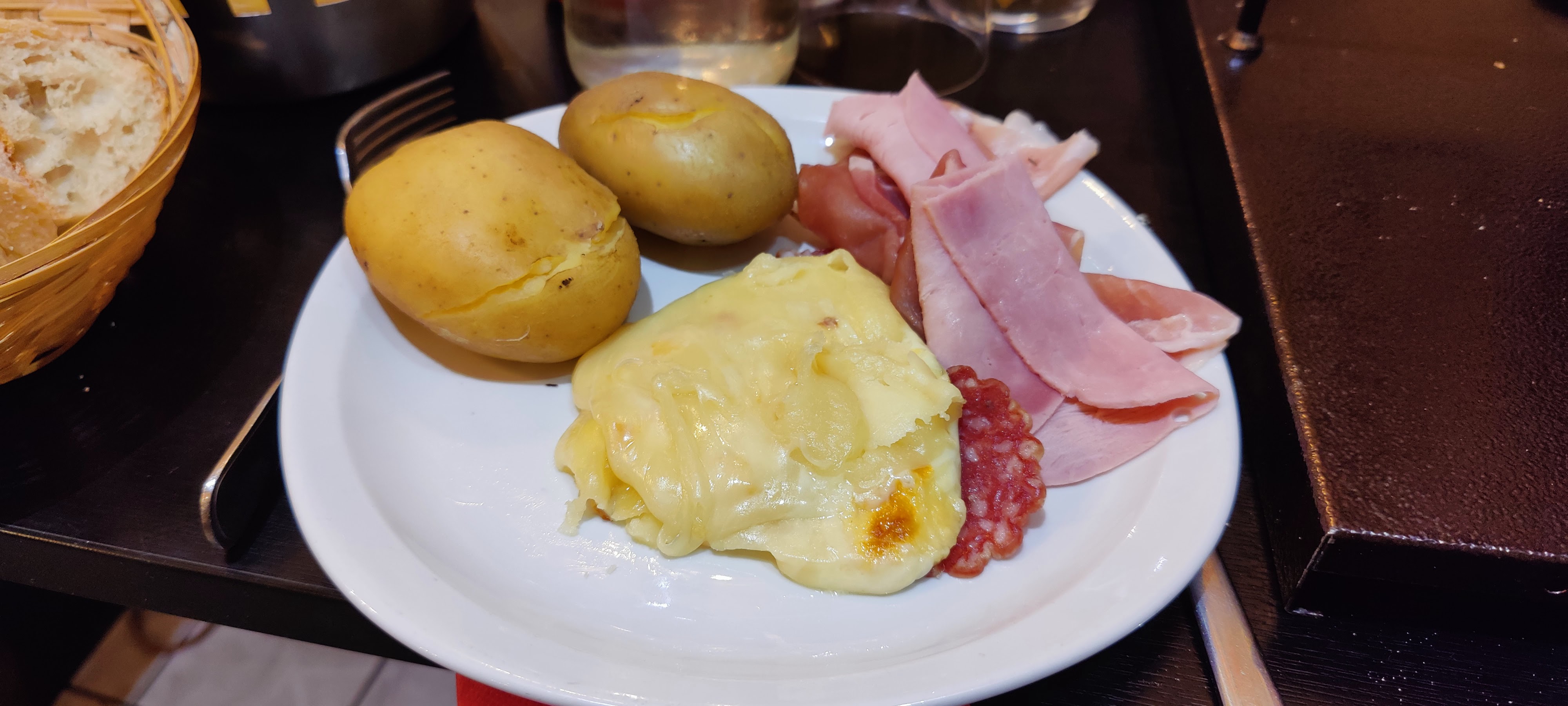 La raclette était très bonne, pour les grands mangeurs potentiellement pas assez de charcuteries (nous, on en a eu assez !)