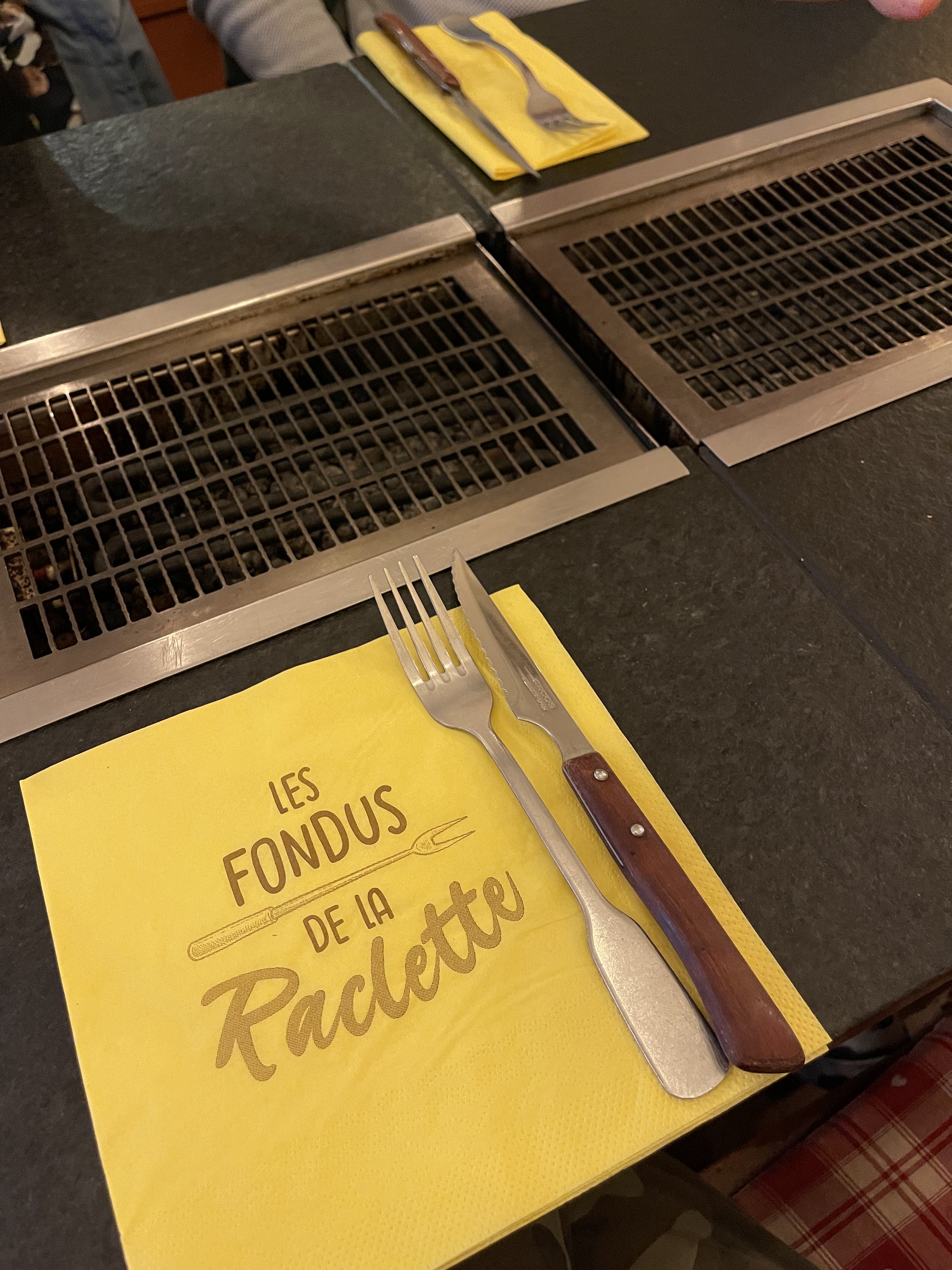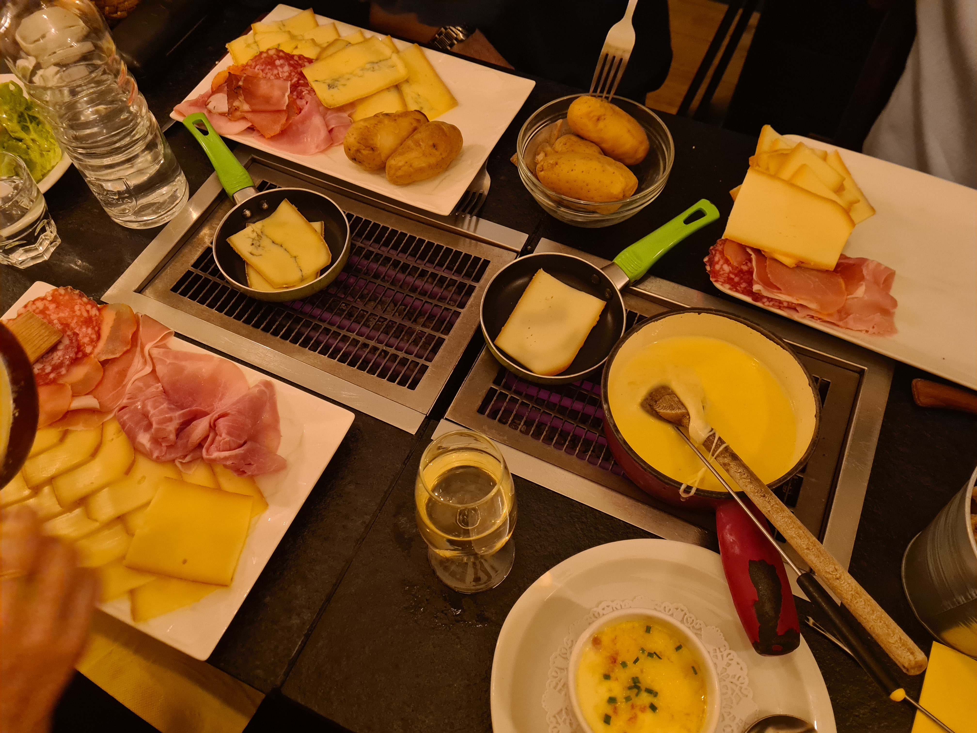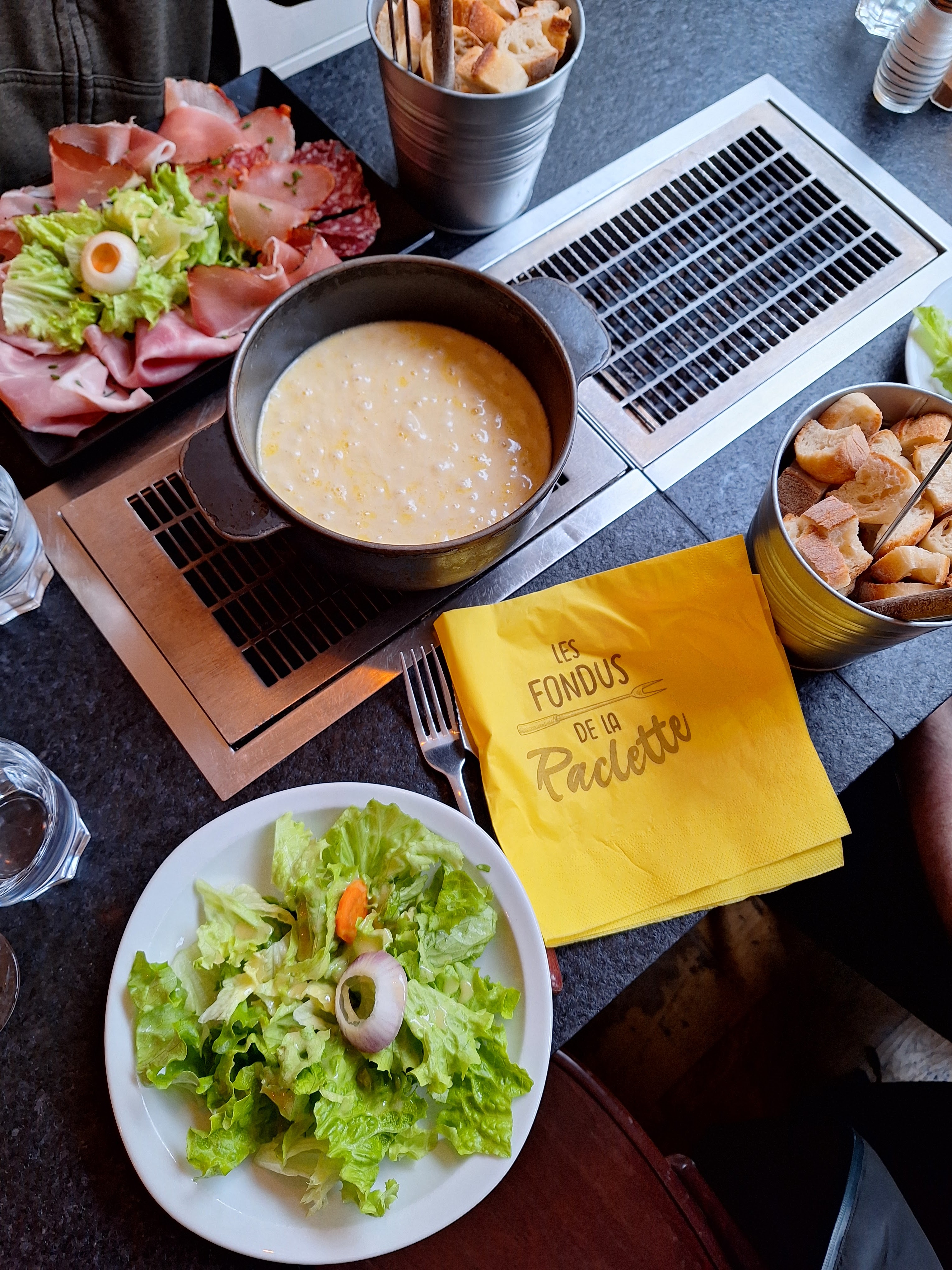 Passage au fondus de la raclette un peu mitigé… nous avons réservé pour 4 personnes mais en arrivant ils nous ont annoncé avoir des problèmes de gestion des tables (je ne sais pas si à cause d’un surbook) donc on a du attendre une bonne quinzaine des minutes avant d’être placés. Le service est quasi inexistant (nous avons du chercher nous même des couverts, du sel, des piques pour la fondu…). La portion de fromage pour la raclette est vraiment composée pour une seule personne donc pas très idéale pour partager. Sinon la fondue était bonne (je la conseille surtout si vous venez entre amis plutôt que la raclette qui est resté très légère).