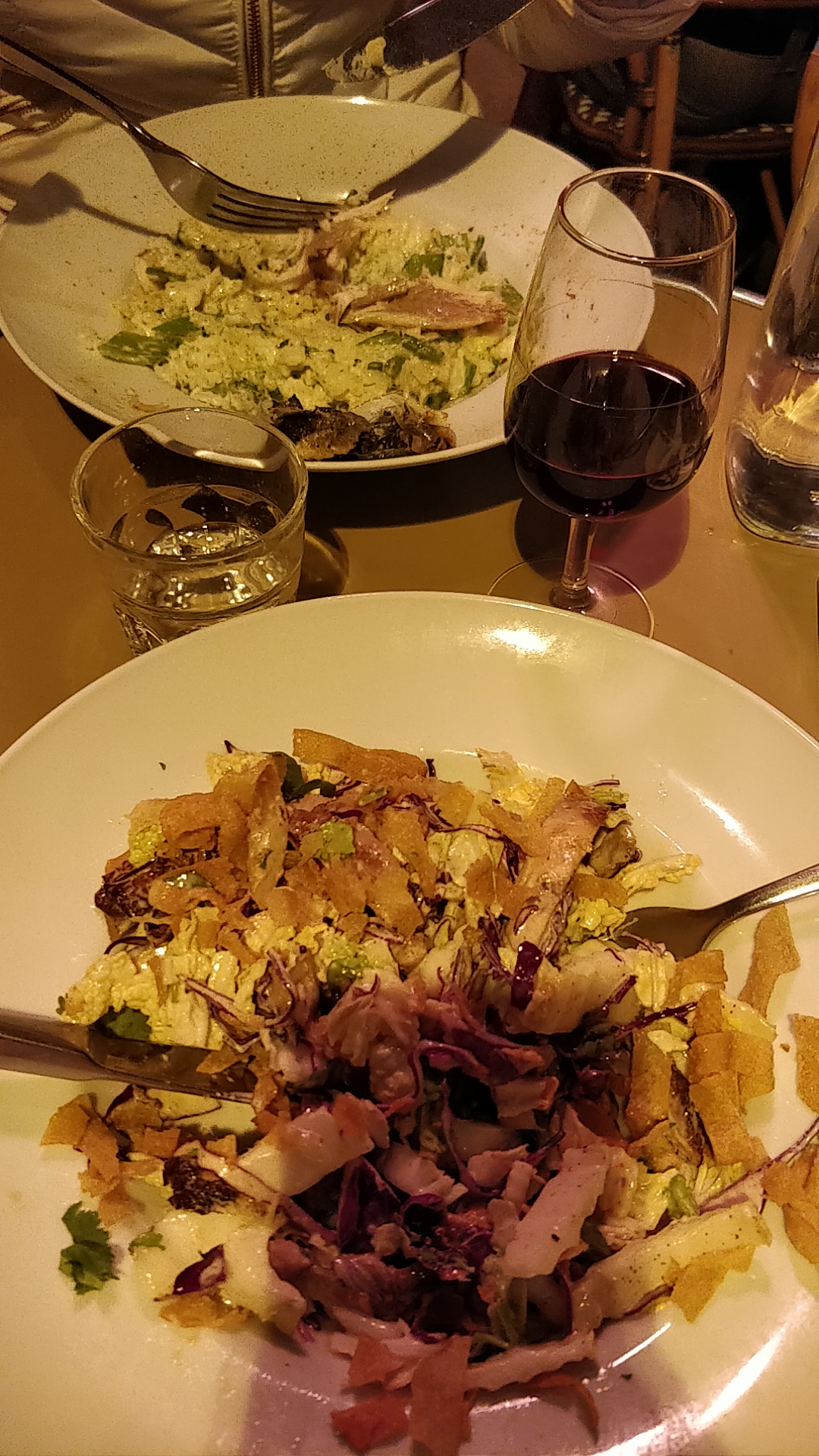 j'ai trouvé très bien que les deux salades proposées à la carte soient composées de légumes de saison, ça change des éternelles salades niçoise ou césar avec des tomates dégueu en plein hiver ! et justement la salade L'Hiver, véritable plat végétarien copieux avec lentilles chaudes, tranches de châtaignes et de potimarron rôti, mesclun et endive, tomme de brebis , juste ce qu'il faut mais pas trop de sauce , était un régal ! Merci de cette composition !