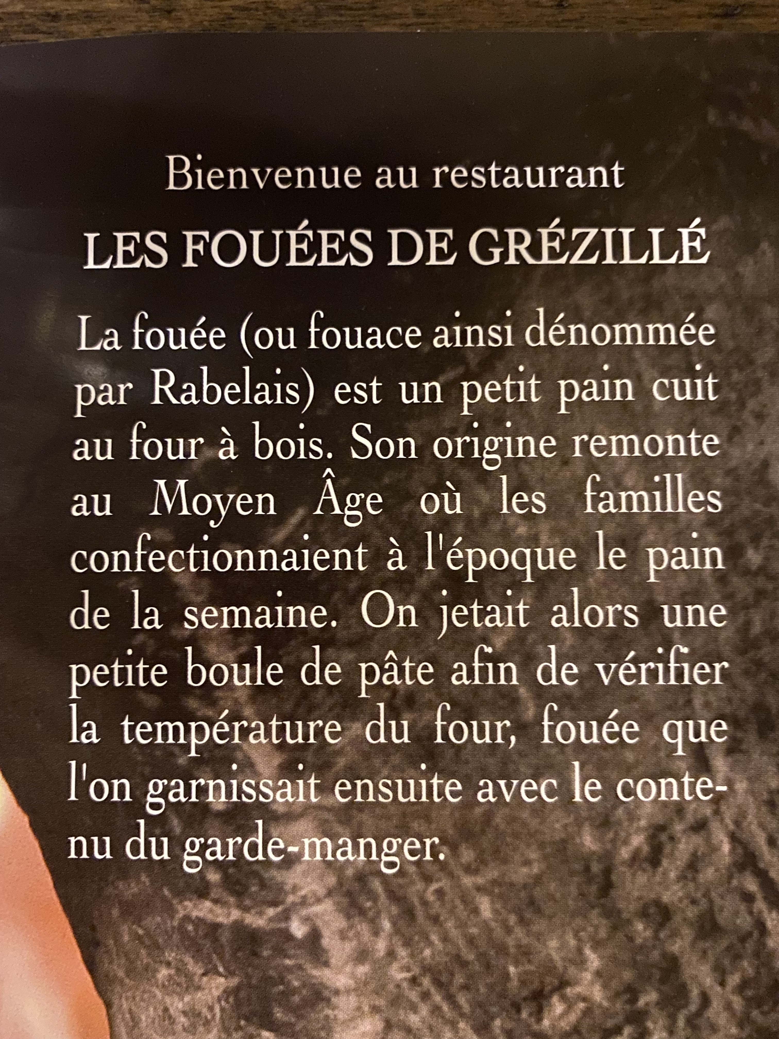 De bonnes fouées, un cadre conforme à un restaurant troglo, une belle sympathique et efficace équipe. Bref un très bon moment dans ce restaurant troglo. Surtout gardez de la place pour la tomme d’Anjou et le cremet, cela fini le repas en beauté (pour les papilles).