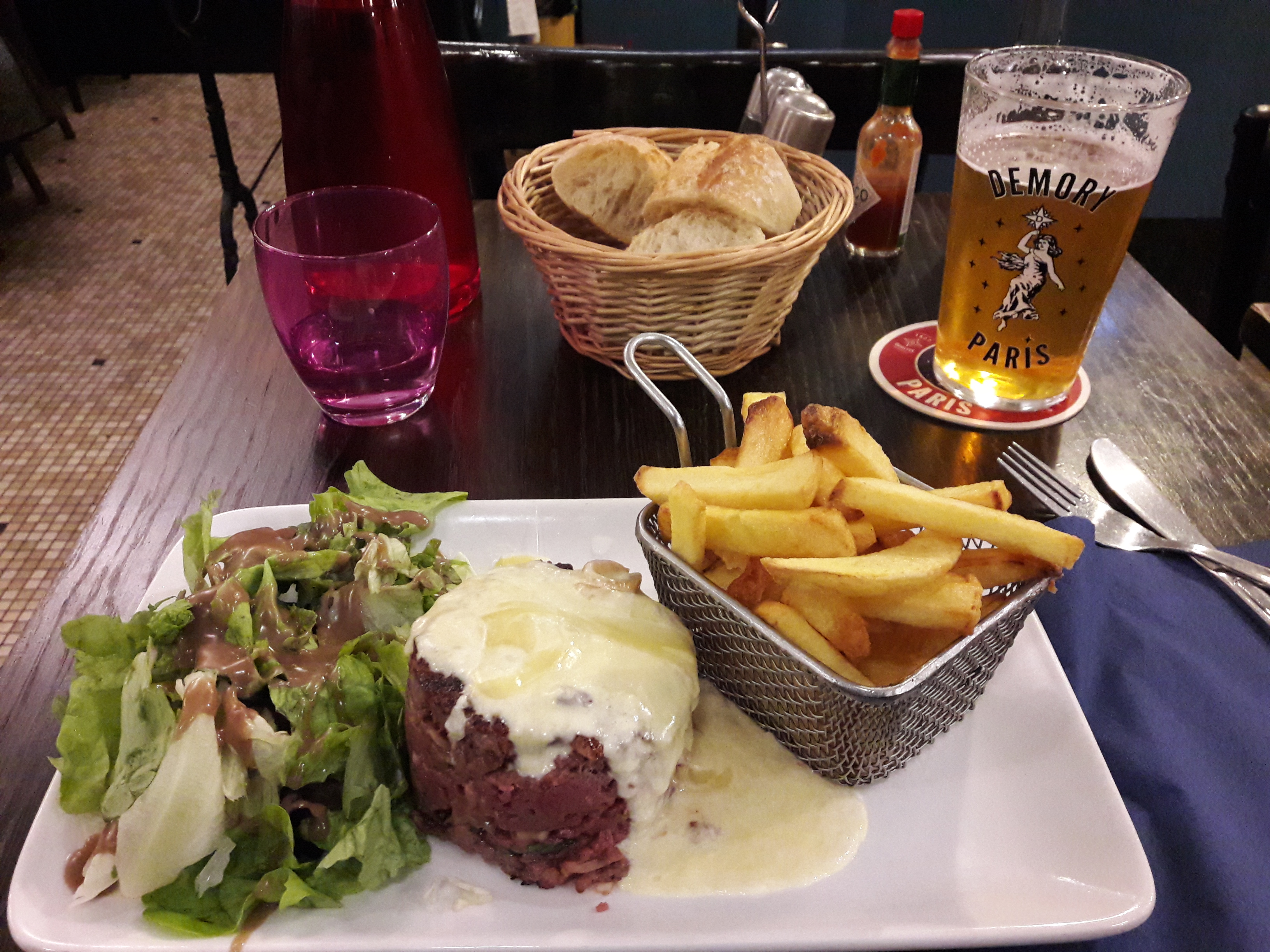 Parfait ! Une table de 10 potes rassasiés dans le calme et la bonne humeur. L'onglet de bœuf, les tartares et les burgers étaient tous excellents, testés ce jour. Le serveur, qui semble tenir la maison, est également très agréable. Chaude recommandation si vous passez dans le 13ème !