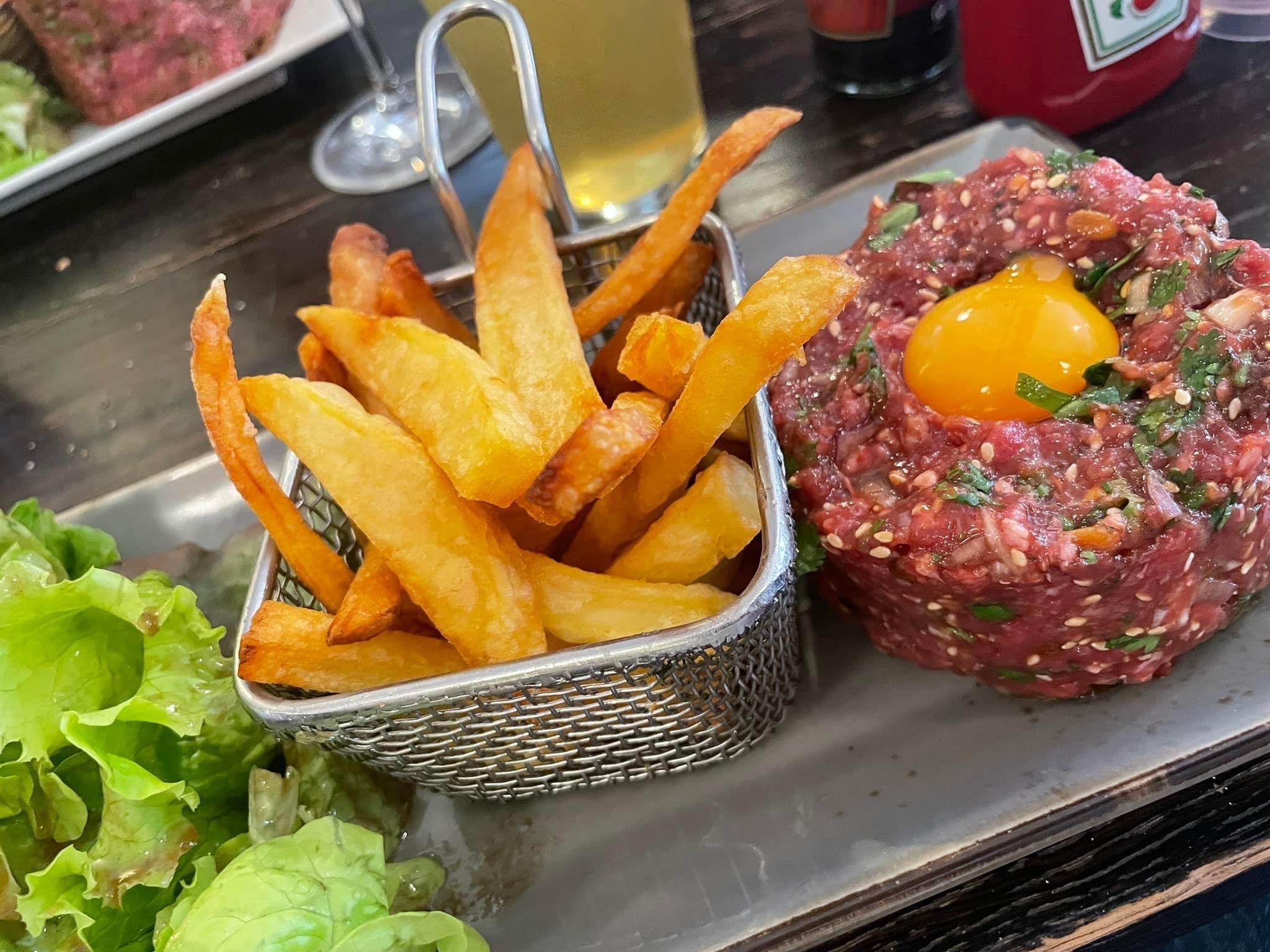Bonjour, j’y ai déjeuner ce midi , Le tartare de boeuf est parfait , les frites sont vraiment ‘maison ‘ Et le cheesecake au beurre salé : un délice . Service sympas . J’y retournerai pour goûter le tartare de saumon .......