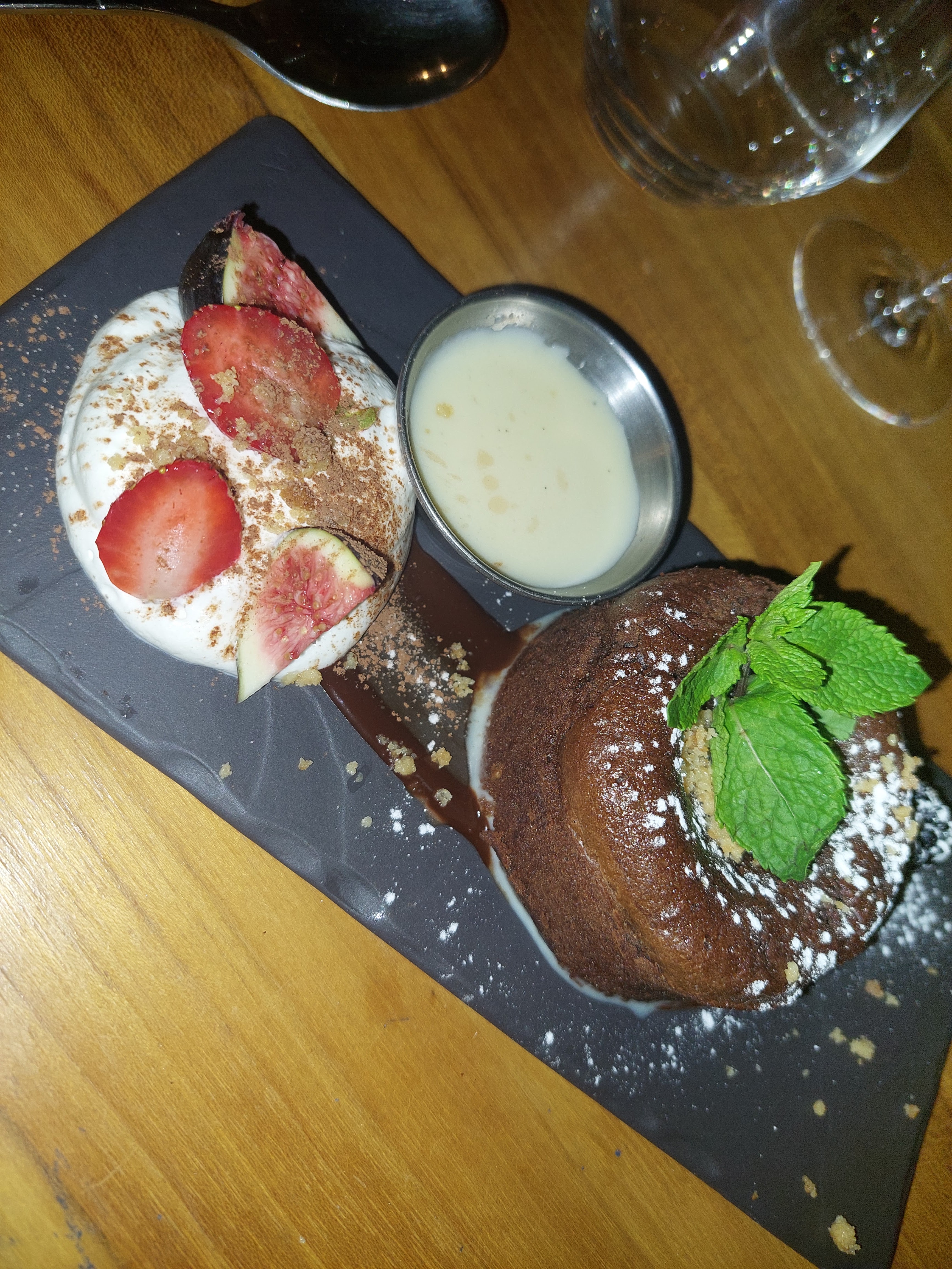 Nous sommes passer hier soir en amoureux. Arriver chaleureuse, cadre et terrasse sublime ❤️ Nous avons d abord manger des œuf parfait tout simplement exceptionnel cuisson parfaite. À suivre pareil pour le filet de bœuf tendre et savoureux et pour finir un cœur collant au chocolat sublime. Merci encore LES Frérots