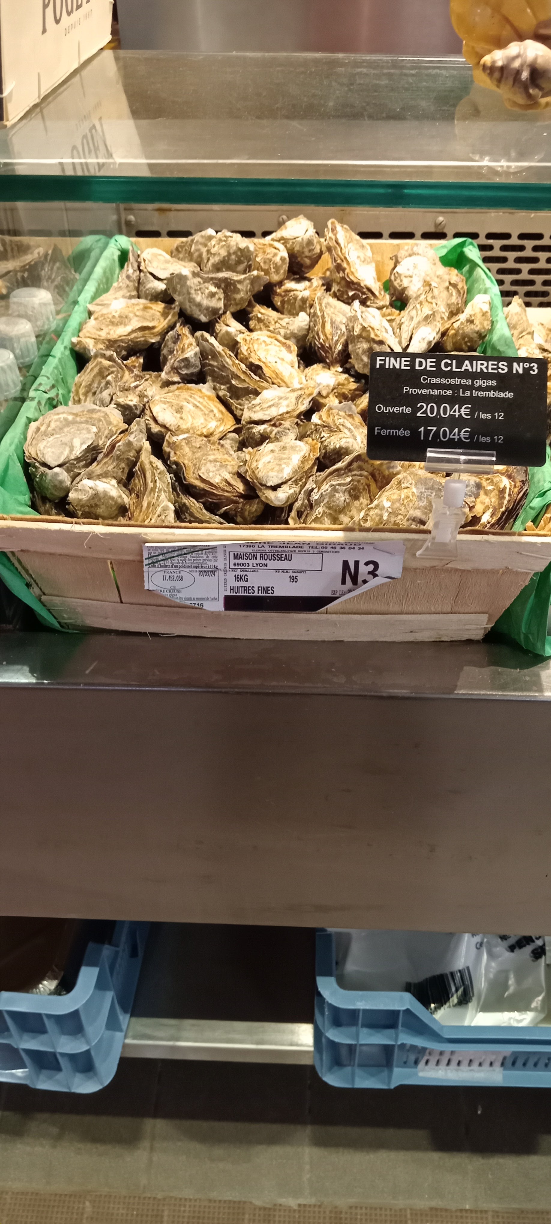 Je viens d’acheter chez ce marchand aux halles Bocuse 2 douzaines d’huîtres : après ouverture, elles sont toutes inertes (sauf 2), et vu l’odeur nauséabonde, tout est parti à la poubelle, soit 78€. Il y avait même des huîtres déjà ouvertes dans le sac. Dommage pour un réveillon… dégoûtant et gênant. Je vais demander un remboursement sur place dans les jours à venir, je vous tiendrai informés de la réaction des commerçants.