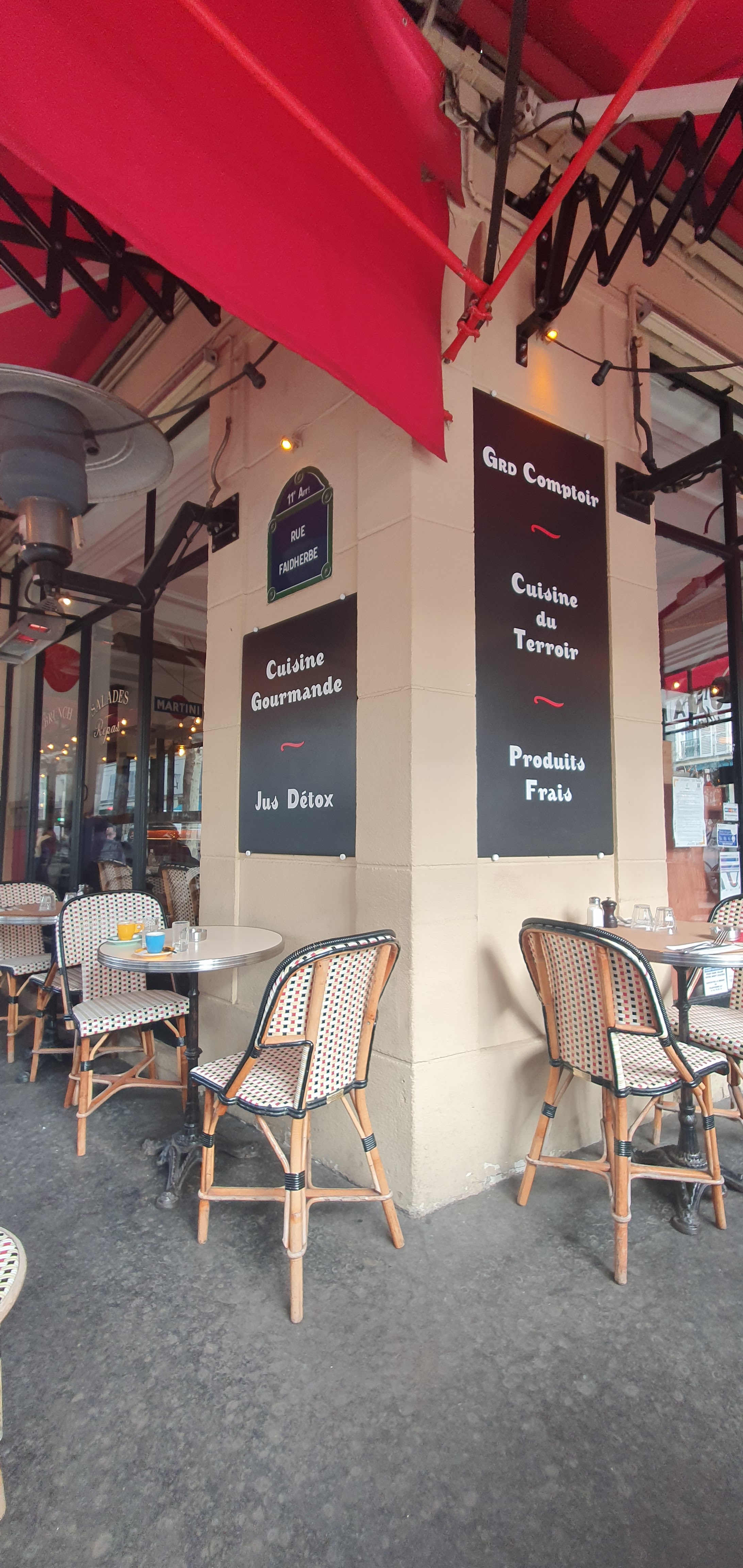 Bon bistrot métro Faidherbe,personnel très sympa , terrasse chauffée, vue agréable.petit menu pour le déjeuner plat du jour café 11€ choucroute de la mer excellante 3 poissons et crevettes