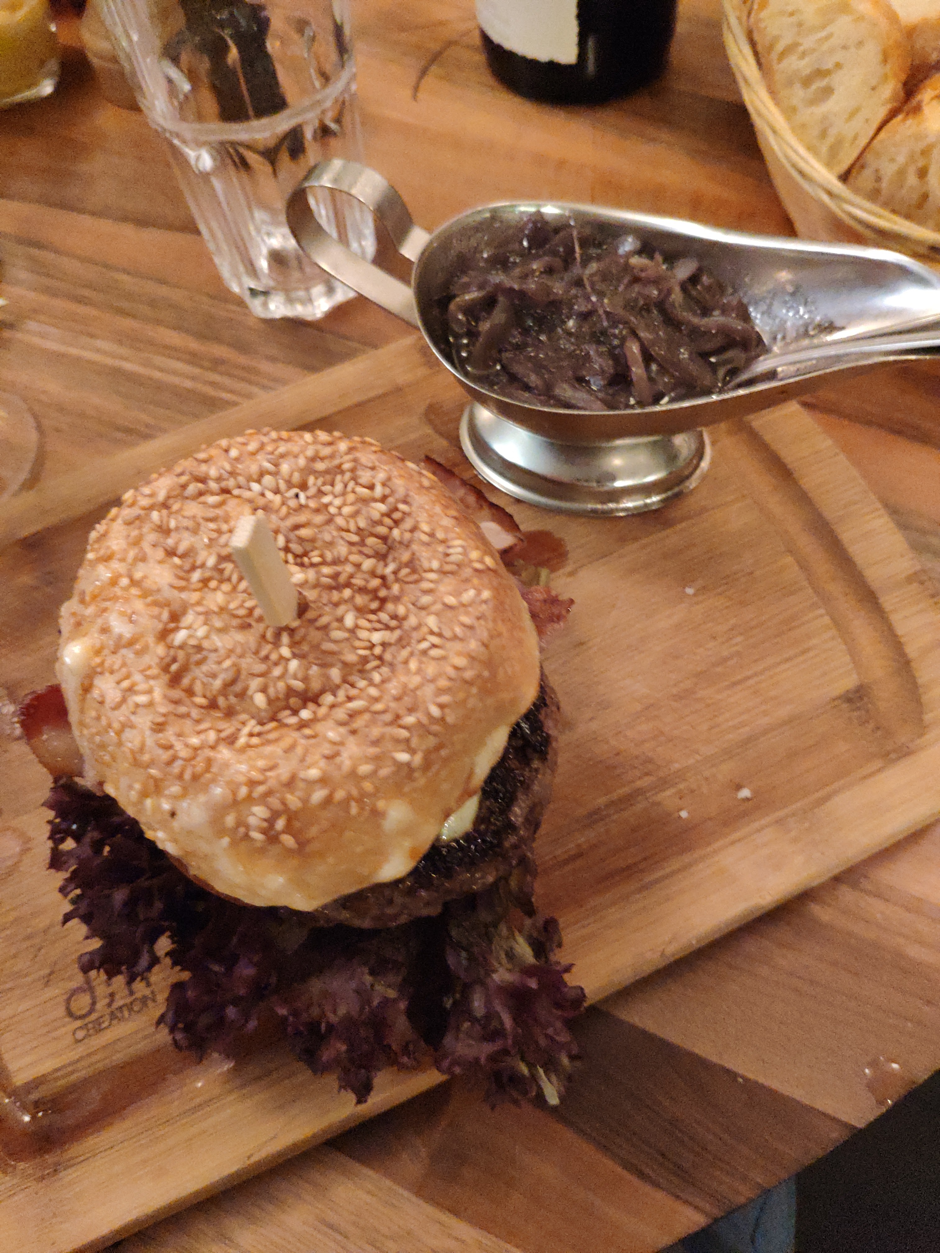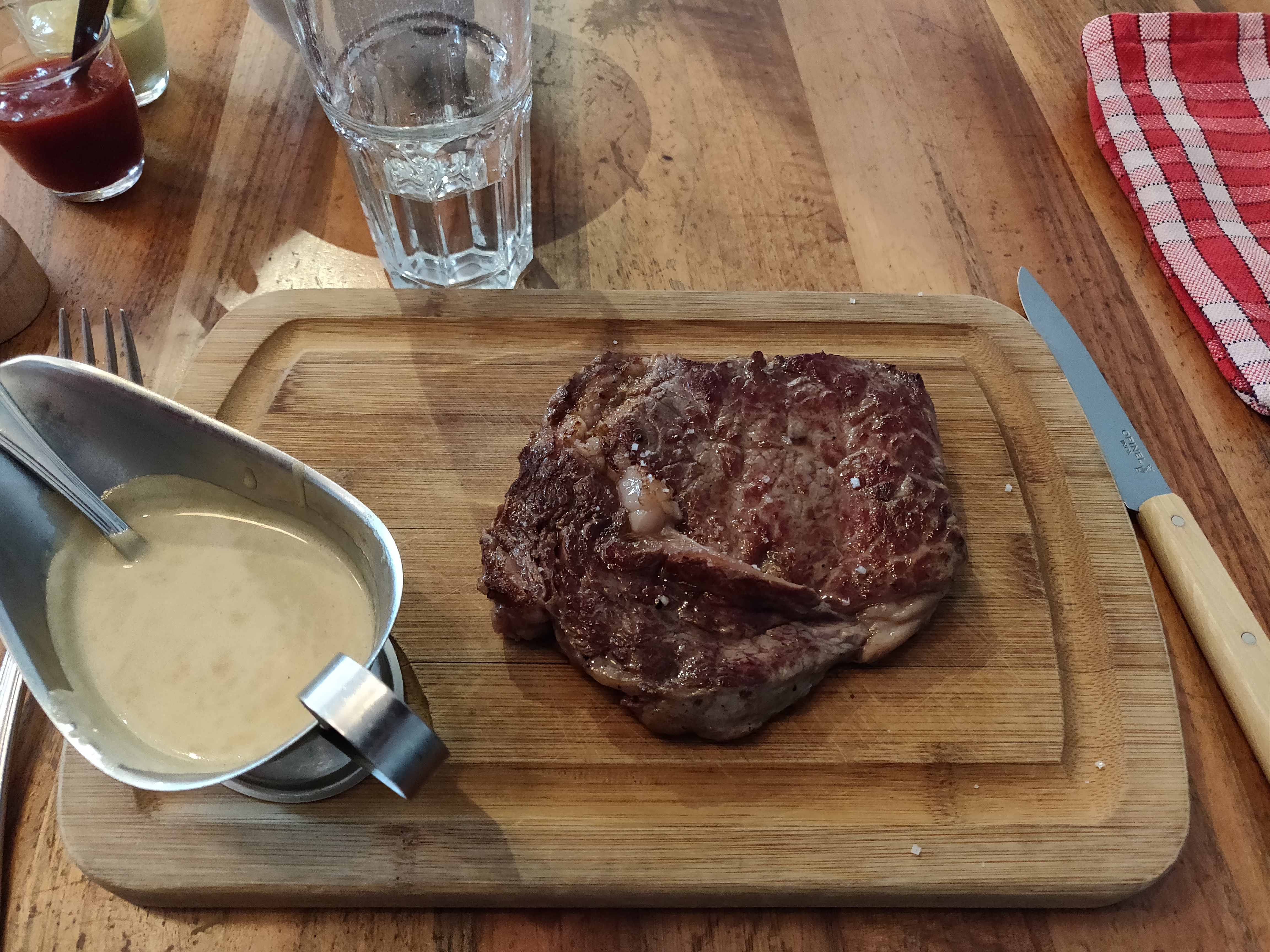 Dîner en famille pour un anniversaire Placement en face des cuisines pas des plus top Plat : 1 kilo de bœuf pour 2 avec sauce maison une tuerie ! L’écrasé de pomme de terre est excellent avec la ciboulette fraîche, les autres accompagnements ok Dessert : dame blanche ok Le service est rapide et bien fait J’y retournerais avec des amis pour faire découvrir le lieu et essayer d’autres plats !