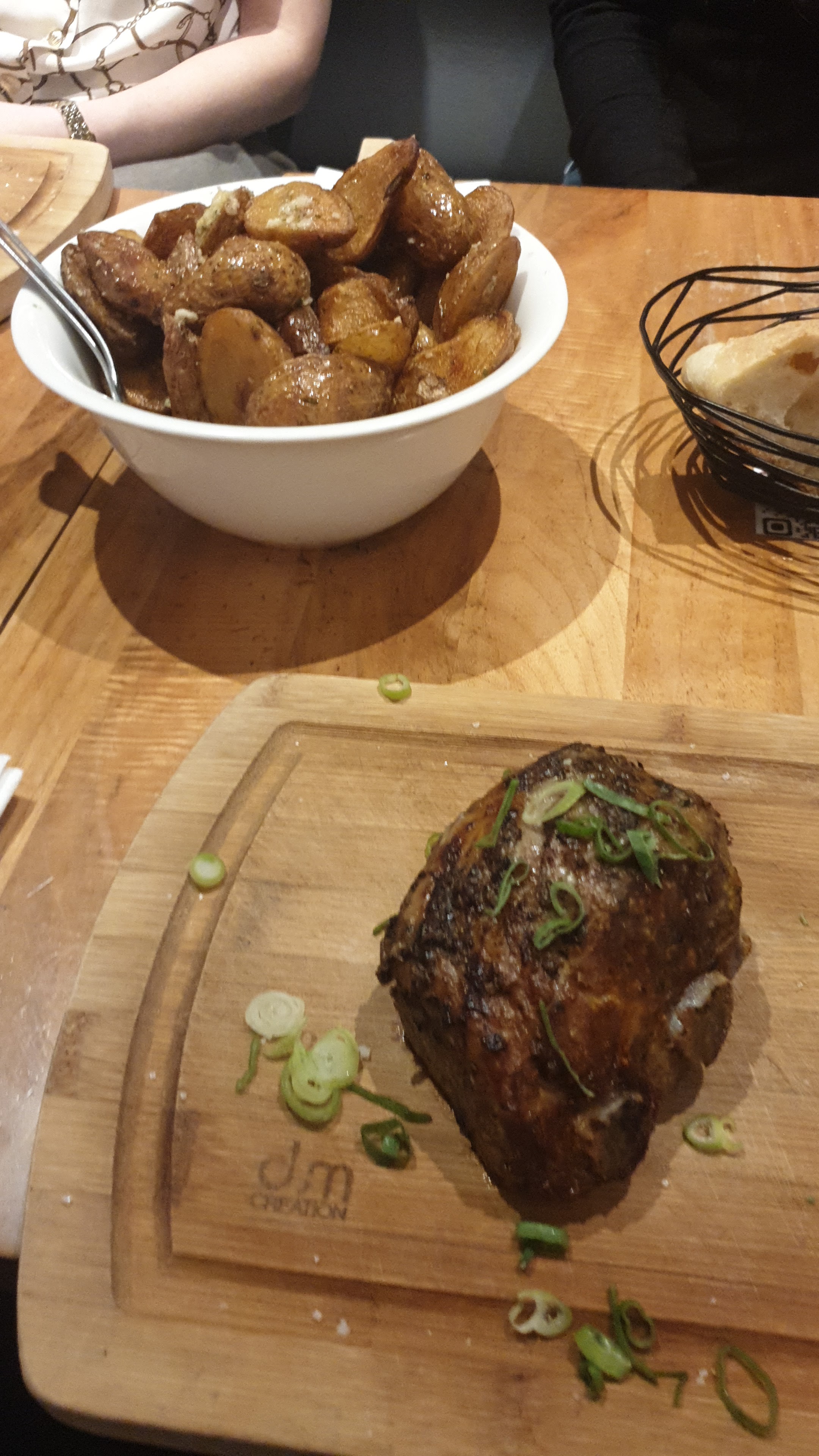 Spritz en apero très bon, Plat morceau de cochon bien tendre et p de terre grenailles à l ail (la faut vraiment aimer l ail)