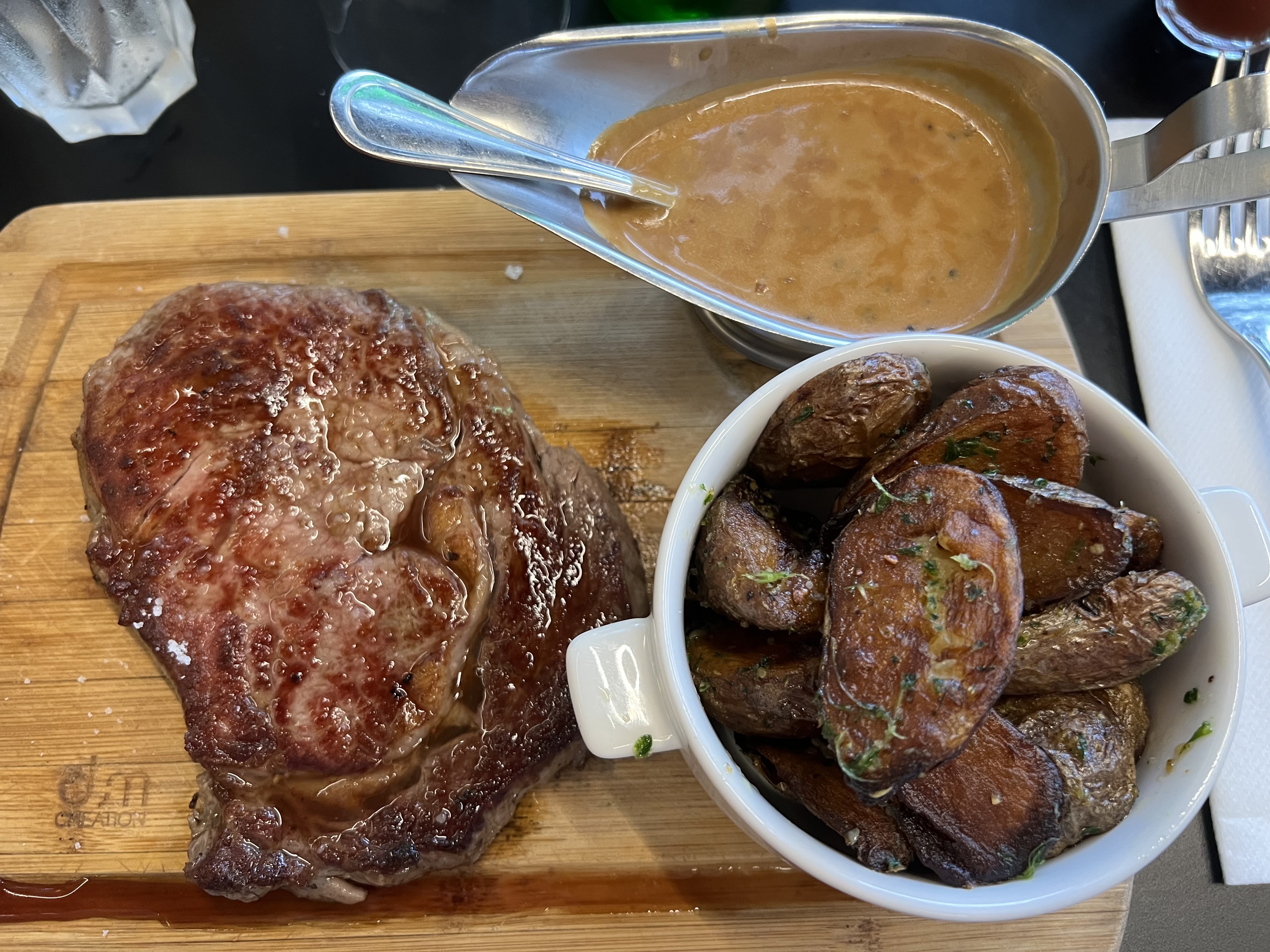 Absolument rien à dire Toujours top. Et le concept des garnitures à volonté c'est quand même top. Encore plus quand tout est fait maison. Le pain, les sauces, les salades et tous les plats que j'ai pu goûter tartare, 🍔, côté de bœuf, entrecôte, poisson... tout est excellent. Le seul petit soucis à la rigueur serai les frites trop cuites