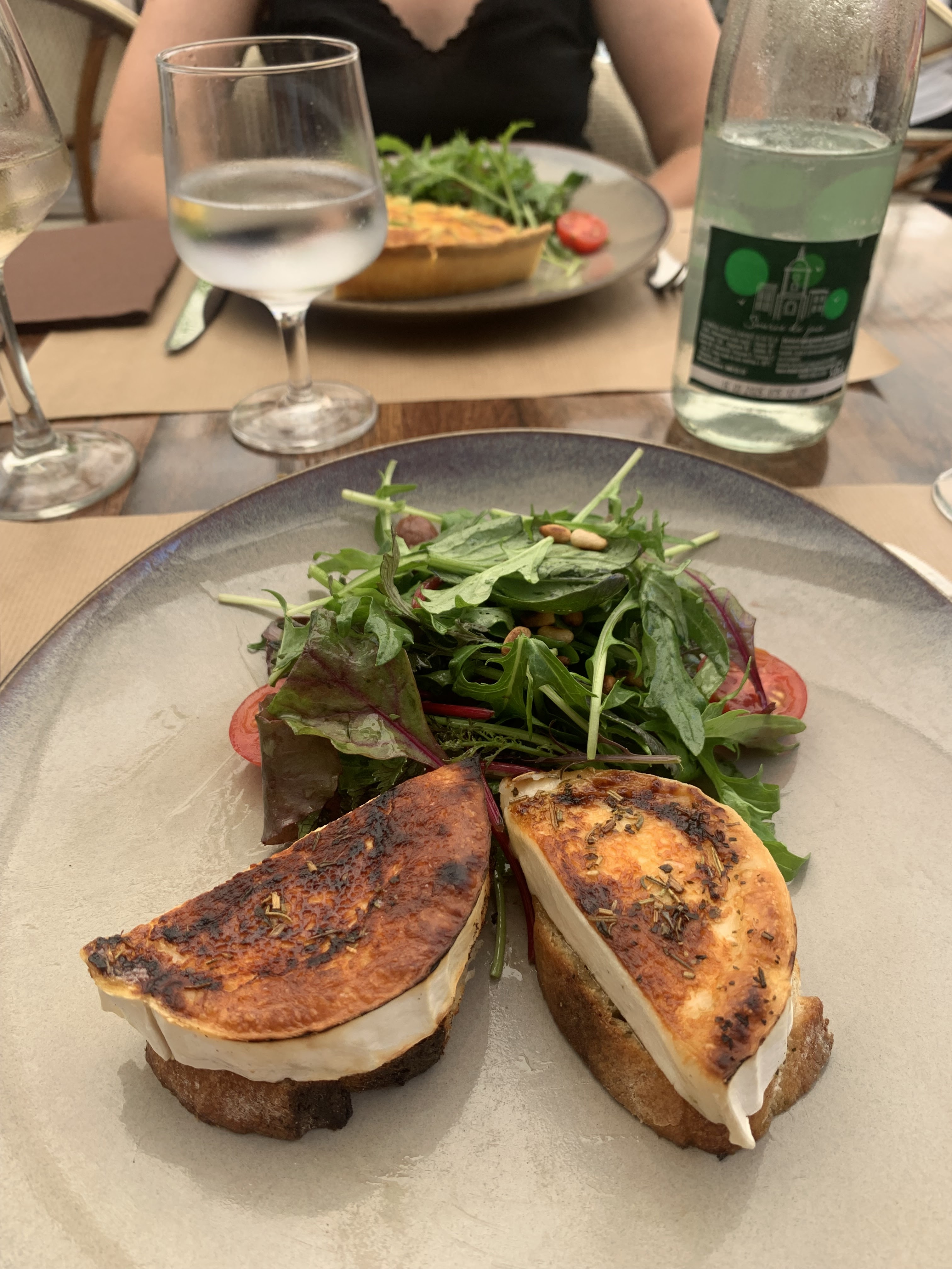 Très difficile d'évaluer cet endroit. C'est un restaurant touristique, alors ne vous attendez pas à rester assis pendant des heures autour d'un long déjeuner français. Ils veulent « retourner » votre table au prochain client dès qu'ils le peuvent. La nourriture était correcte. mais pas génial. ma viande était un tiers de grasse et grisonnante et cela devait être évident donc le chef s'en fichait évidemment. Le poisson de ma femme était excellent. Les portions étaient un peu petites. Ils savent qu’il est peu probable que vous reveniez. Le vin était ok. mais cher. Le cadre était fabuleux.