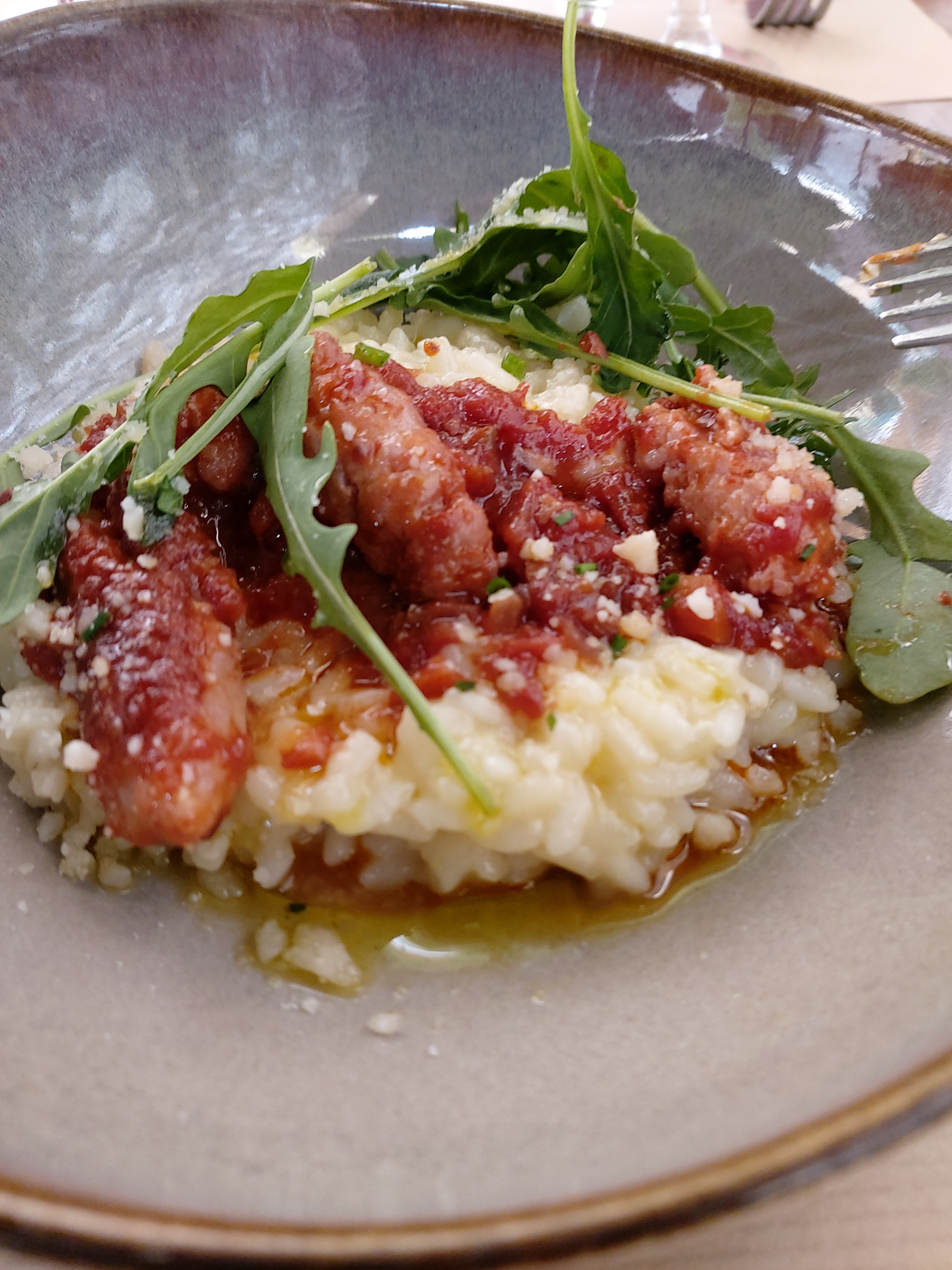 Nous avons déjeuné ici. Notez que le menu du soir est différent de celui du déjeuner - à l'heure du déjeuner, vous avez une petite section à choisir - j'aurais aimé pouvoir avoir le menu du soir… de toute façon, nous avons pris l'offre du déjeuner avec entrée, plat principal et dessert - le prix était correct je pense 20-25 par déjeuner, mais ensuite ils ont facturé 1 litre de badiot 9 euros…