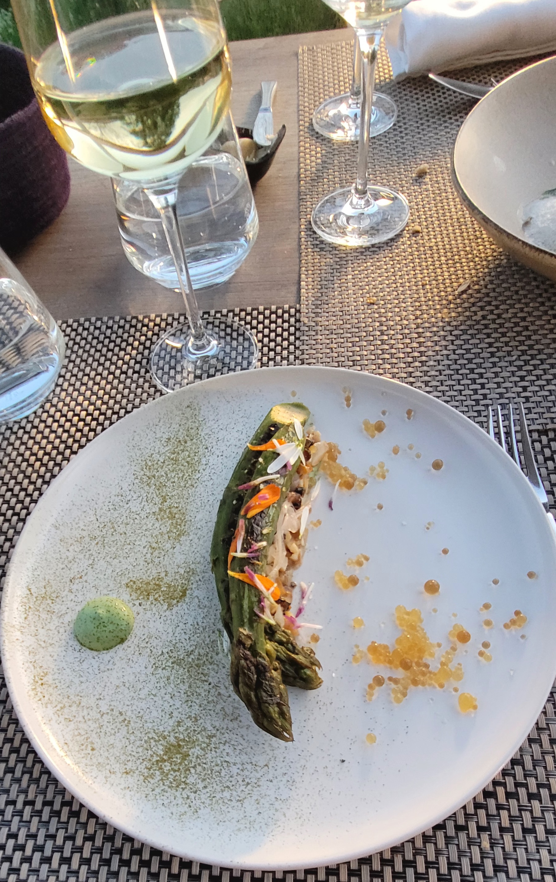 Un dîner dégustation avec les vins. Du personnel très agréable. Un bel échange autour du jardin car les légumes proposés sont cultivés par le chef. Une très bonne soirée.