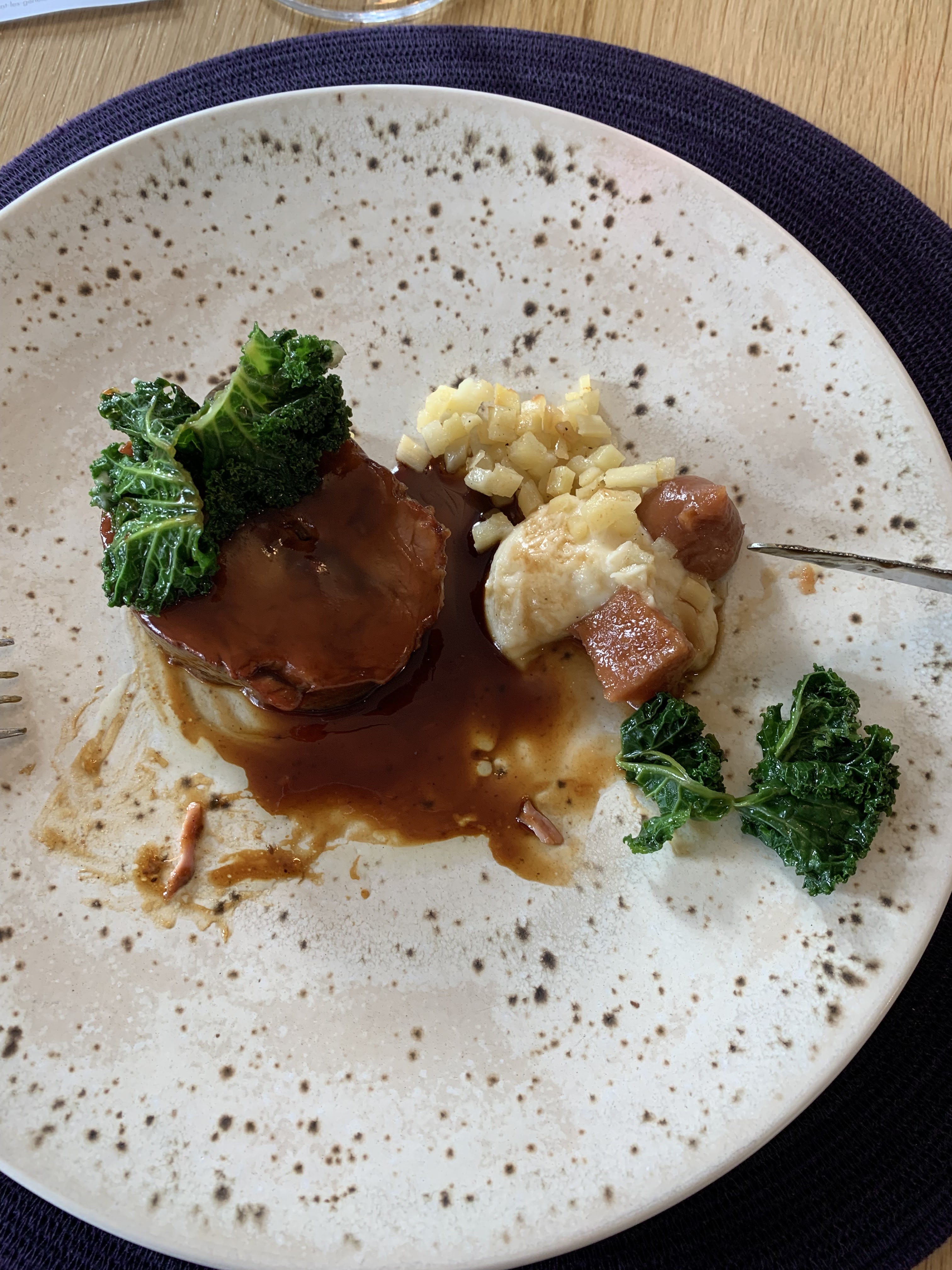 Nous avons pris le menu entrée, poisson, viande et dessert avec l’accord vin. Repas grandiose, tout en finesse, une cuisson du poisson à tomber. Faites le détour, vous ne le regretterez pas.