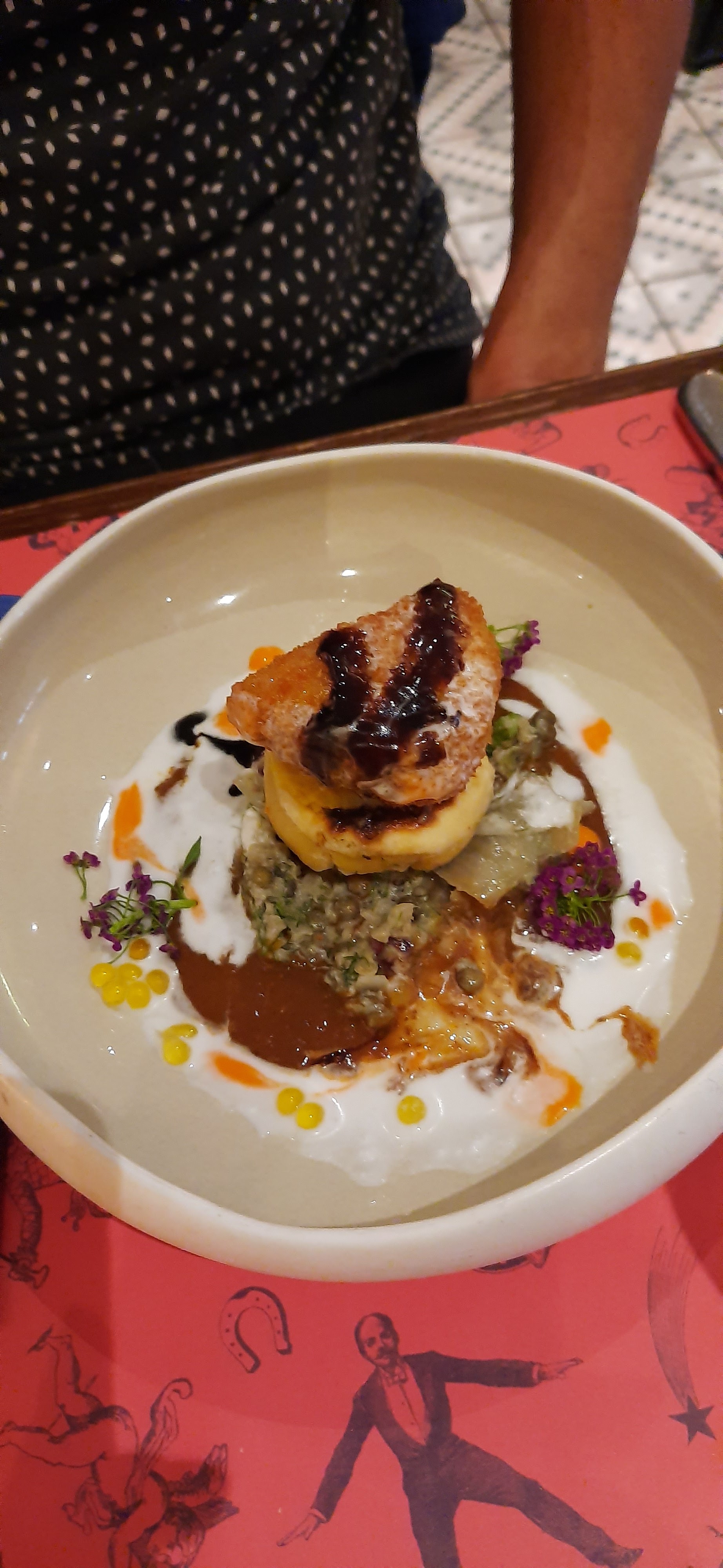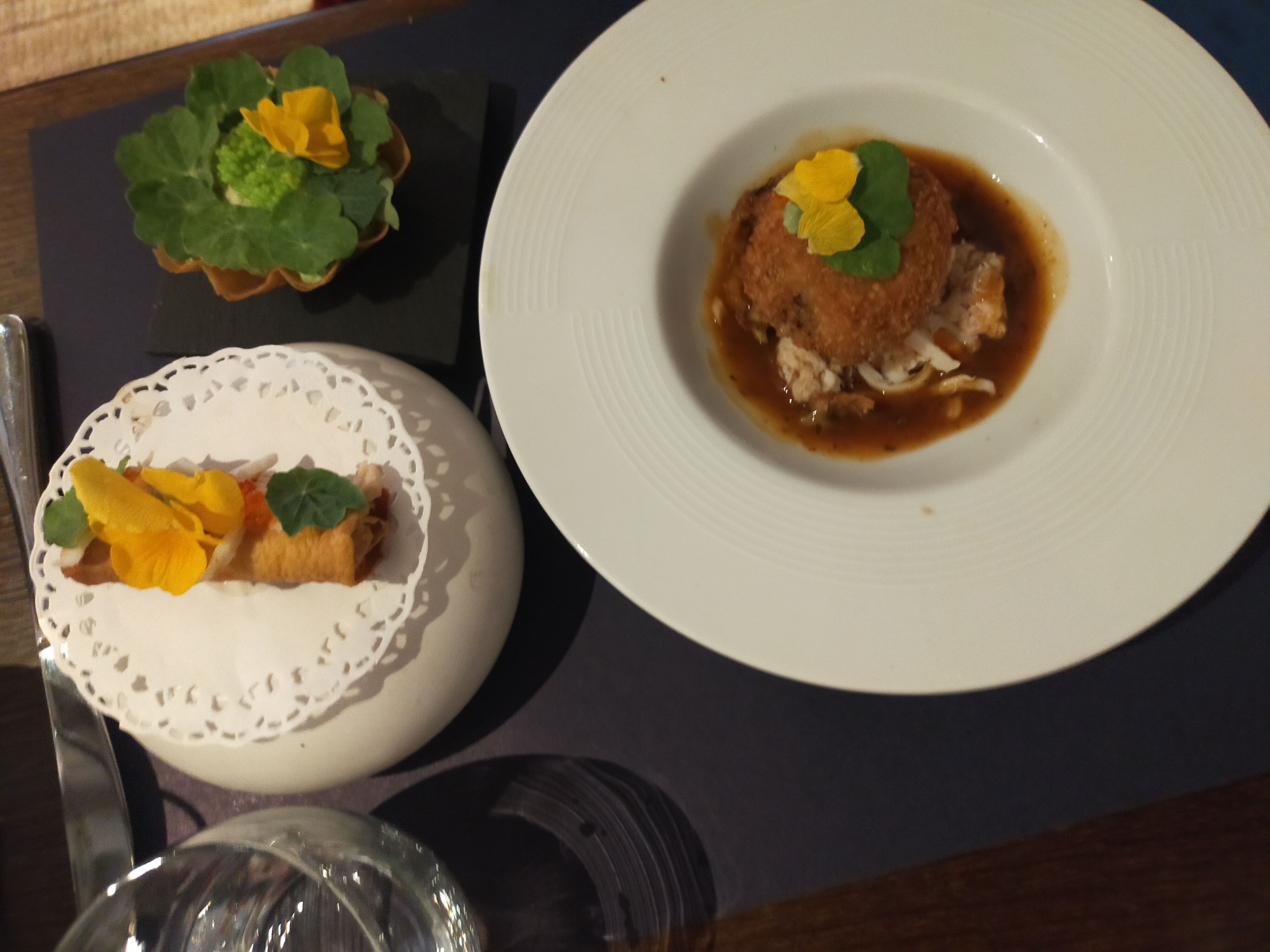 Cuisine inventive très originale magnifiquement présentée servie par des serveurs aux petits soins !C'est une très belle découverte bravo !