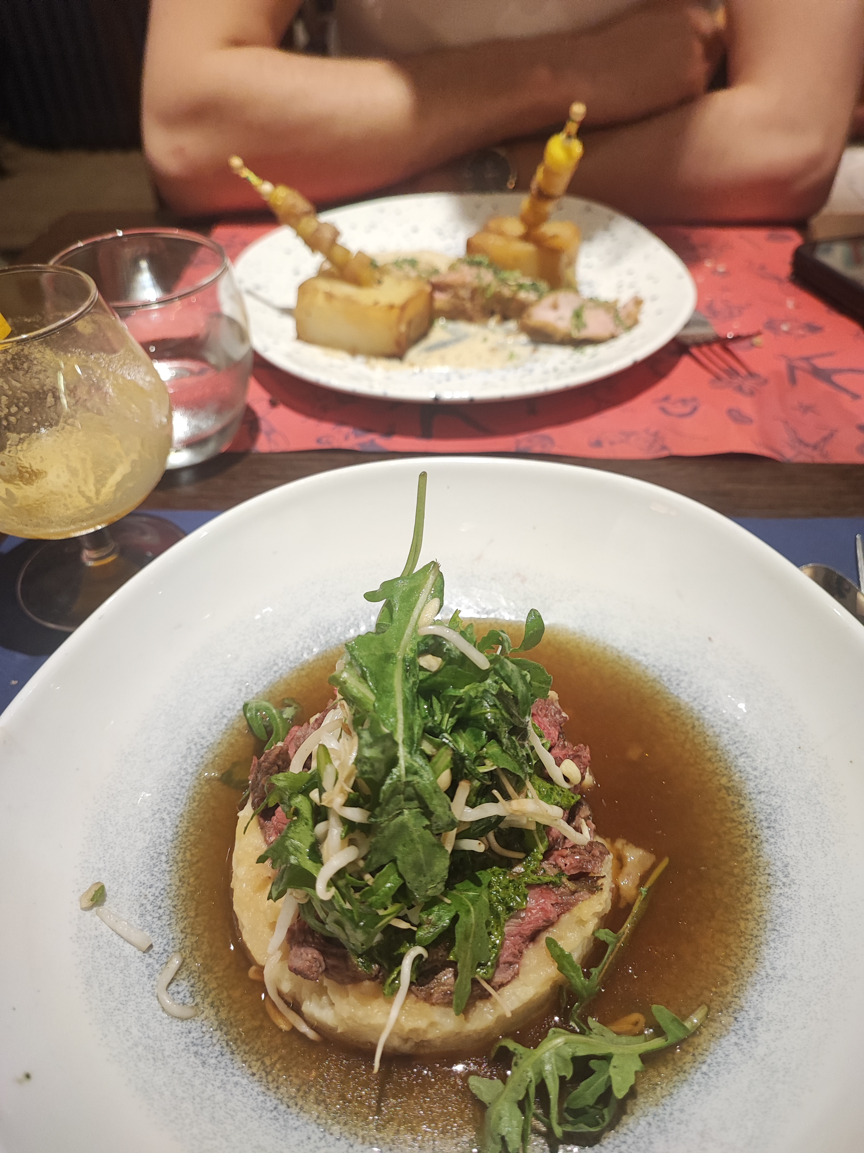 Bon moment passé entre amies, le cadre très sympa et le personnel souriant. Cependant nous avons été déçues par les plats :( Des saveurs soi peu marquées(pour les gnocchis) Manquant de finesse (foie gras) Le plat principal était très tiède, limite froid bien que l’assiette bouillante, les légumes trop cuits, amers et la viande (agneau) pas assez cuite et dure à couper ..je m’attendais à autre chose car on m’avait recommandé votre enseigne. Nous sommes peut être tombées sur un mauvais jour :/