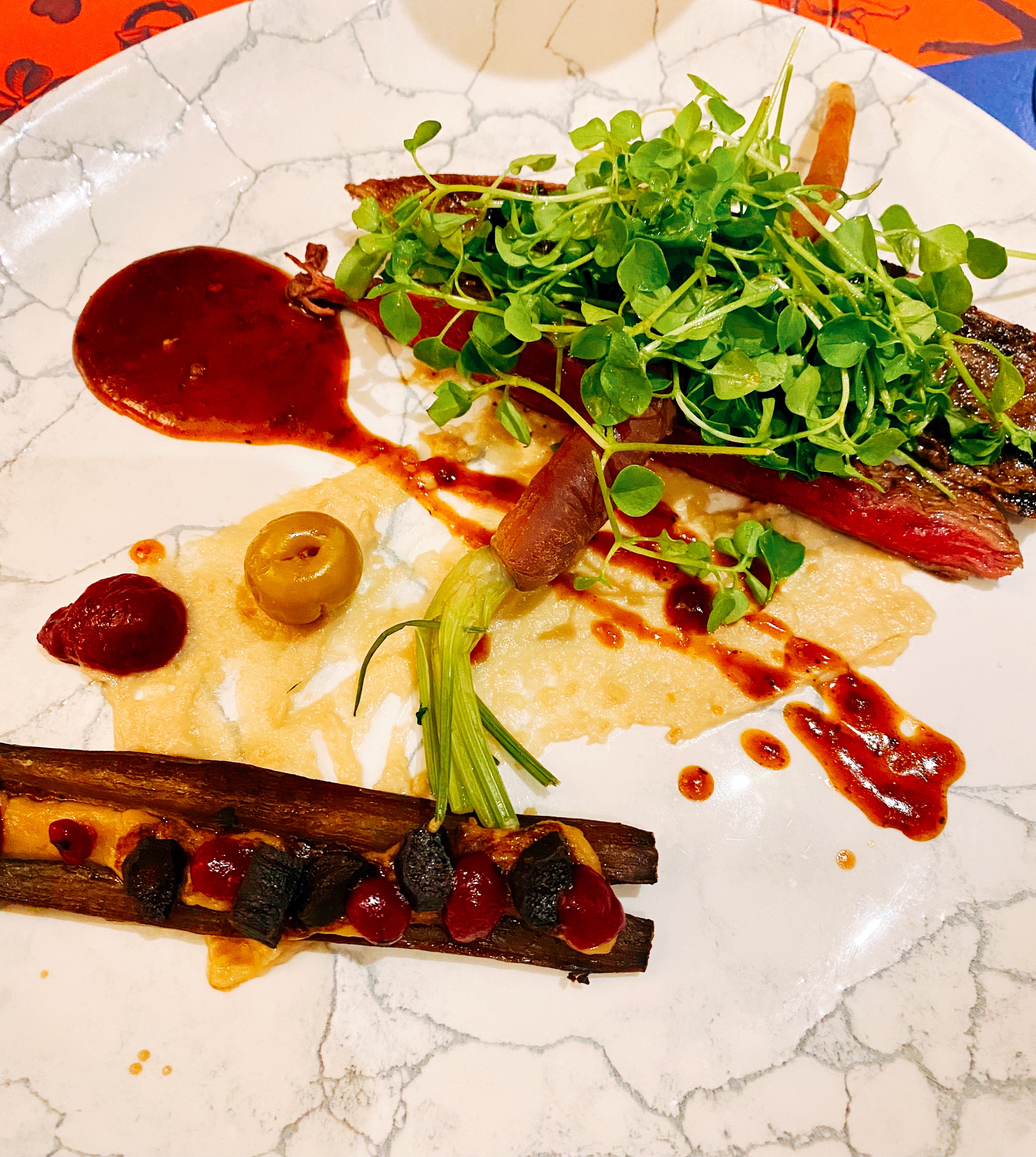 Quelle expérience gustative ! Je me suis fait très agréablement surprendre par une déclinaison de carottes chaude et froide, sucrée salée, colorée et inventive. Puis l'agneau et ses légumes cuits à la perfection.... hmmmmm, j'en ai encore l'eau à la bouche ! C'était notre première visite des lieux, pour sûr ce ne sera pas la dernière. P.S.: même le plat végétarien demandé par mon compagnon à la dernière minute était varié et inventif. Bravo !