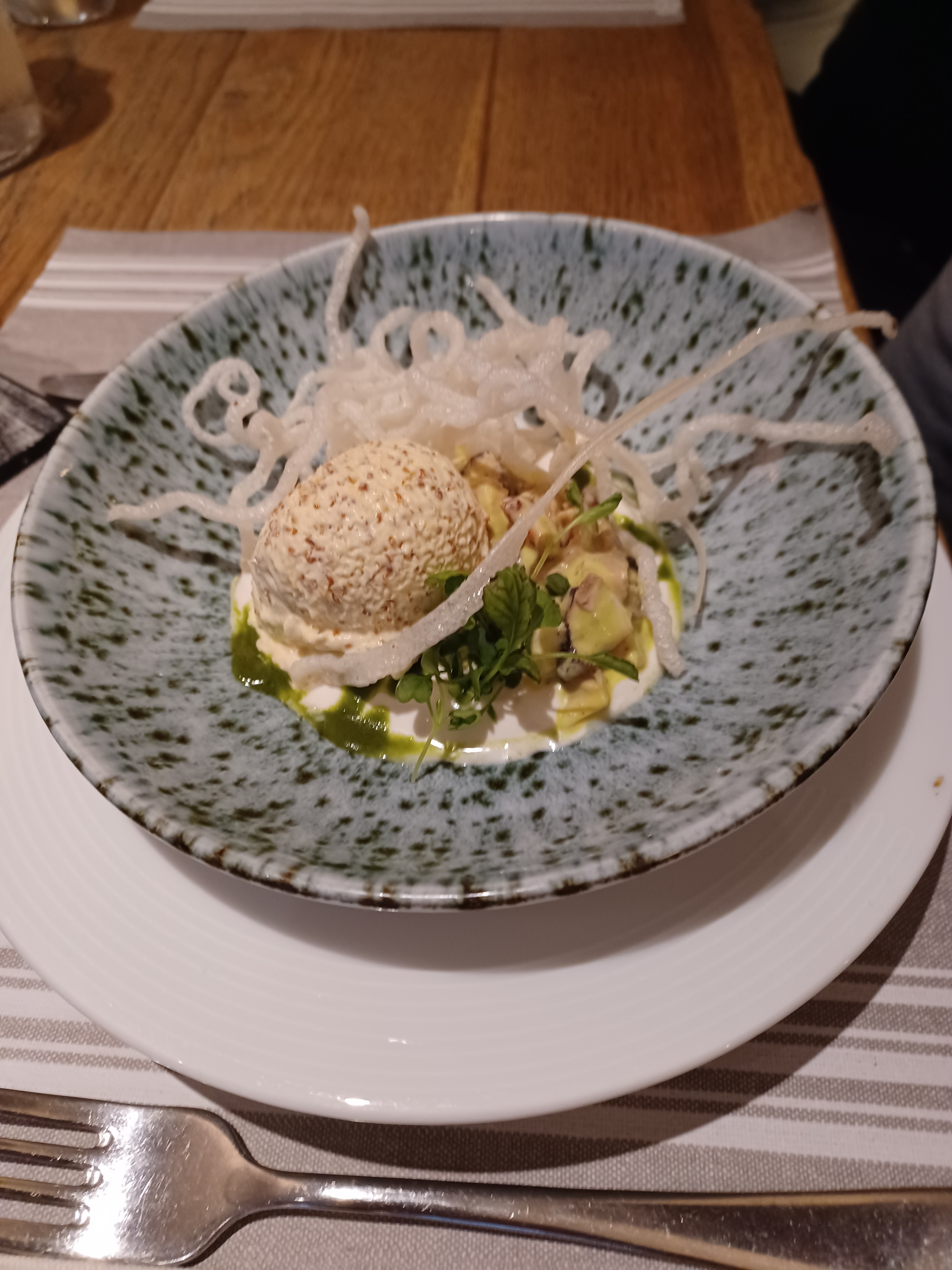 L'équipe du resto est vraiment sympa. On était accueilli avec un sourire. Les plats attirent l'attention par ses couleurs et sa décoration bien élaborée. On était agréablement surpris par l'originalité du goût. Quel harmonie des accords ! Sans doute c'est un souvenir impérissable. Merci beaucoup et à bientôt !