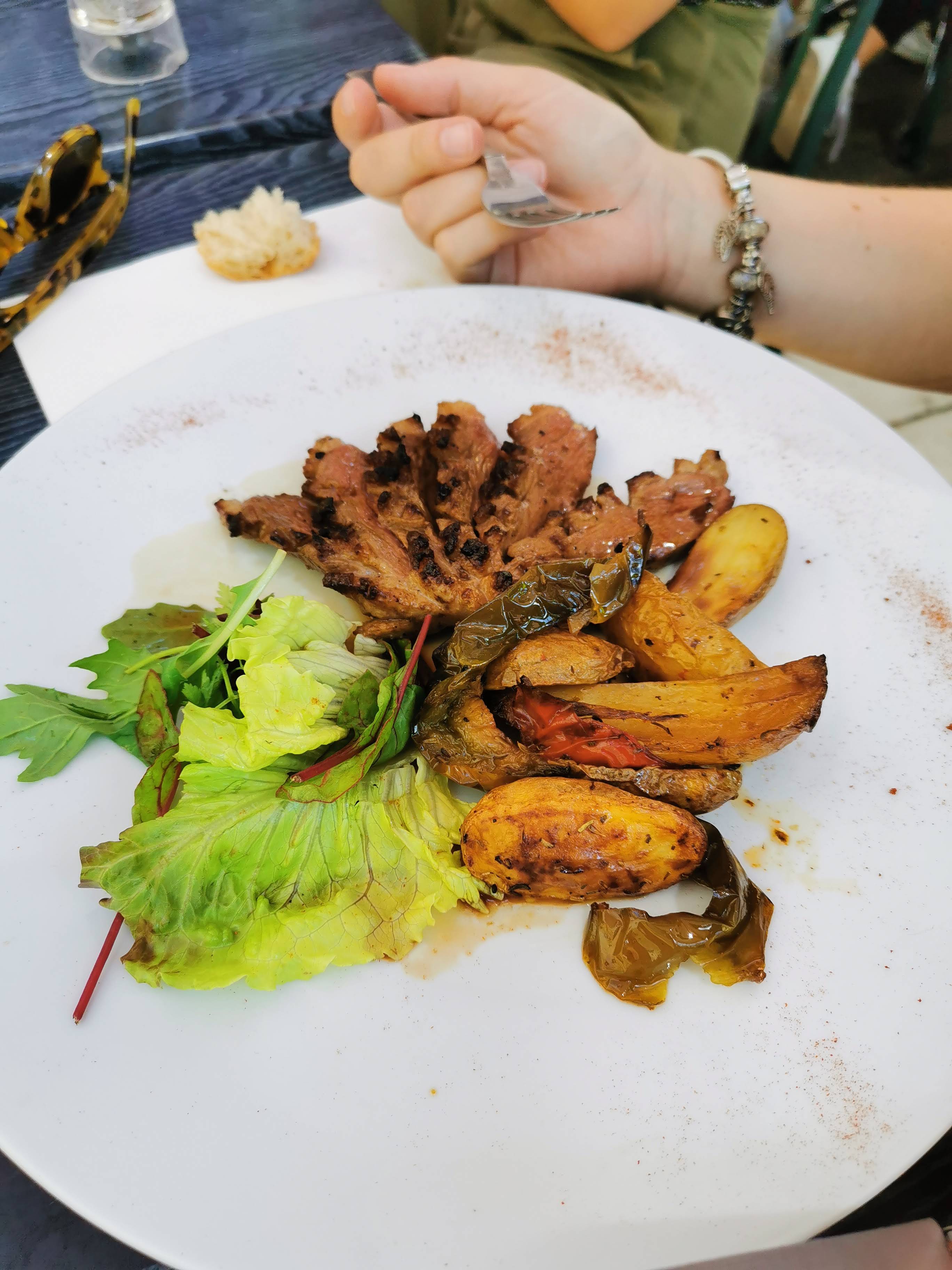 Nous avions le menu fixe à 20 € le midi. Il y a très peu d'endroits bon marché/abordables dans la vieille ville sur la colline. La nourriture était vraiment excellente, le service très sympathique et rapide (nous étions pressés et ils nous ont accueillis à merveille) et le jardin/terrasse était magnifique. Hautement recommandé.