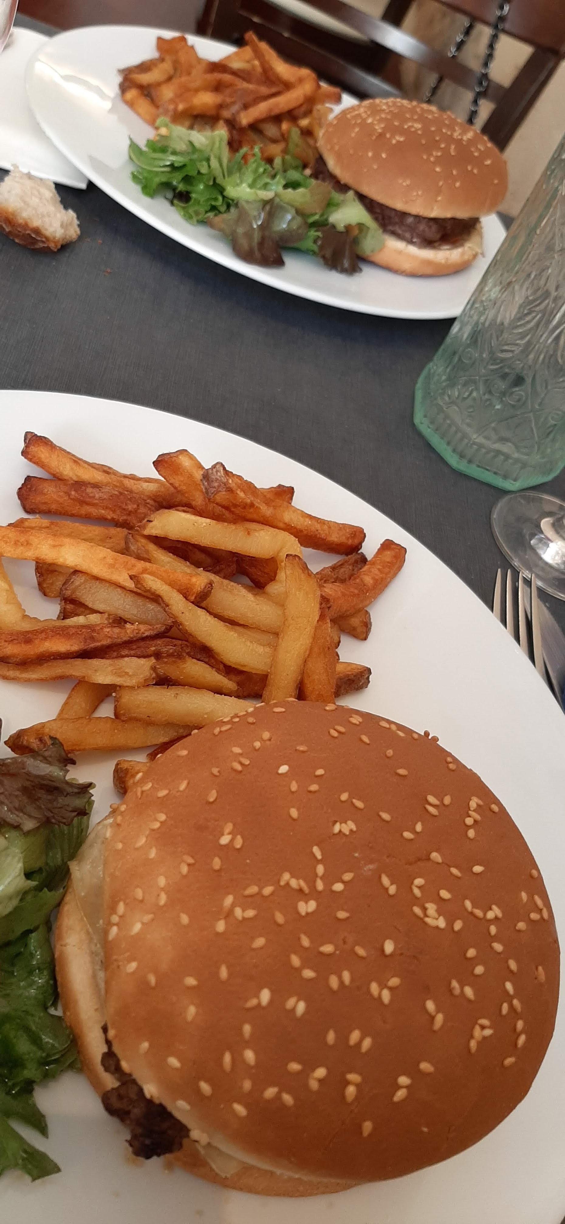 Le hamburger (2 tranches de pain desséchées avec 1 rondelle de tomate rien d'autre) moyen. Vu le manque de goût on ne peut pas dire que c'est mauvais. Quelques frites et feuilles se battent en duel dans l'assiette. La mayo aurait pu être bonne si elle avait été apportée comme demandée 2 fois. La meilleure partie du repas est la fin quand on sort du restaurant. Malgré tout, l'équipe est super sympa.