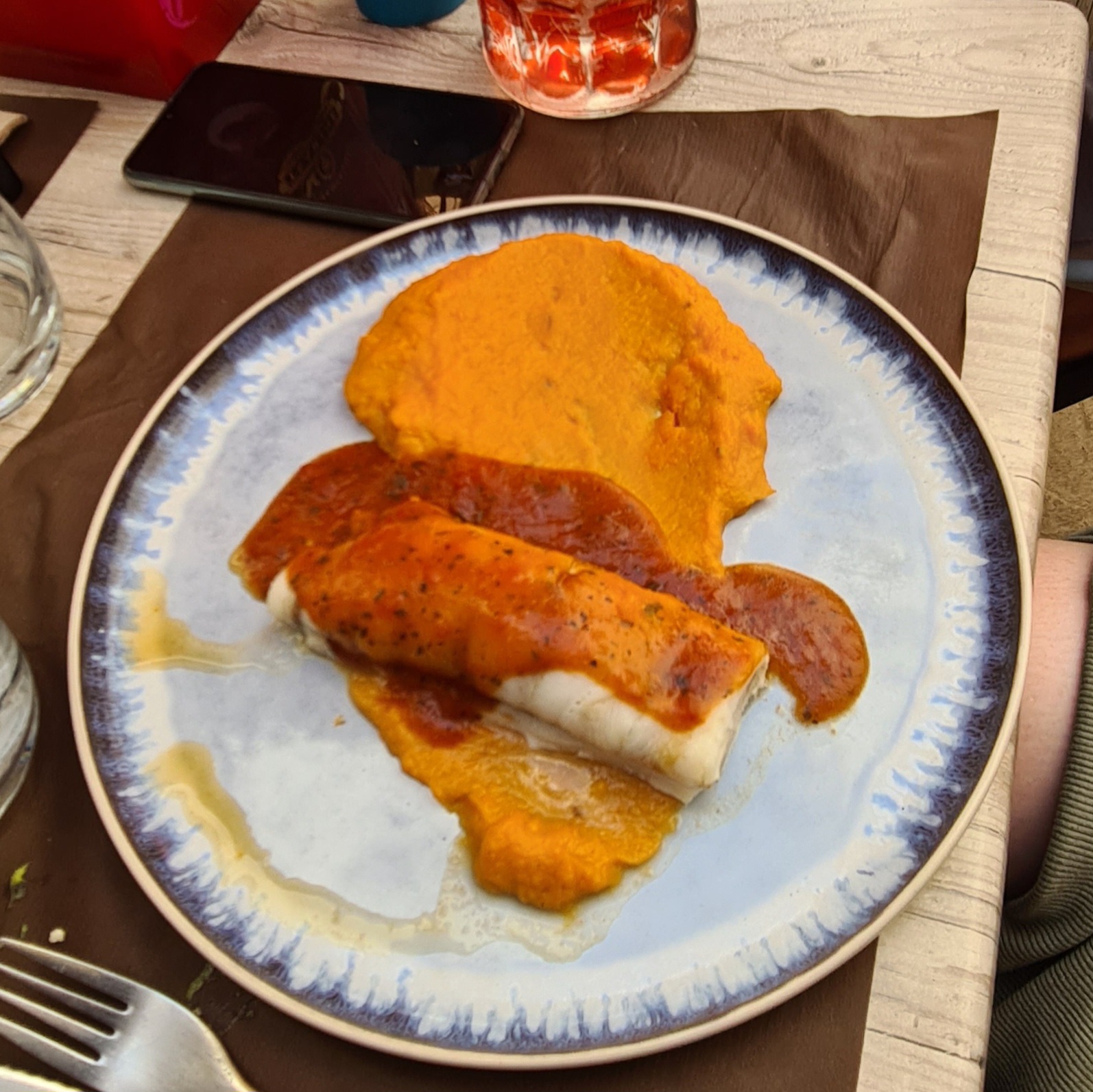 Un bon repas avec un accueil très agréable. Les plats sont très copieux. La viande est un vrai délice. Pour ce qui est du poisson très très bien cuit. Il est très moelleux est très goûteux. Pour ce qui est du dessert. J en ai manger deux et je me suis régaler. Je recommande ce restaurant Vous ne serez pas déçu.