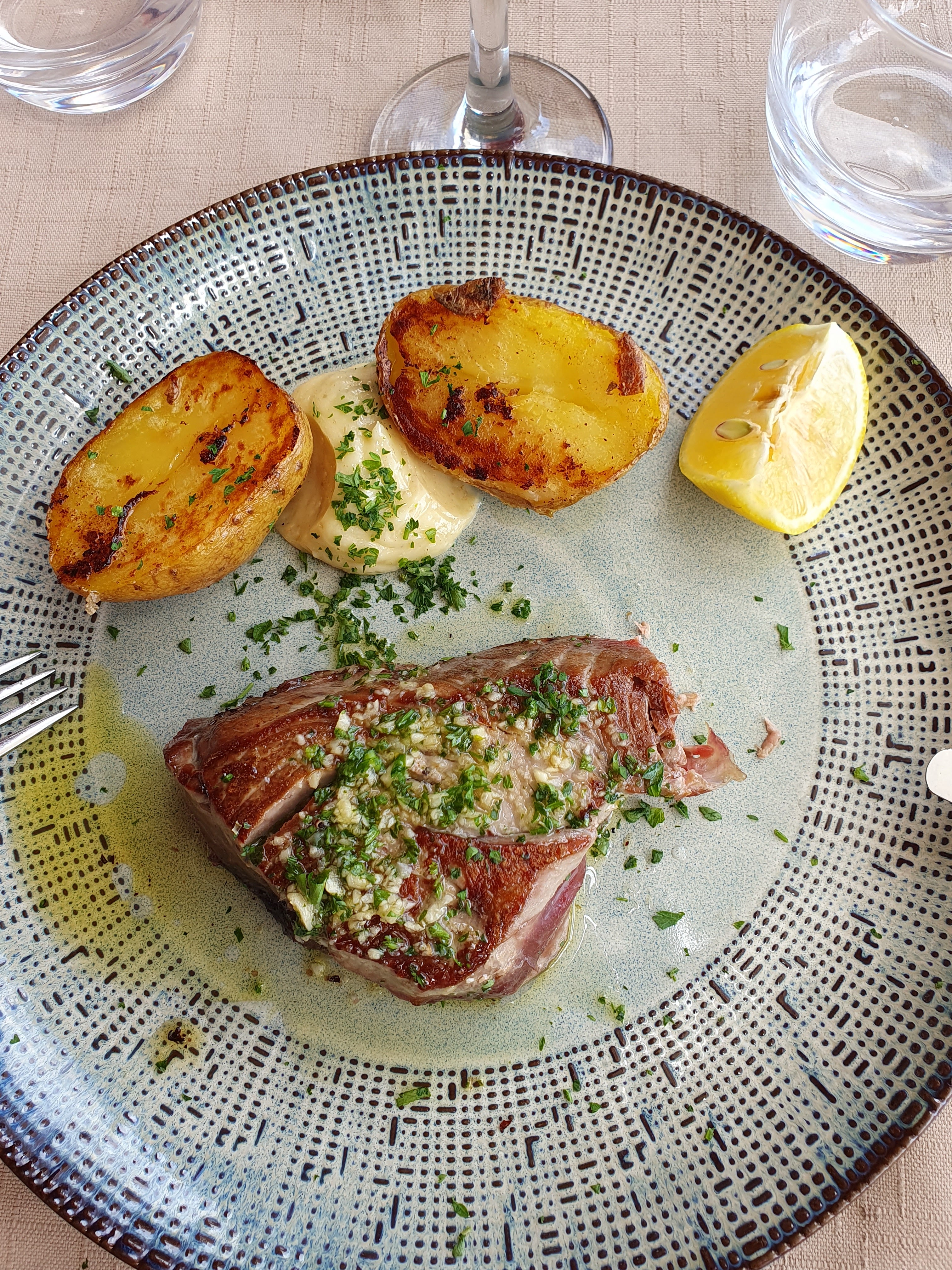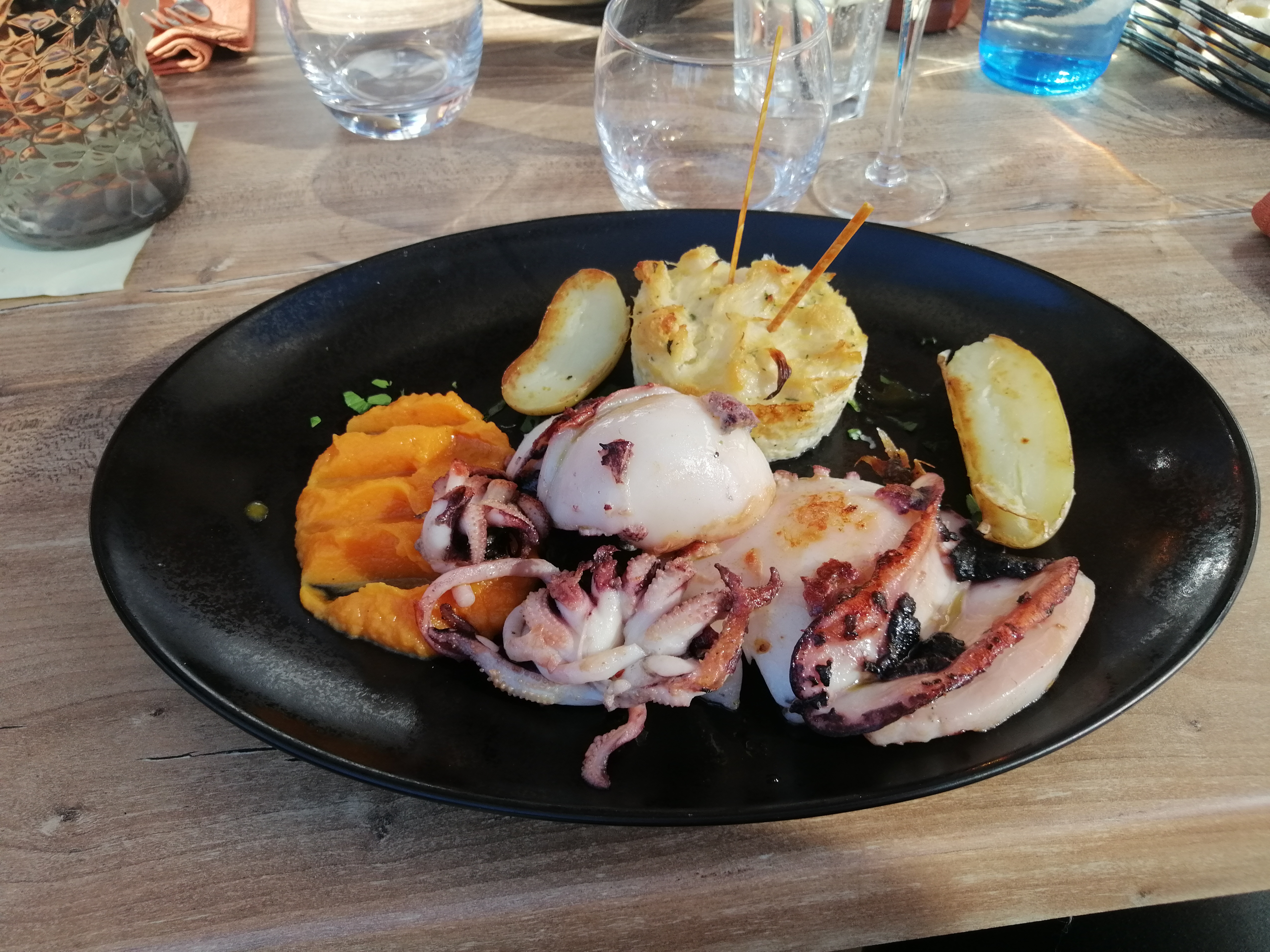 Accueil avec le sourire , Poisson frais ,au niveau bien un Gascogne nous fut recommandé délicieux , En plat la rouille de seiche est très bonne mon conjoint du thon mi cuit . La quantité est juste pour un bon mangeur ,pour moi ce fut parfait