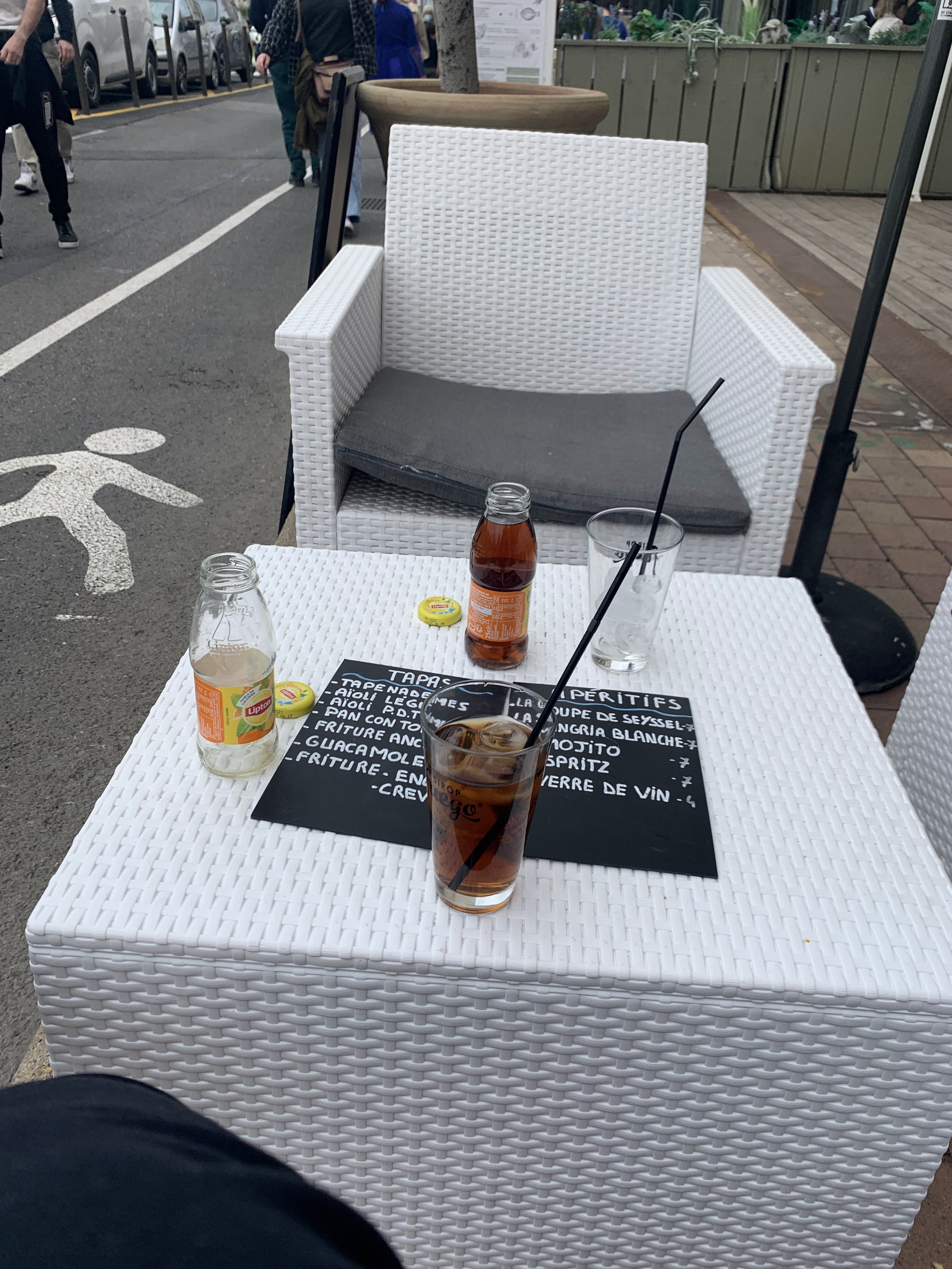 La gérante très sympathique ! Elle est venue discuter plusieurs fois avec nous. On se sent un peu comme... Chez des amis ! Nous avons bu une bonne bouteille de Picpoul de Pinet avec quelques fritures de poisson.