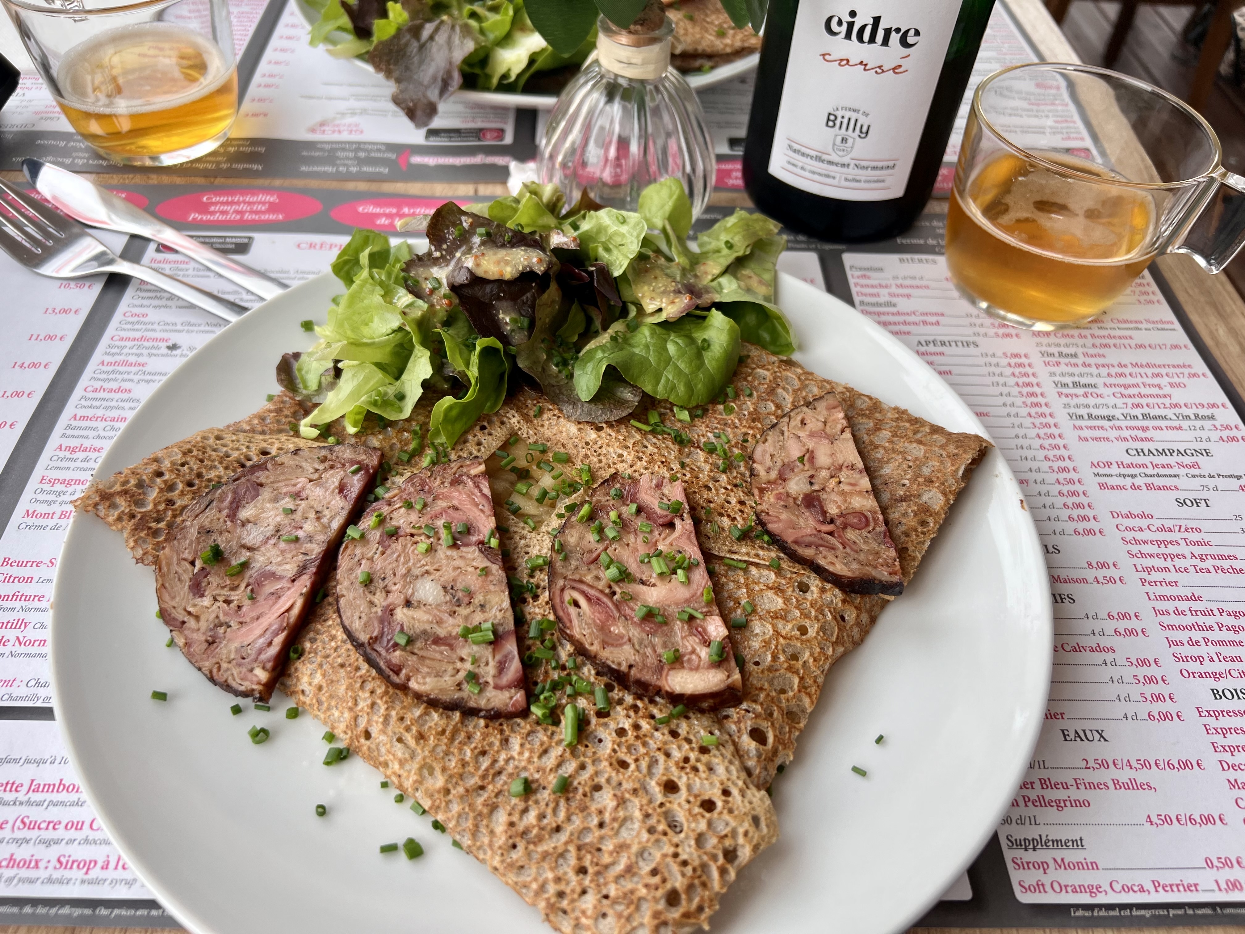 Bon et sans fioriture, le cidre rattrape le tout. Plus cher que beaucoup de crêperie où je suis allé.