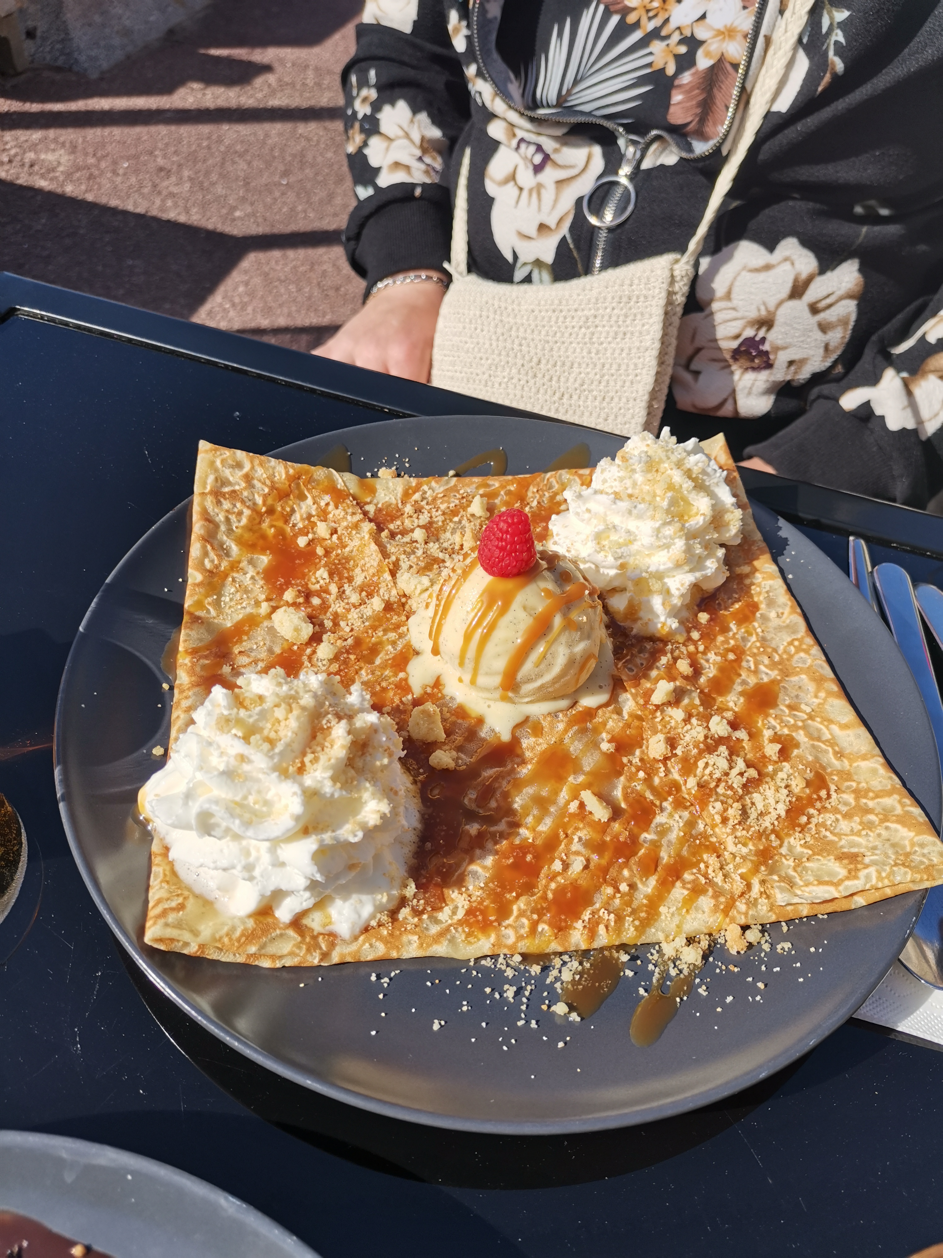 Accueil chaleureux Crêpe au sirop d érable et glace au caramel beurre salé Succulentes! A recommander Le tout avec vue sur la mer!