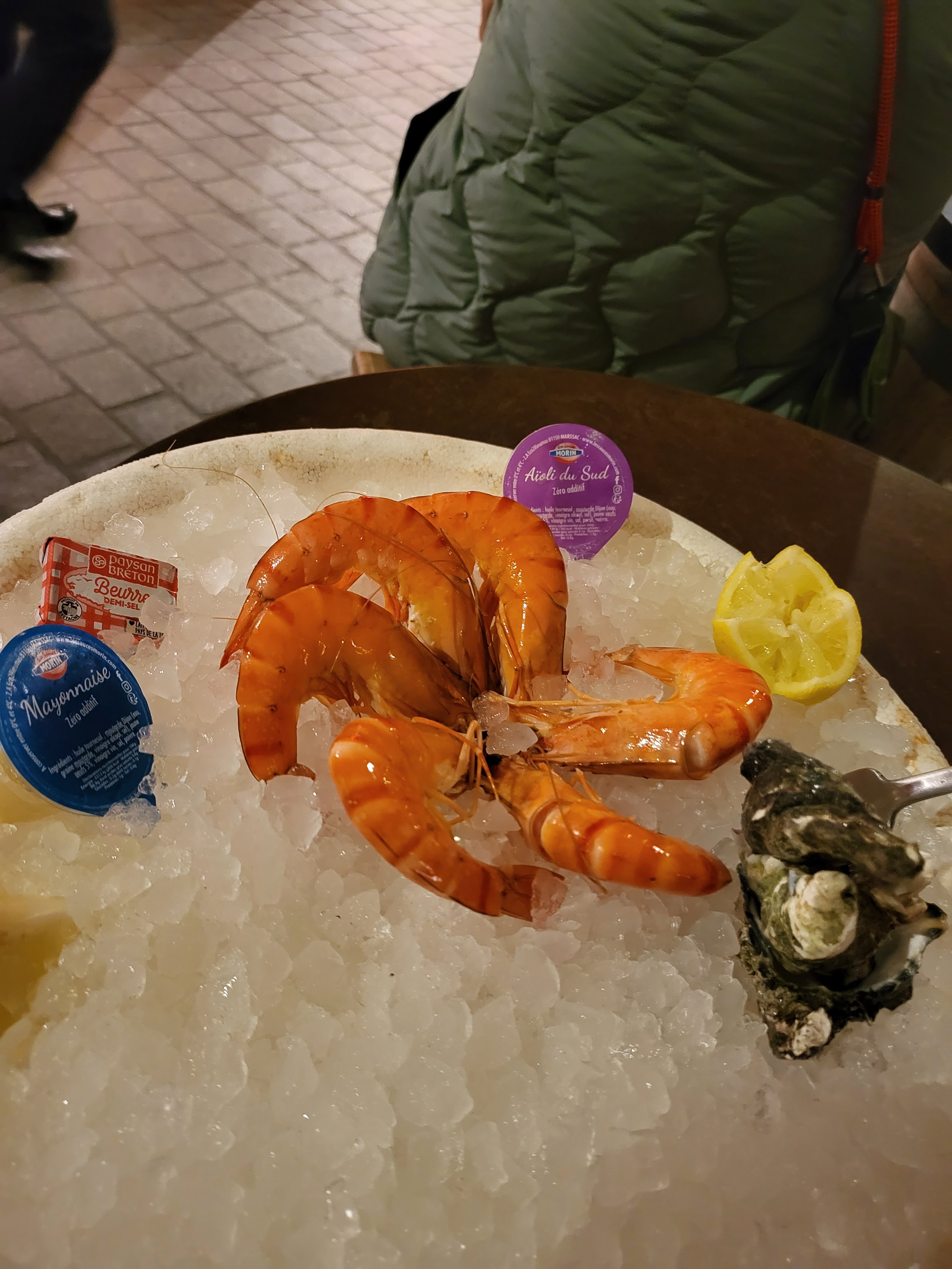 Concept très sympathique. Nous nous sommes arrêtées chez Claude coquillage. Assiette de pâtes aux crevettes en persillade. Excellentes. Un peu cher...