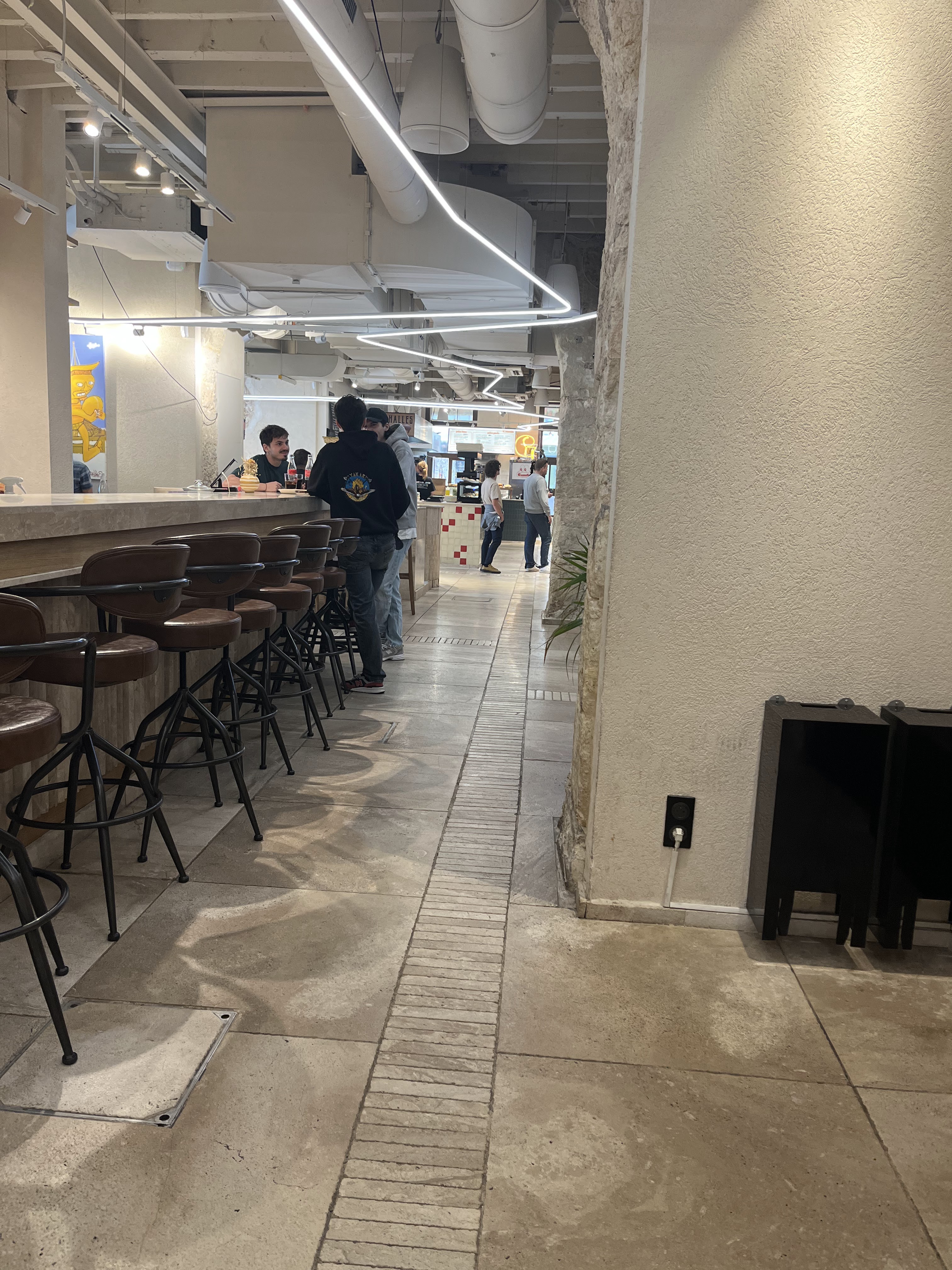 Une vraie bonne idée ! Enfin une food hall en plein centre, qui bien que de taille modeste rassemble quelques belles échoppes. Mention spéciale pour la pizza napolitaine 500 gradi bien réalisée et aux prix pas trop exagérés ! Espérons que cela dure pour inscrire ce succès dans le temps.