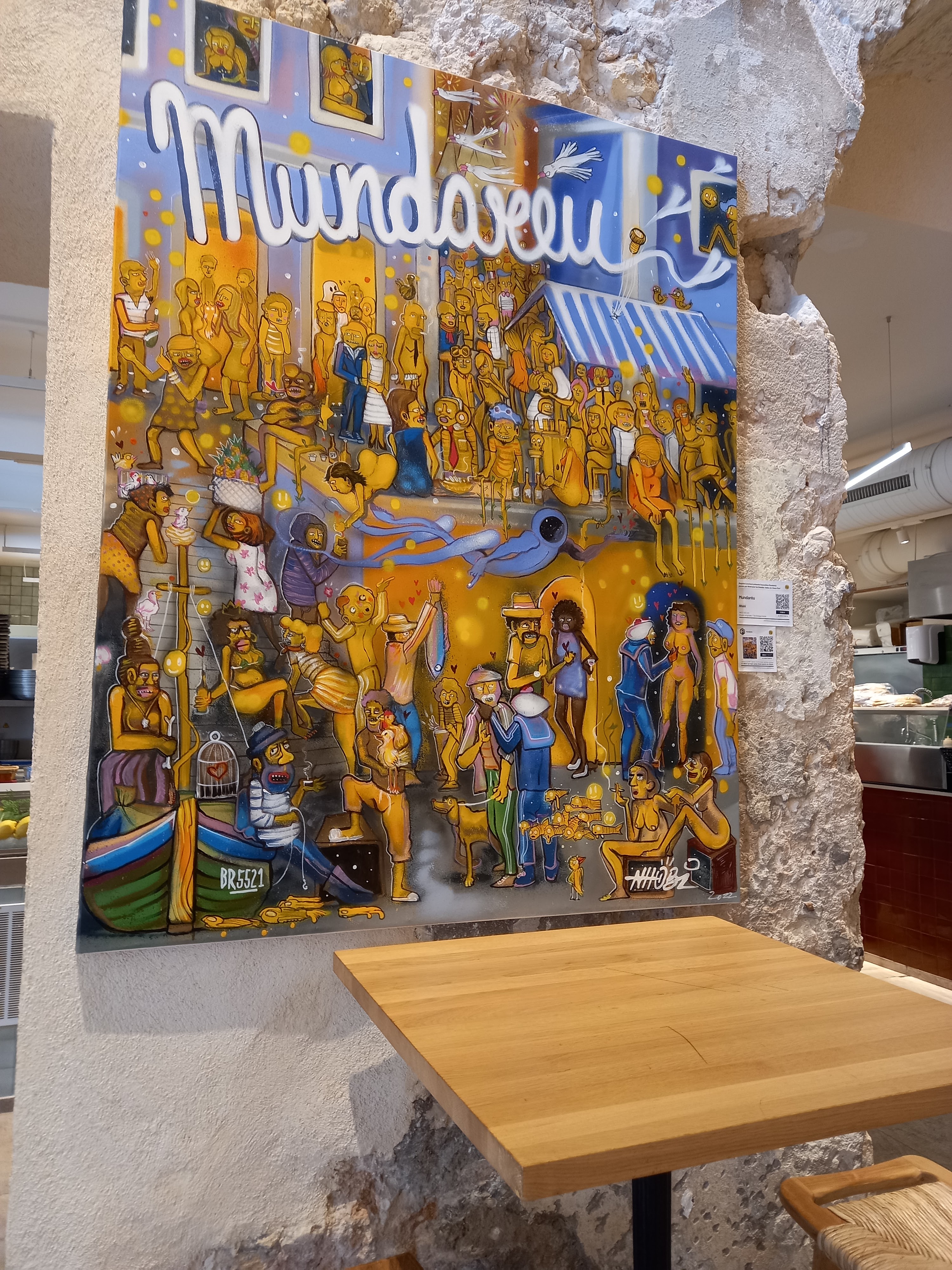 Ce n'est pas un restaurant, mais plutôt un marché alimentaire. À l'intérieur se trouvent plusieurs stands de nourriture allant de la pizza et des frites aux sushis et aux huîtres aux oursins. Et deux bars avec boissons. Tout fonctionne en mode libre-service. Autrement dit, vous achetez de la nourriture et des boissons et vous vous rendez à une table libre. Le week-end, vous devez arriver vers midi, sinon vous risquez de ne pas trouver de table. Les prix sont légèrement au-dessus de la moyenne.