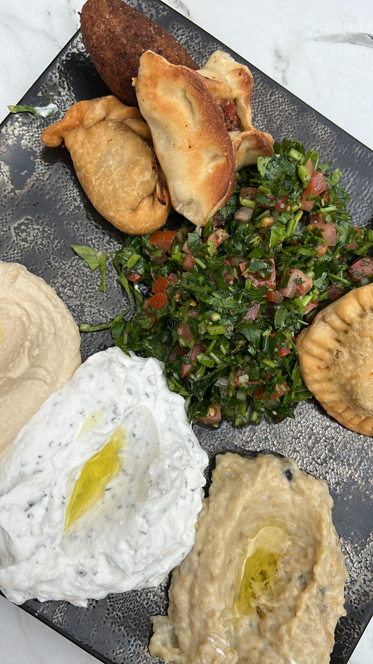 *C'est tellement difficile de rater les mezze libanais, mais j'ai gaspillé 15€ pour manger des trucs froids et le pire houmous et babaganoush de ma vie. Plus jamais ça.