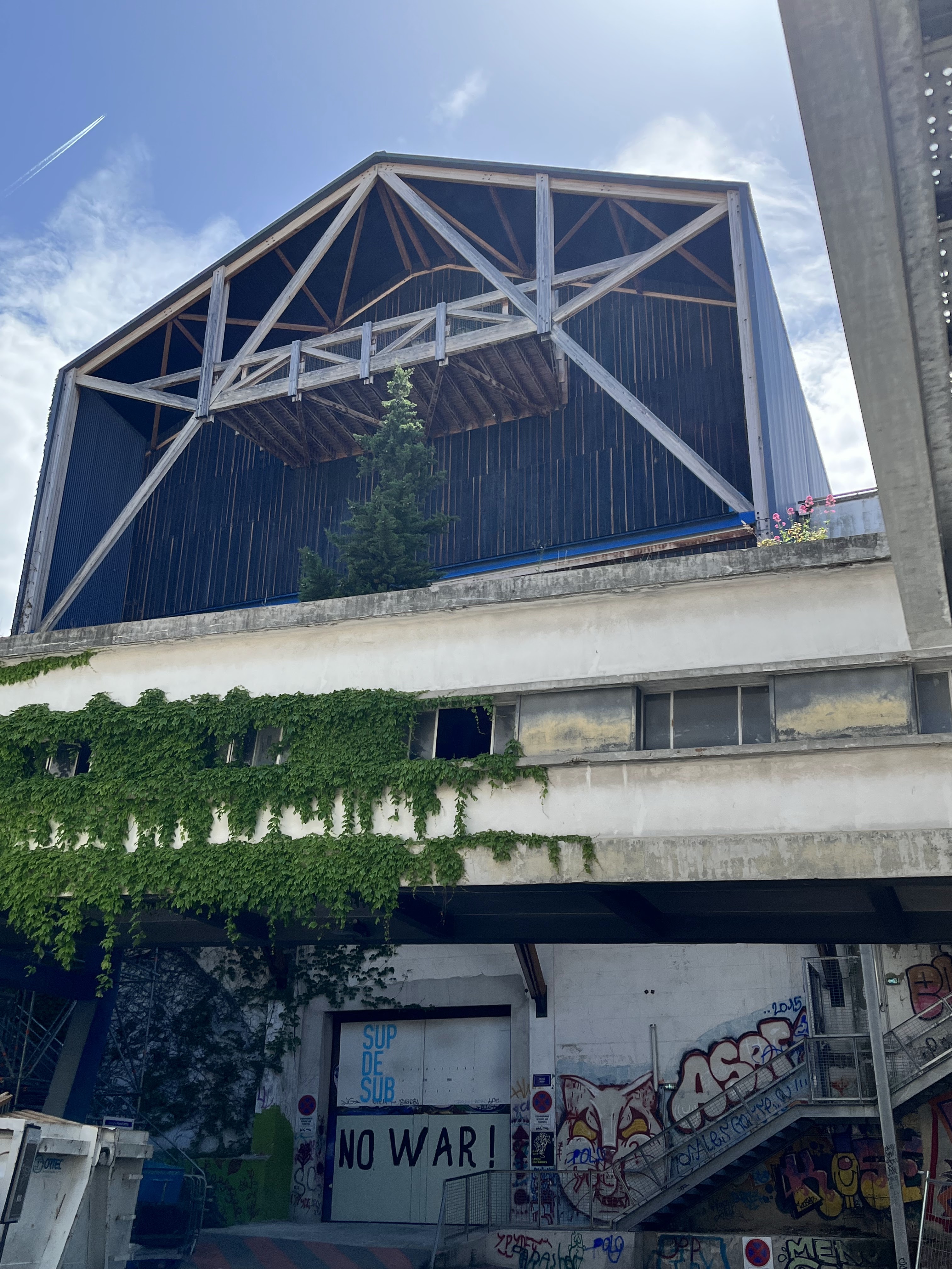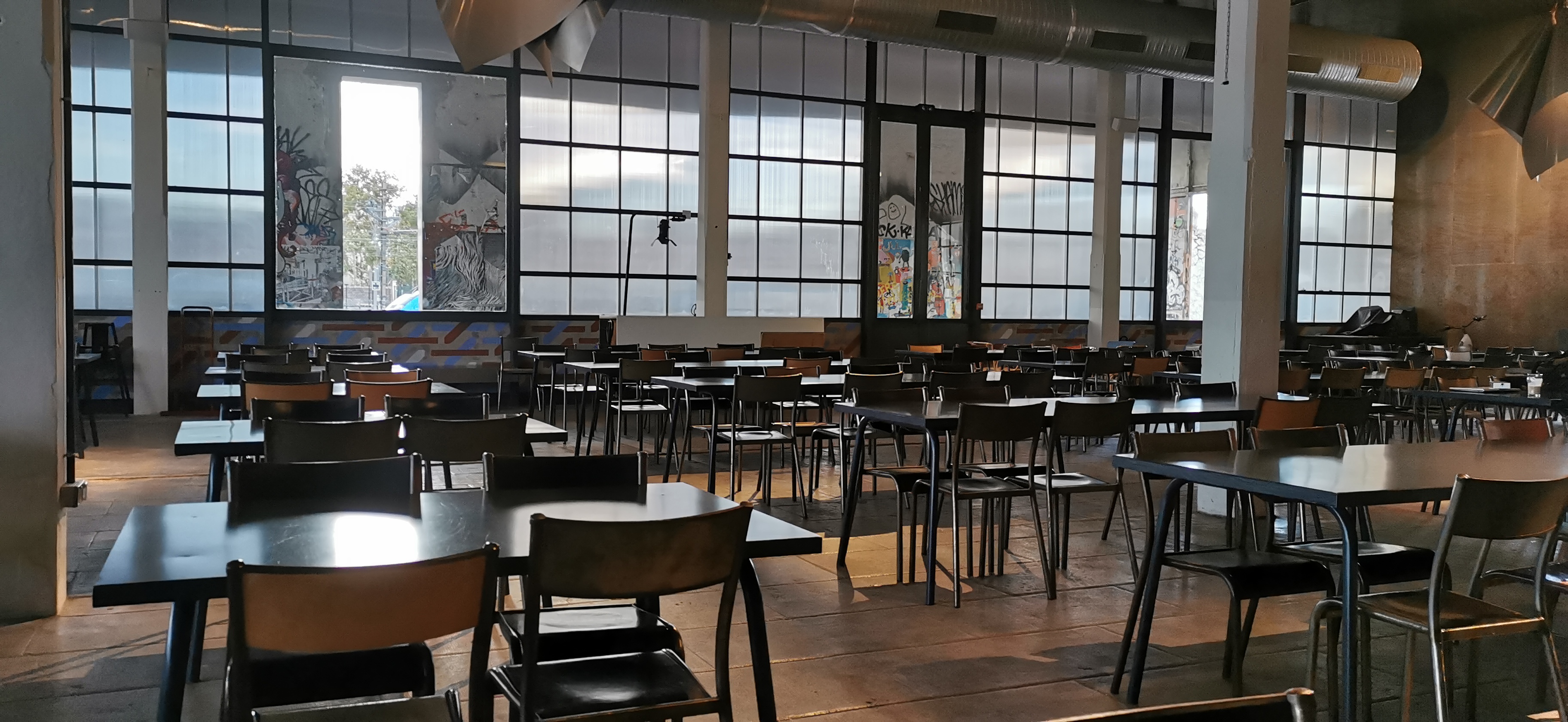 Au cœur de la Friche. De grandes tables conviviales avec service restauration le midi uniquement. De beaux tags aux alentours. À voir !