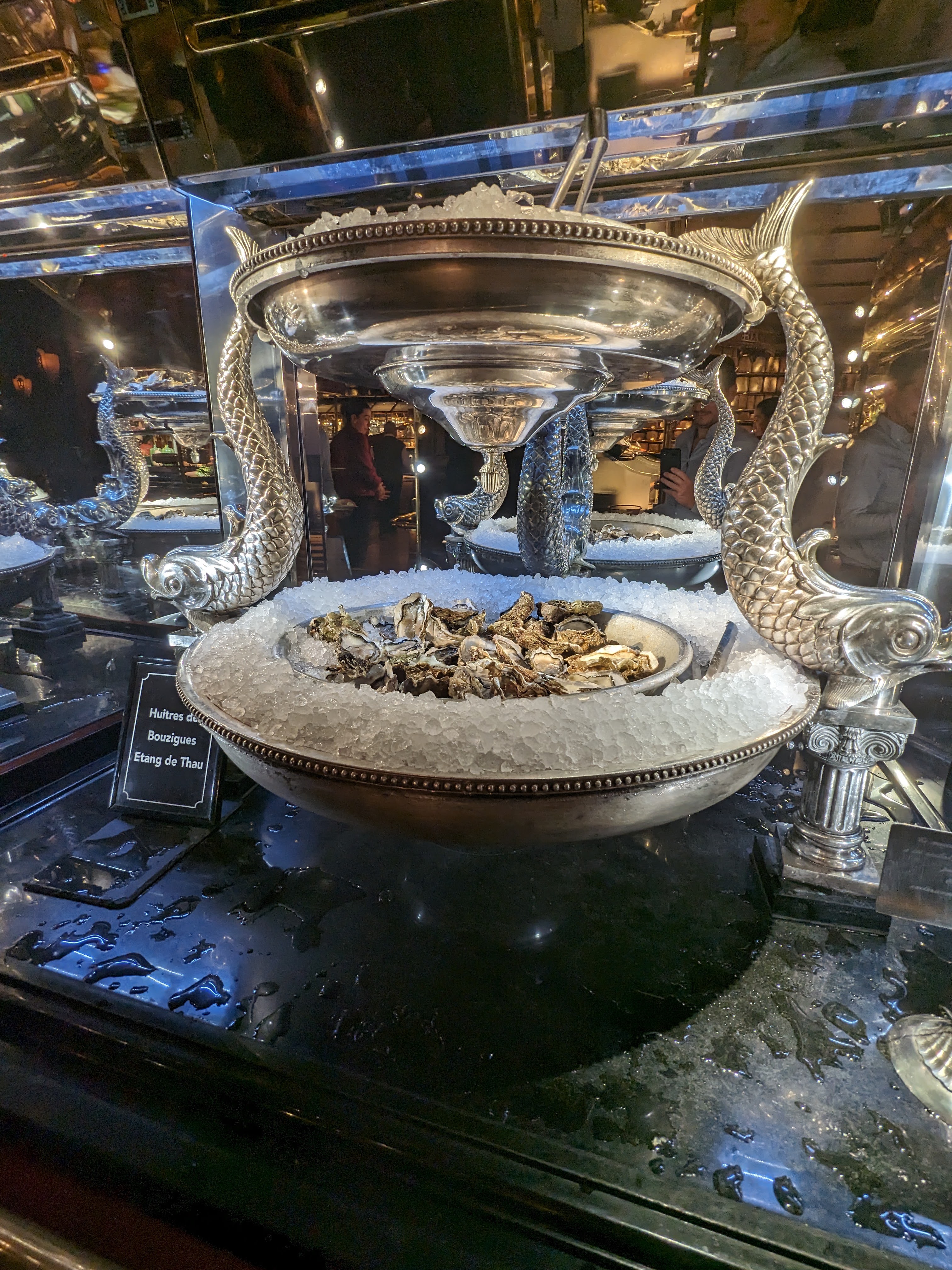 L’endroit est très beau et bien agencé ! On y mange des mets de qualité exceptionnel notamment les huîtres et autres spécialités typiquement française (le canard au sang par exemple). Je recommande vivement les grands buffets !!
