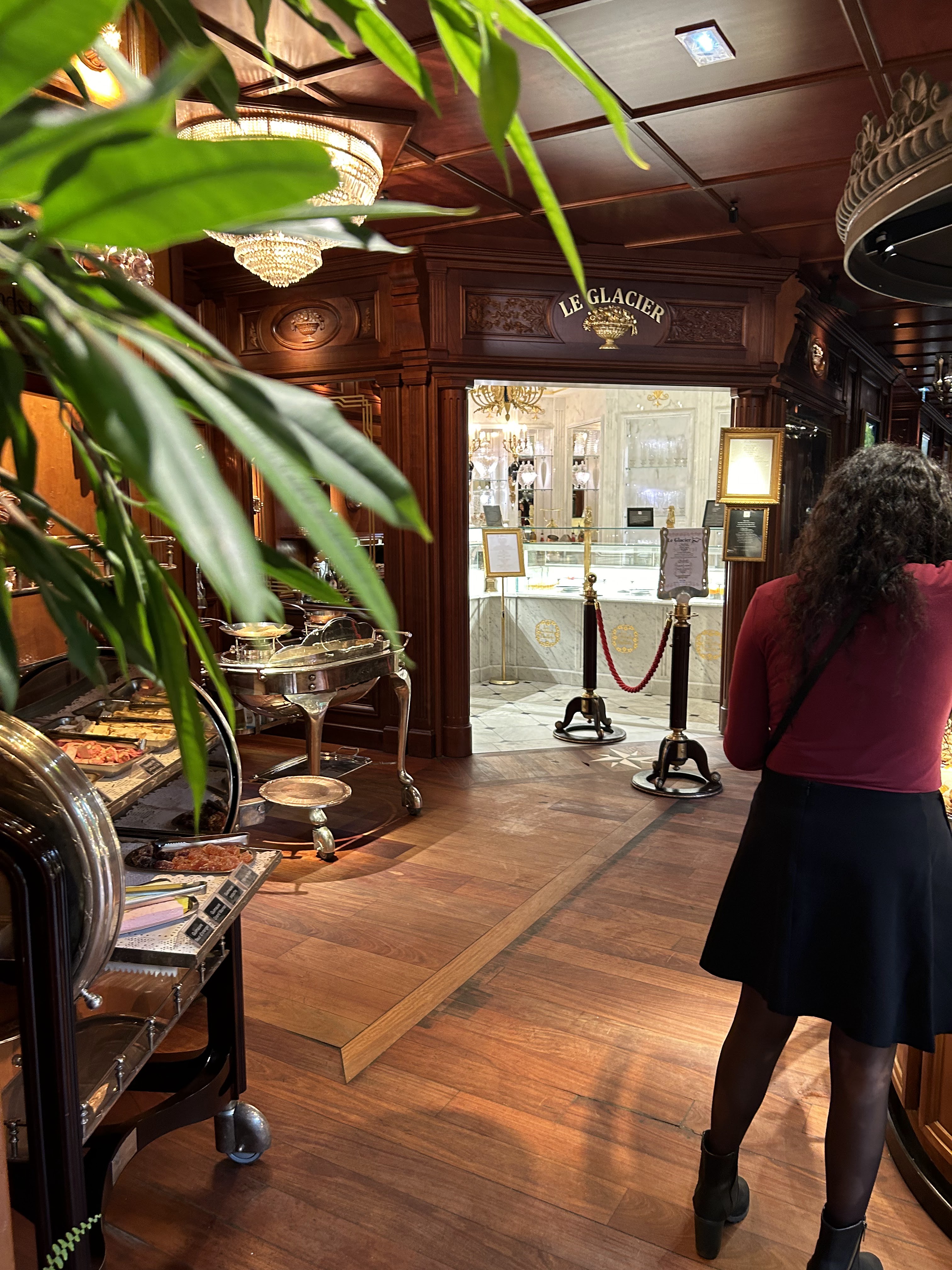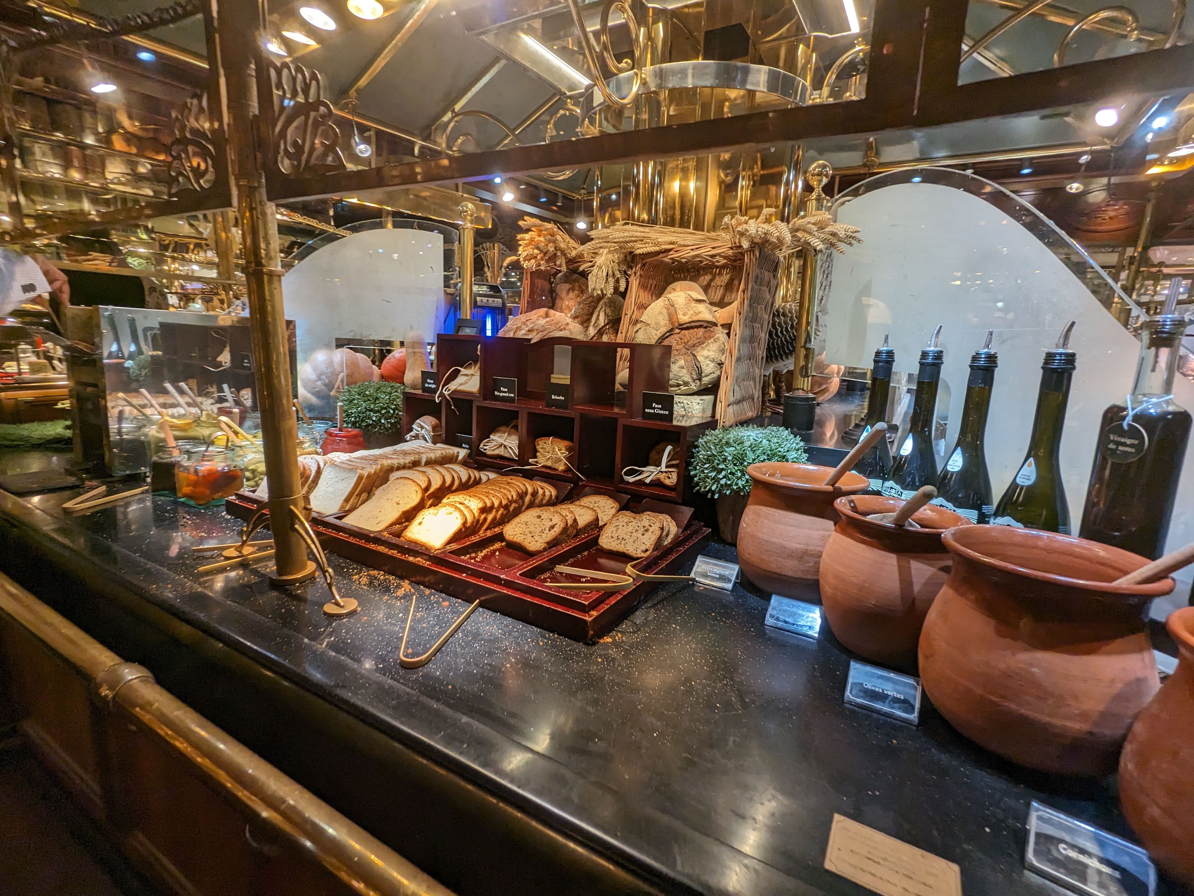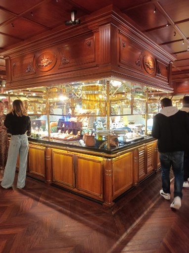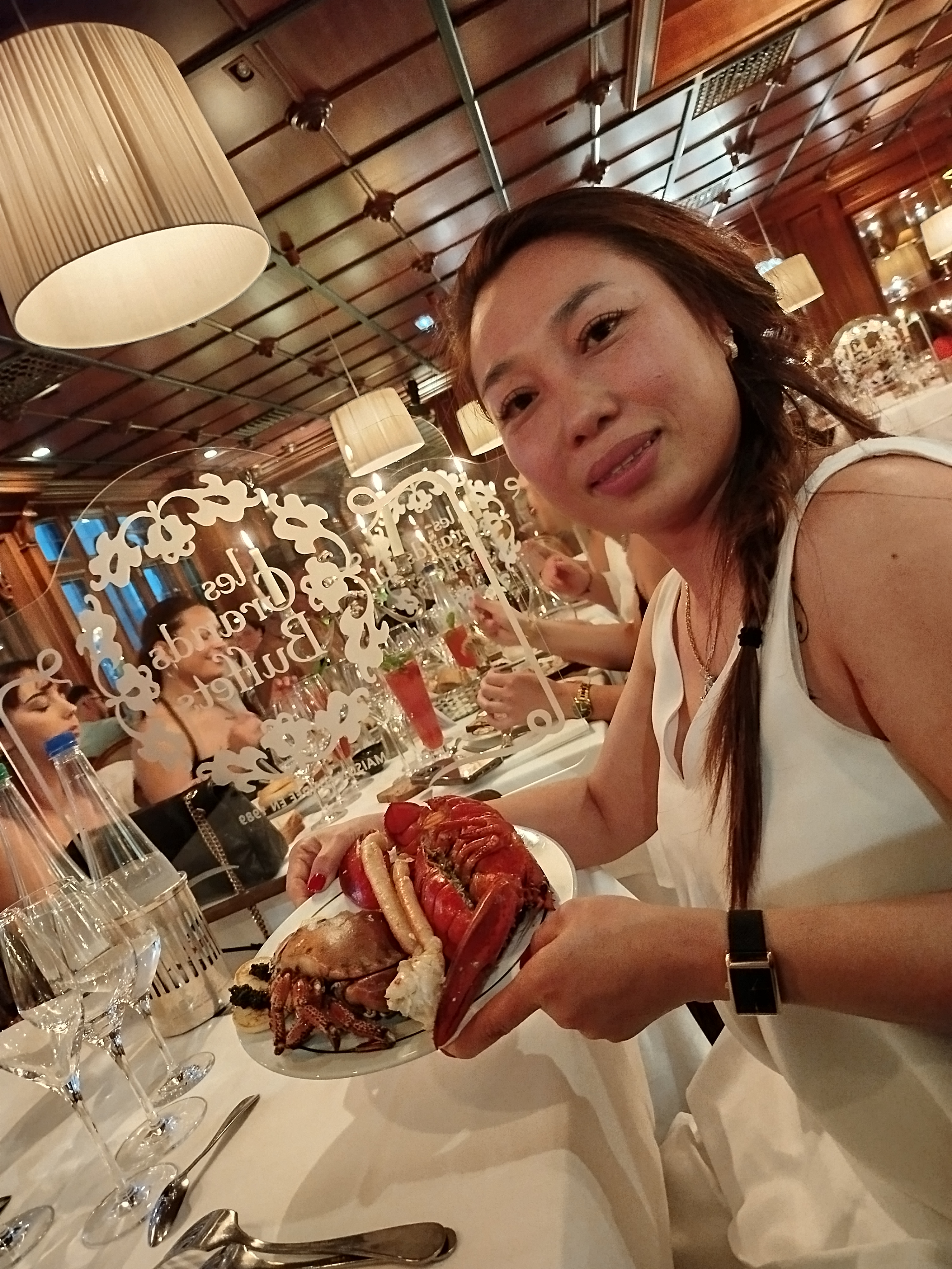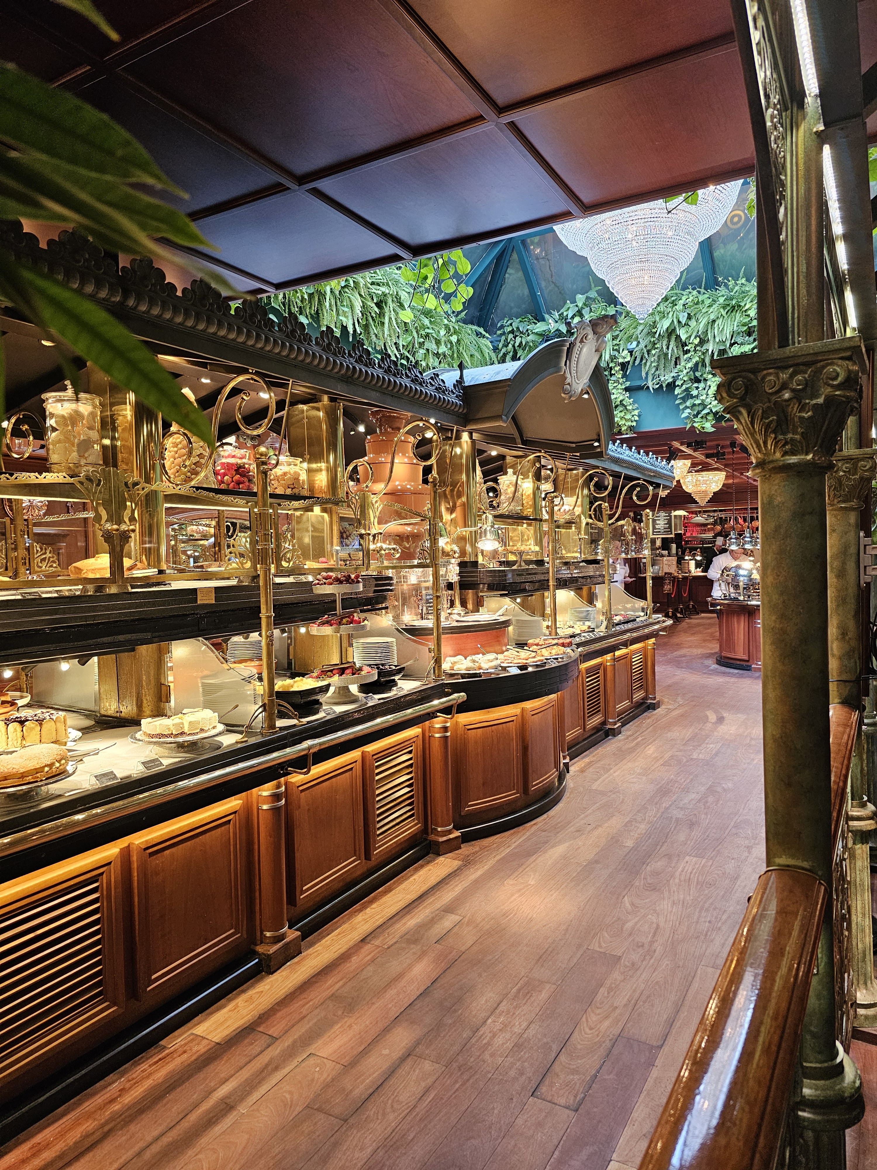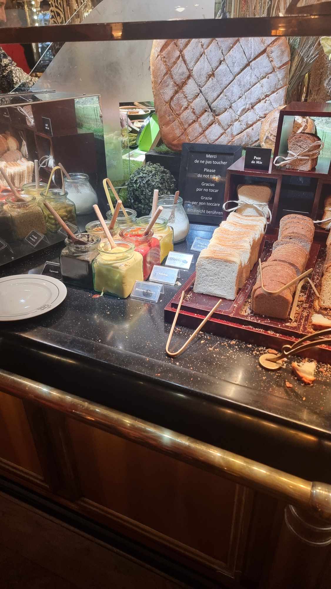 Que dire de ce lieu? Tout a été dit, mais l'expérience est encore le meilleur moyen de se rendre compte. C'est extraordinaire, grandiose, merveilleux. À notre arrivée nous sommes reçus par un jeune homme qui nous dirige dans notre file horaire. A l'heure dite nous rentrons dans ce lieu déjà magique, une femme vérifie notre réservation et Ambre nous conduit à notre table. Nappe et serviettes en tissu, une cheffe de rang nous installe (j'ai pas retenu son nom désolé) et nous présente notre serveuse Sandy. Ensuite nous sommes au Paradis de la gastronomie parce que contrairement à un restaurant classique ou nous devons manger un menu imposé, là c'est à volonté. Mais ça ne serait pas complet si on ne parlait pas du personnel. Tout le personnel y compris le directeur que nous avons côtoyé est souriant, serviable, compétent ( les buffets sont toujours remplis). Même les anniversaires sont souhaités. Un dernier point, vous ne pourrez pas tout manger, alors ne gaspillez pas.