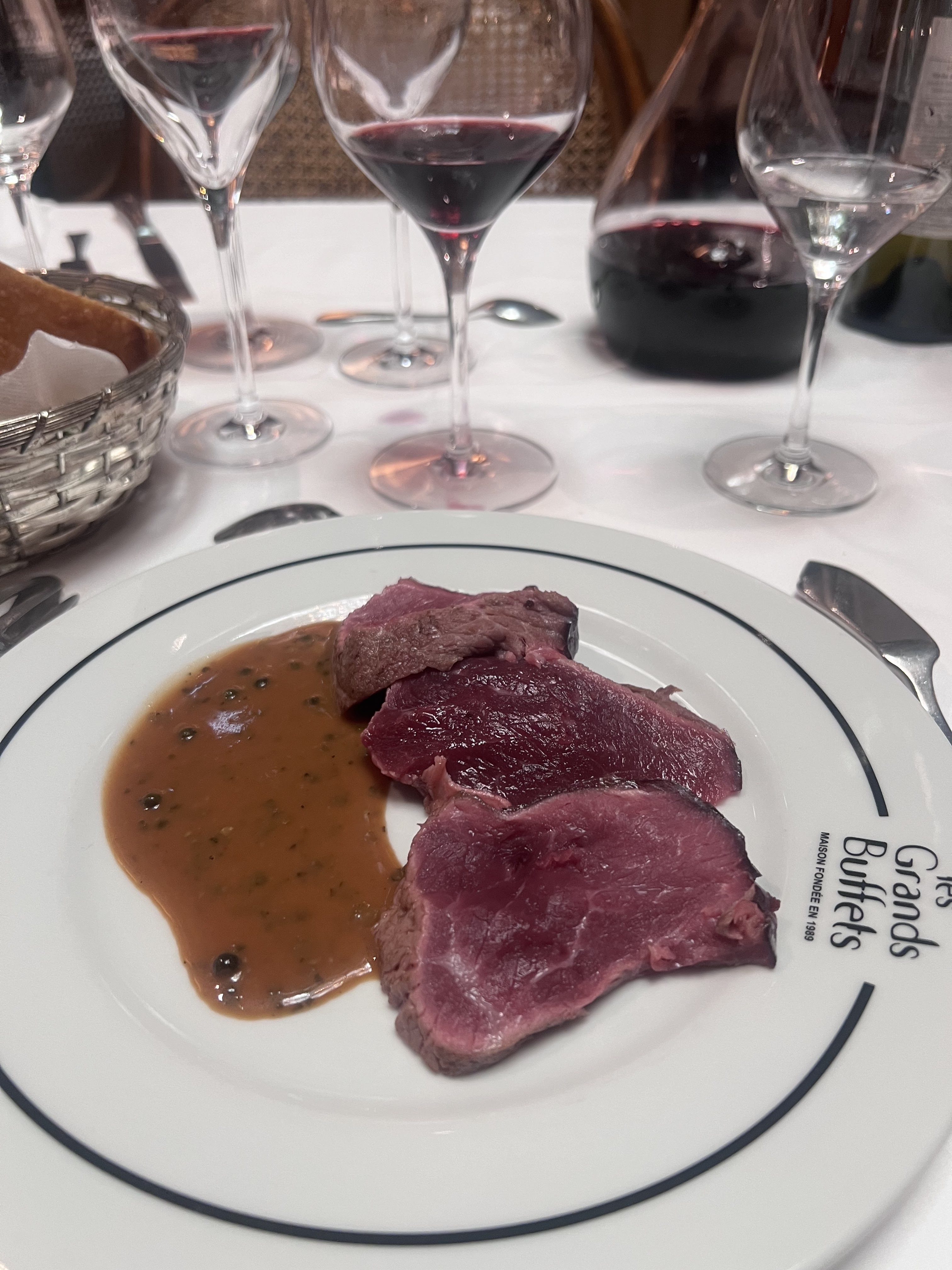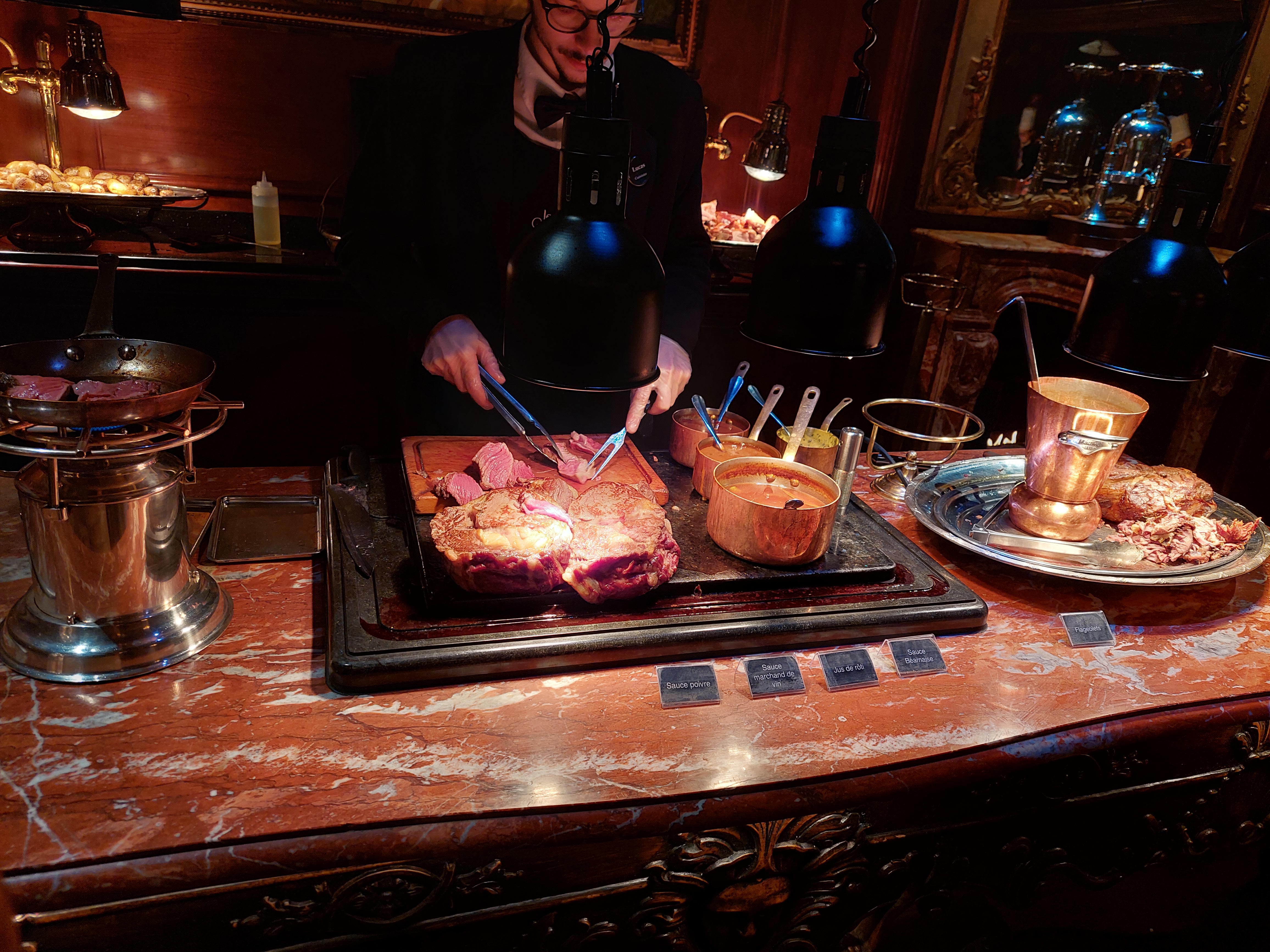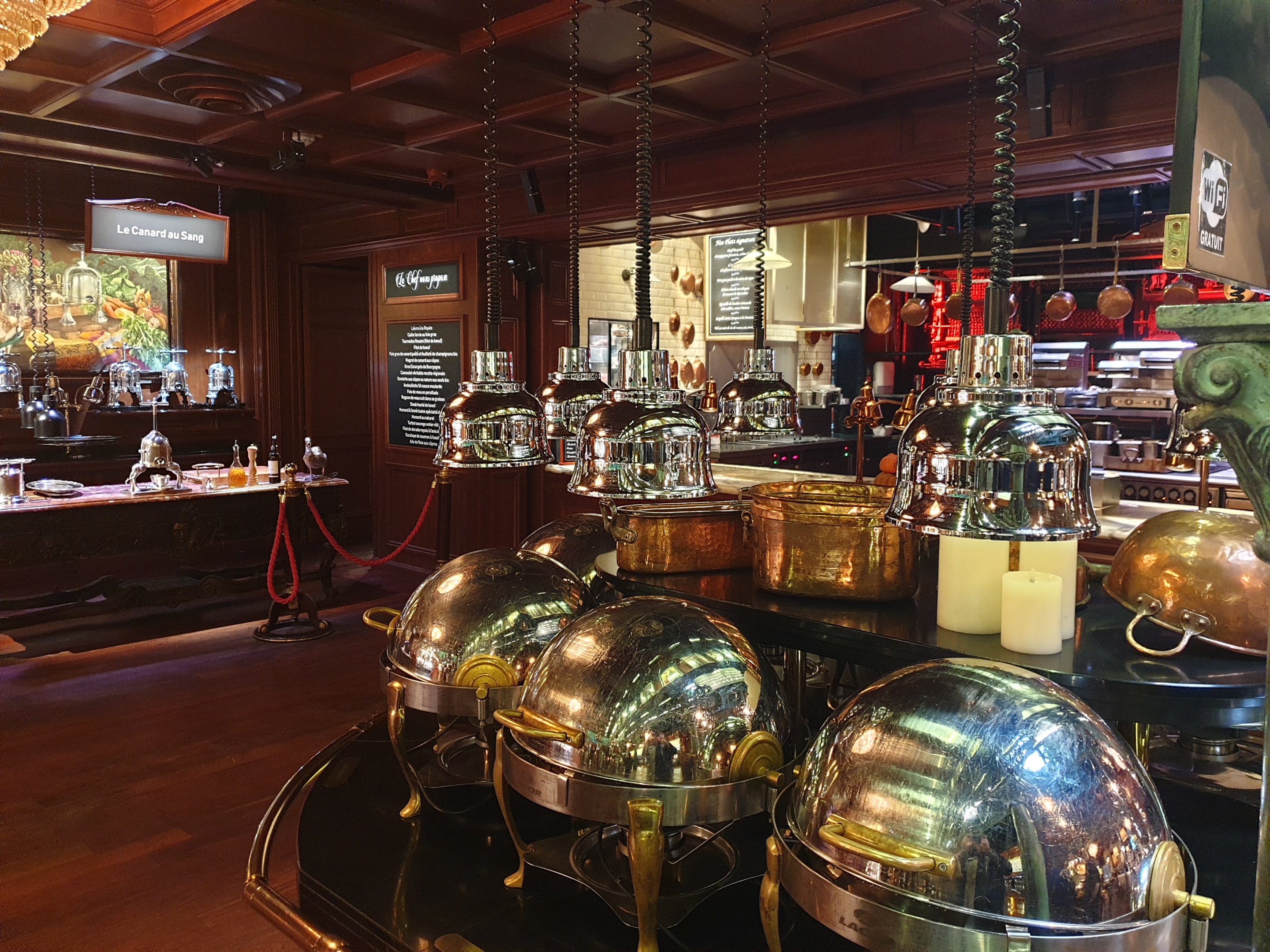Tout le monde en parle , et c’est mérité ! En entrée huîtres , plusieurs fois gras , homard , et des dizaines d’autres choix, c’est Noël avant l’heure. Pour les plats, le choix est illimité, saint Jacques, tournedos , fois gras poêlé, côte de bœuf, os à moelle, leur fameux canard au sang … c’est impossible de tout goûter, mais tout est excellent , la qualité est au rendez vous. Le plus grand plateau de fromage au monde n’est pas une légende , 110 fromages de qualité : incroyable. Au dessert : des dizaines de pâtisseries délicieuses, et même un glacier (!). En résumé ce buffet est exceptionnel, il faut le faire au moins une fois , et revenir si l’on souhaite tout goûter , je recommande évidemment !