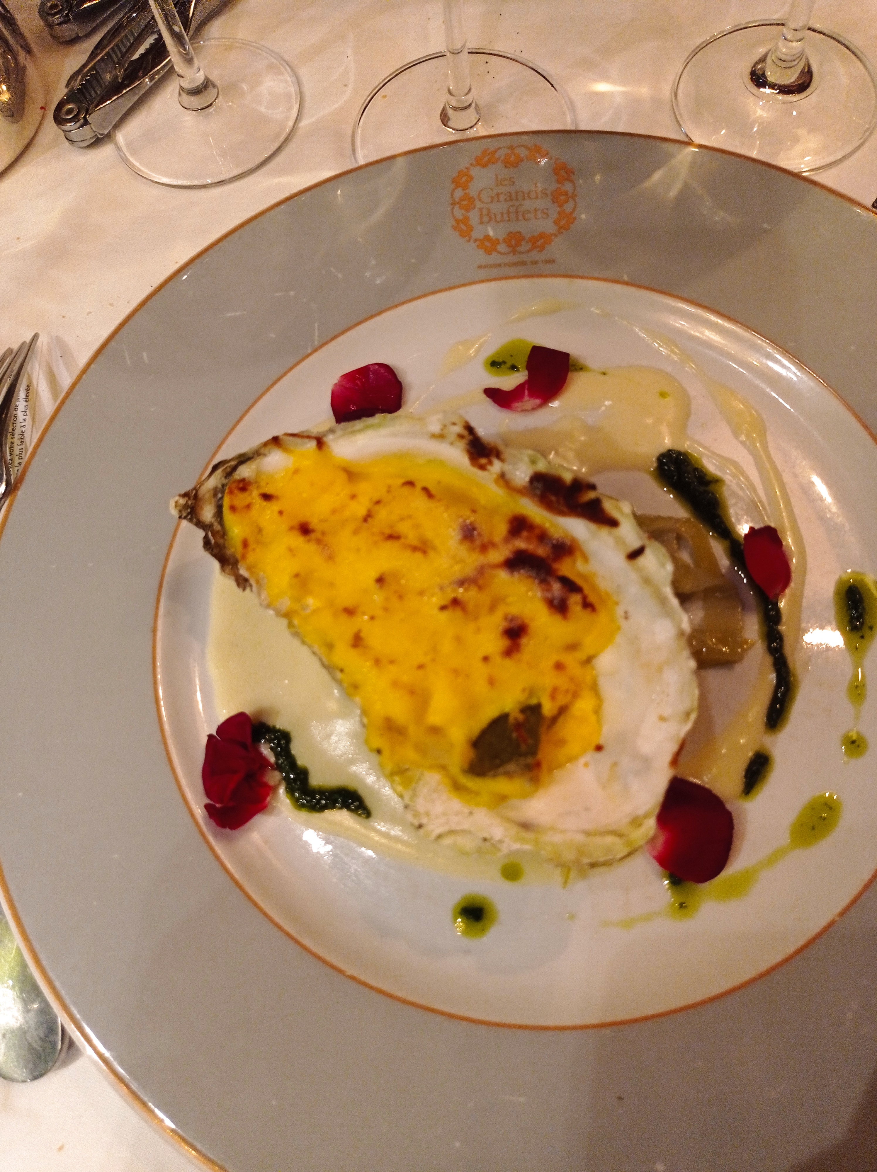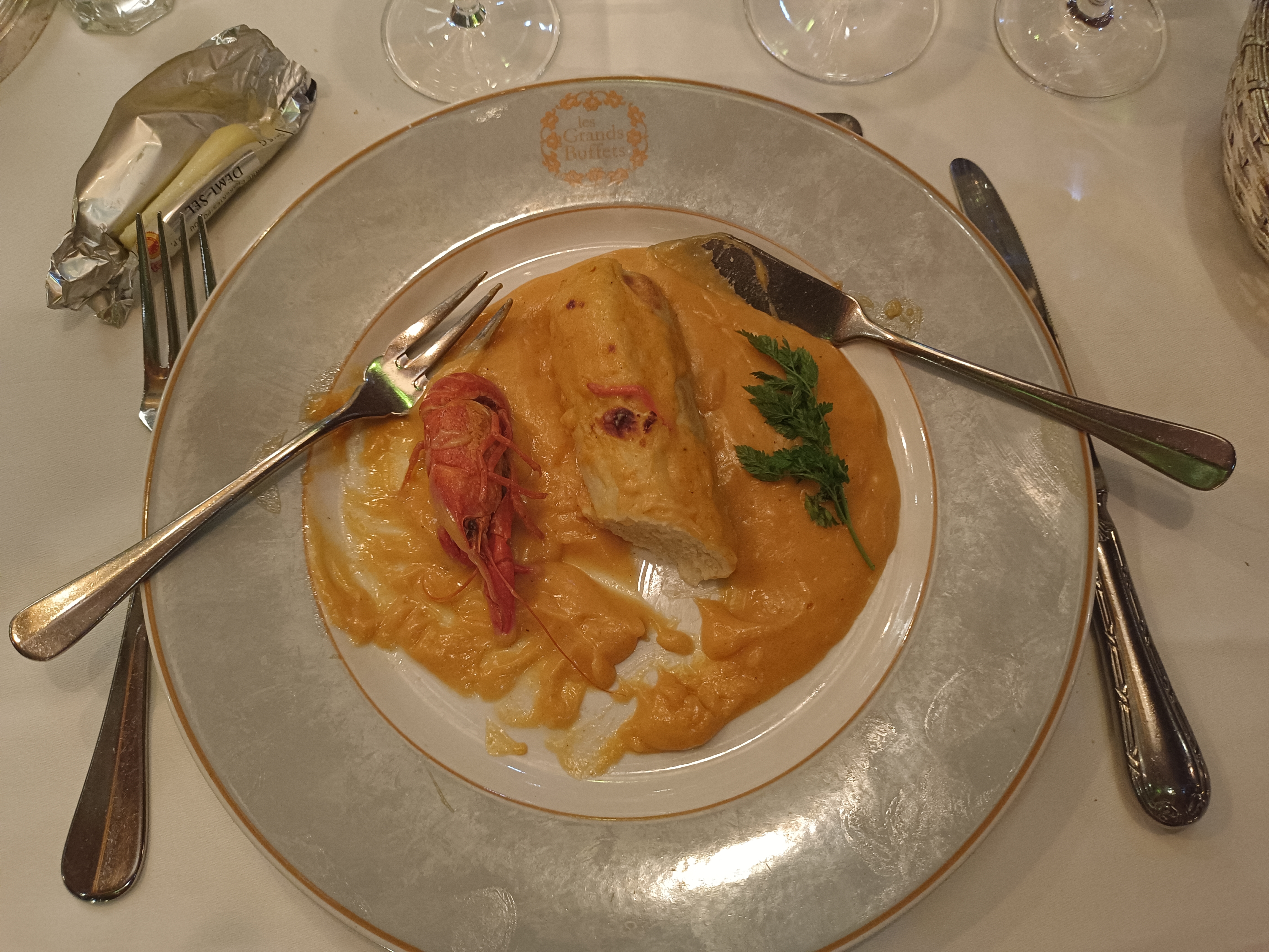 Une visite aux Grands Buffets se prépare ! L'offre est tellement vaste, de qualité toujours excellente, sophistiquée qu'il vaut mieux se préparer pour un parcours culinaire cohérent qui garantisse une belle dégustation des entrées aux desserts. Pour moi, ce soir là (voir photos) : dégustation des foies gras, des saumons et jambons secs, quelques crustacés regroupés autour d'un demi homard, le mythique Canard au sang suivi d'une tranche de côte à l'os maturée, un trou normand bienvenu, une assiette de fromage et une de desserts traditionnels, pas si simples à réaliser. Bon, tout est excellent, soigneusement présenté et magnifiquement réalisé par une équipe de vrais spécialistes (cuisiniers, pâtissiers, fromagers). Le personnel est en nombre, attentif, organisé, structuré comme dans une brigade d'étoilé. La carte des vins est somptueuse, appuyée sur une offre régionale pléthorique à des tarifs cave. Bref, j'y reviendrai avec quelques amis bons mangeurs en inscrivant cette fois ci à mon programme le lièvre à la royale et quelques autres plats en sauce écartés cette fois ci.