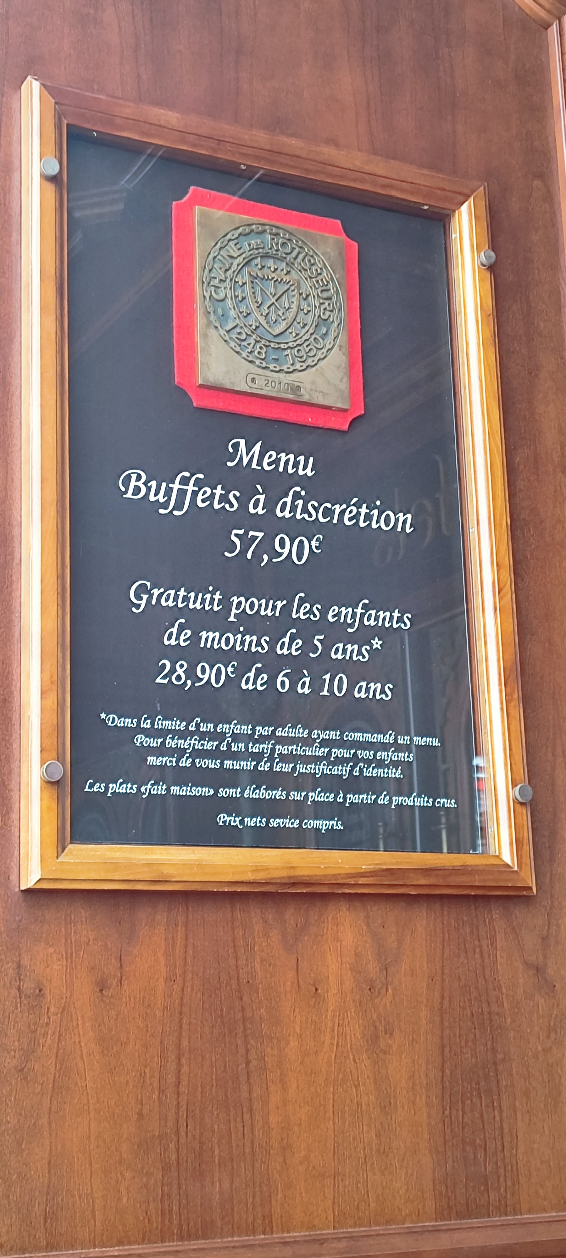 C’est toujours une expérience que d’aller dans ce lieu unique. Certes vous ressortez avec un « burn-out alimentaire » mais avec le sourire ! L’accueil, le service, le decor de la salle Jean de La Fontaine, tout est fait pour plaire. Boissons à prix coûtants. On hésite pas à y revenir chaque année.