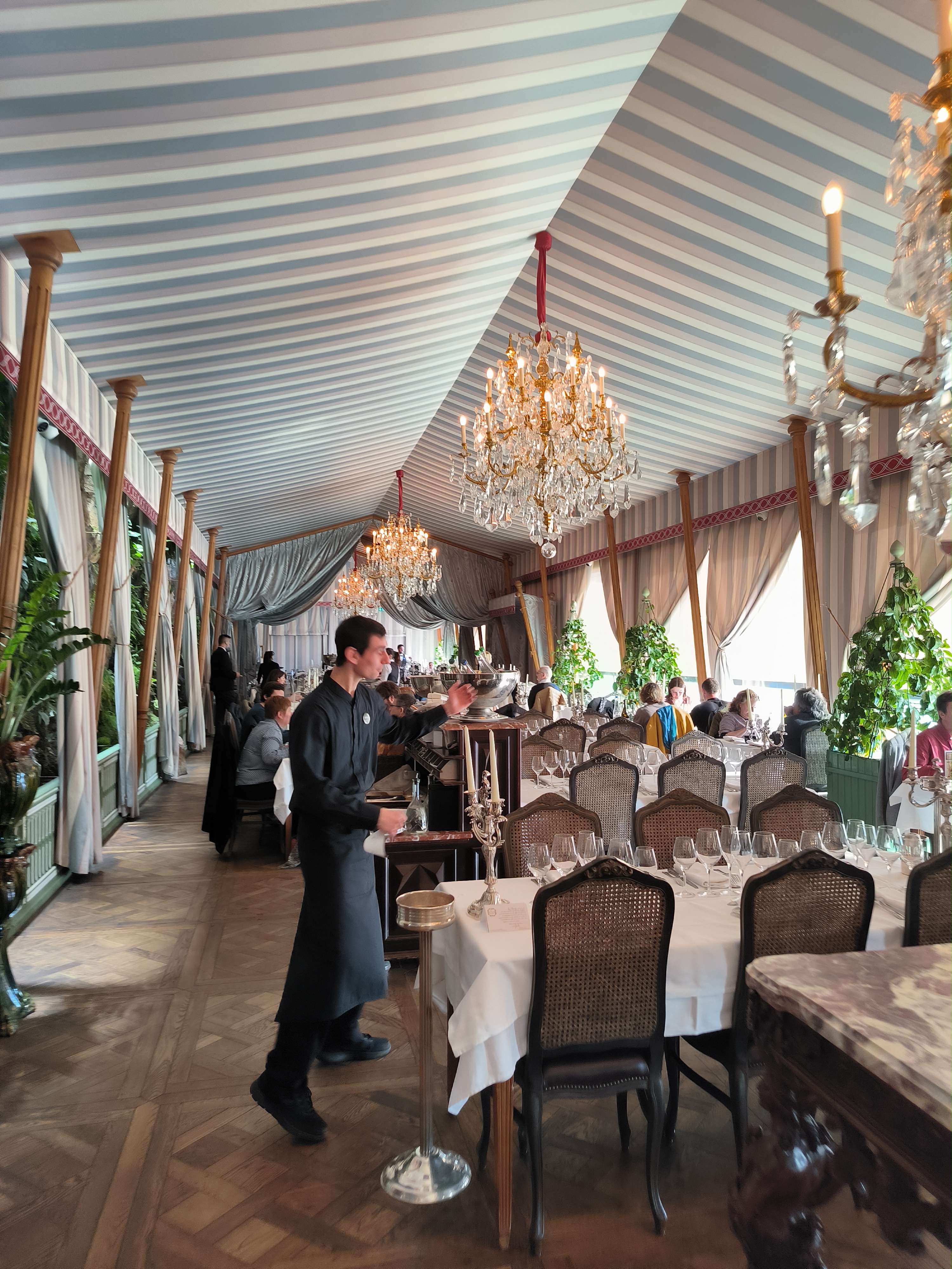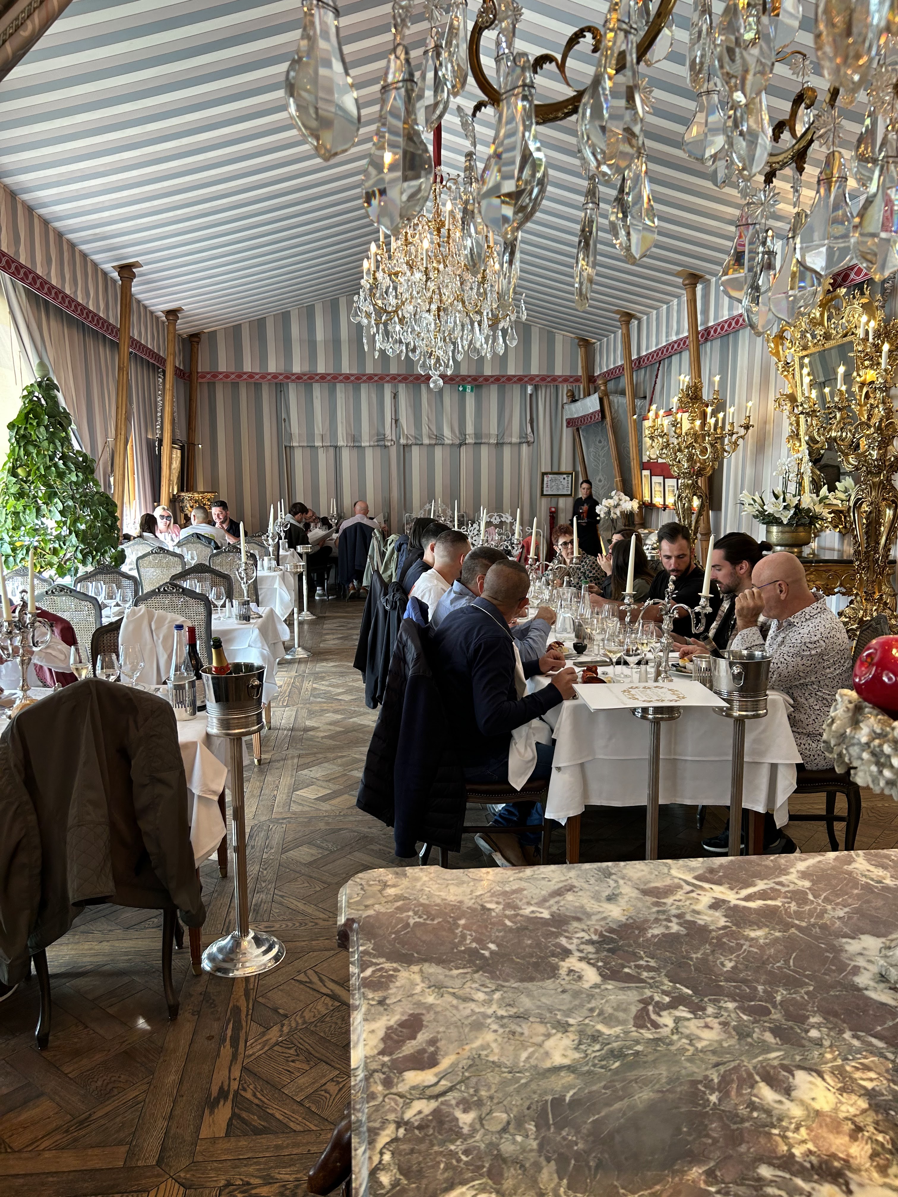 Une réservation 1 an à l'avance, mais on est pas déçu! La gastronomie française dans toute sa splendeur, un service bien meilleur que présagé compte tenu de l'immensité du lieu. Un concept d'assiettes de dégustation que l'on vous prépare soigneusement au buffet des foies gras, à celui des jambons. Une chouette expérience! Et une carte de vins infinie et ils sont tous vendus aux prix des domaines. On revient l'année prochaine c'est sur!