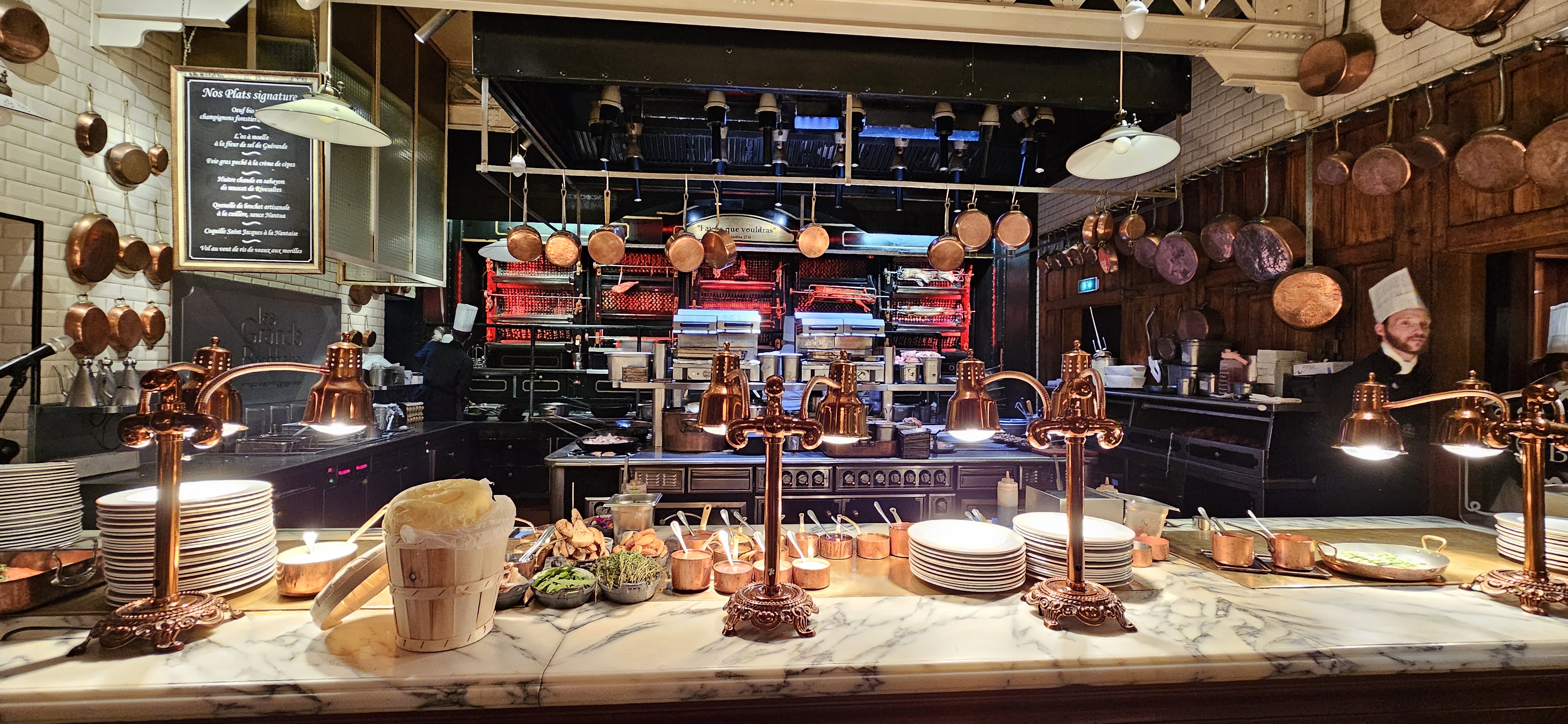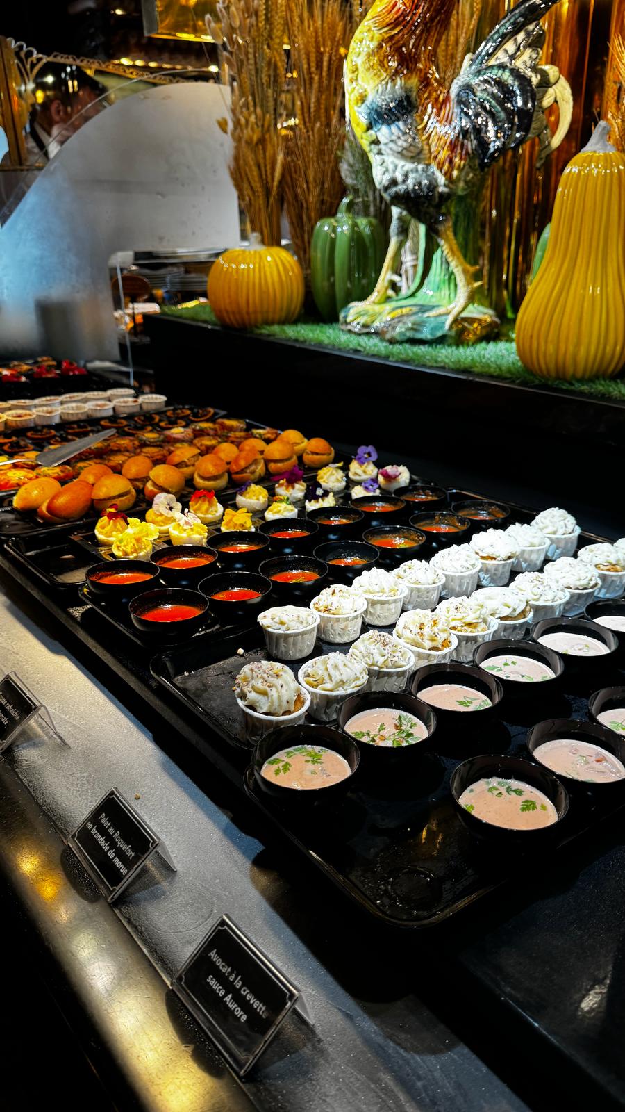 Il faut vraiment y aller au moins une fois !! L'établissement sort de l'ordinaire et tout est pensé pour faire passer un moment inoubliable. Les salles sont magnifiques et le personnel chaleureux et réactif. Impossible de tout goûter car les choix proposés sont énormes et les plats sont proposés avec le soin d'un restaurant étoilé. Seul bémol le saumon fumé d'une qualité décevante et les homards trop cuits...la chair était du coton. Excellente présentation pour la charcuterie, les entrées et les desserts. Mention spéciale pour les fromages et pour les foie gras vraiment extra !