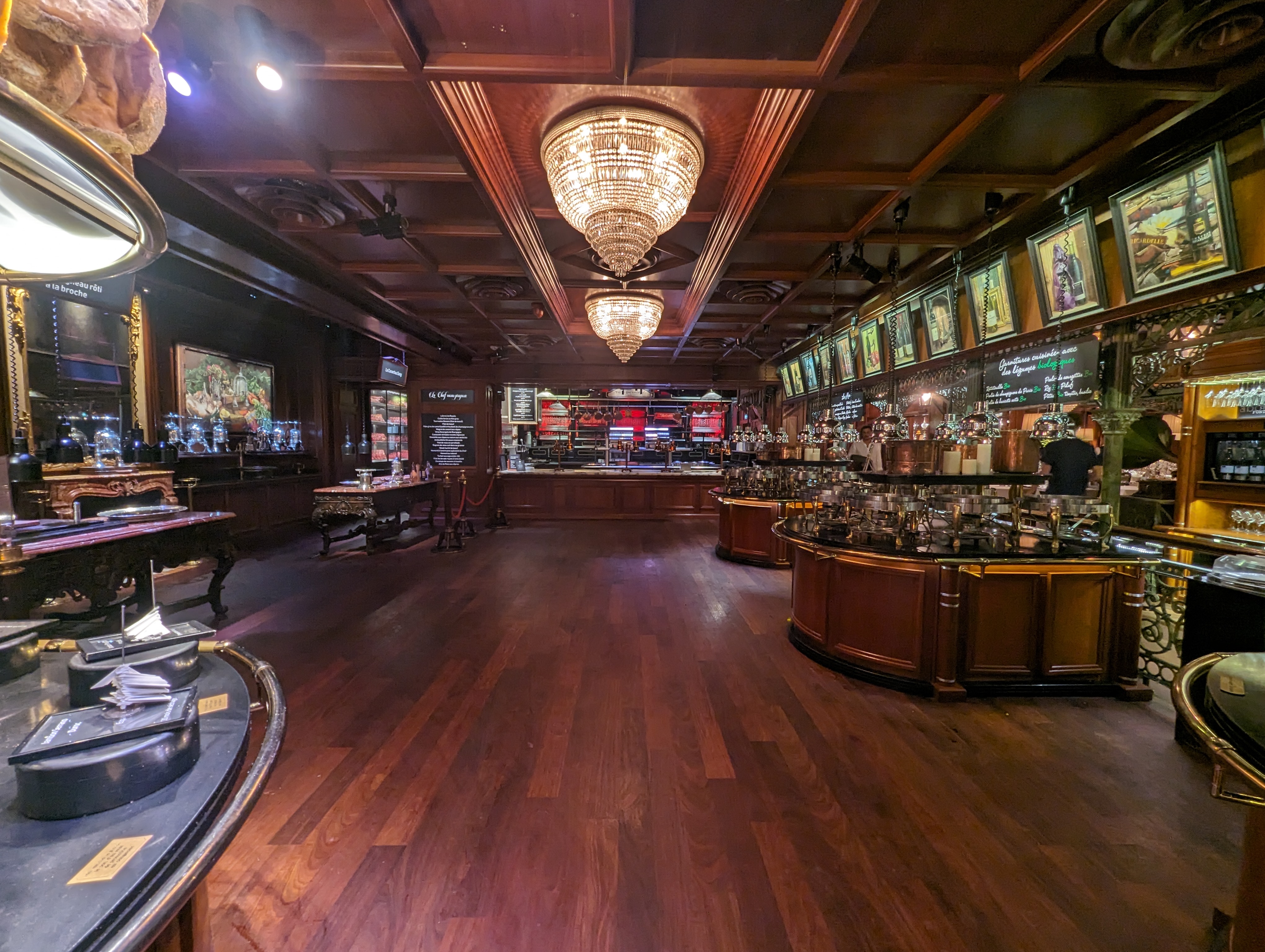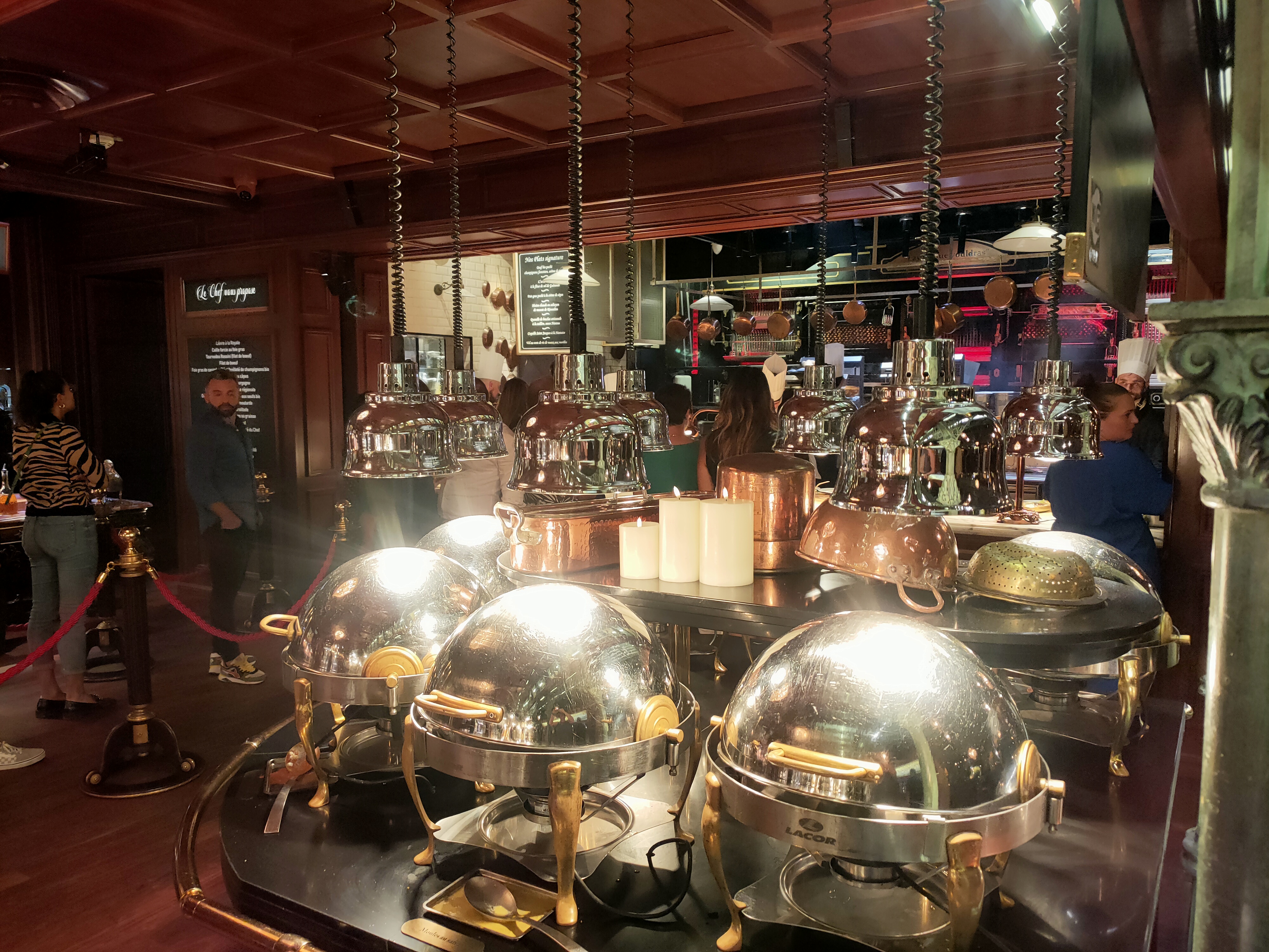 Une excellente expérience qui mêle la découverte d’un lieu singulier. La déco il faut aimer … mais elle en jette. Les plats du buffet sont de très bonne qualité et à profusion . L’organisation irréprochable avec un personnel qui débarrasse régulièrement les assiettes et qui est attentionné. Compter 3 heures pour profiter du large choix des différents mets. Une expérience qui vaut la peine