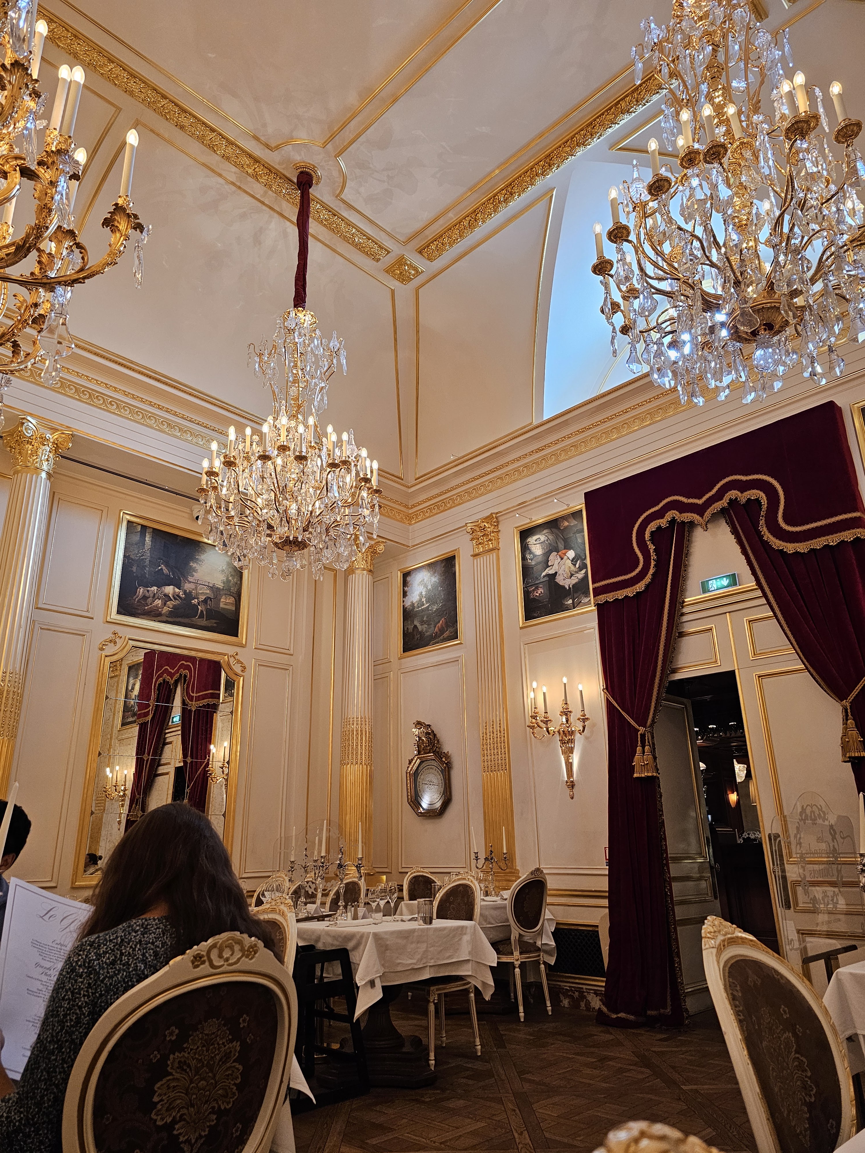 Une véritable expérience ! Le service est à la hauteur des restaurants gastronomiques, de l'arrivée au départ, vous êtes accompagné par le personnel. L'accueil est totalement personnalisé ! Une mention spéciale pour Stéphanie et Dominique qui nous ont accompagnés tout au long du repas, et avec qui nous avons vraiment appréciés échanger. La salle Jean de la Fontaine est spectaculaire, comme l'ensemble du restaurant. Nous avons apprécié le choix offert sur chaque buffet, la carte des vins est riche et valorise les vins locaux, retrouver des plats traditionnels divins (os à moelle, blanquette de veau, gigot d'agneau...)... Pour les plats, nous avons été un peu déçus de certains plats signatures (saveurs de l'œuf poché et la crêpe Suzette un peu caoutchouteuse...). En résumé, c'est une expérience incroyable à vivre au moins une fois (et à revivre ?)