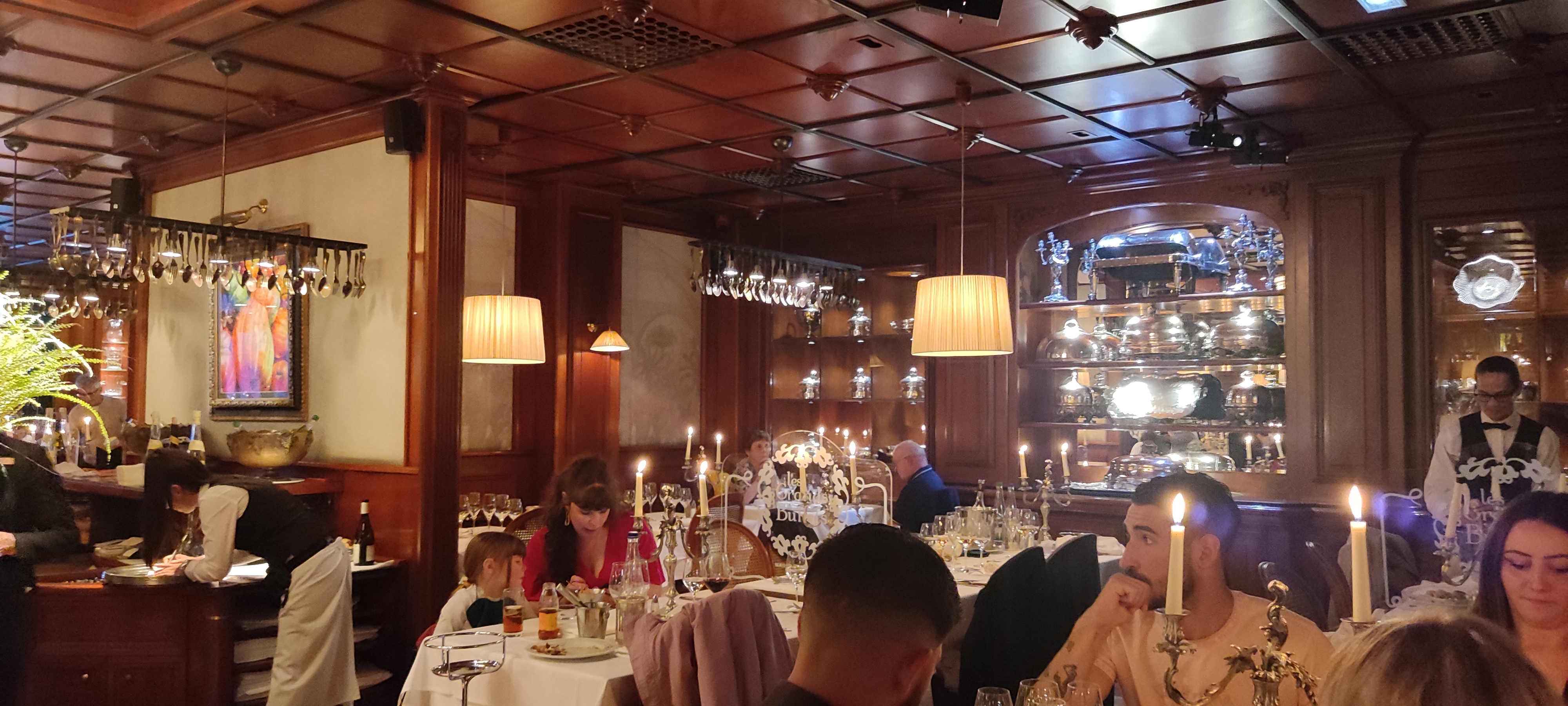 Très bon accueil, service impeccable. Immense choix d'entrées, de plats, de fromages, de desserts : c'est impressionnant ! Et la qualité est au rendez-vous. Décor typique et chic. C'est la première fois qu'on y allait et j'ai adoré. Par contre important à savoir : il faut réserver longtemps à l'avance.