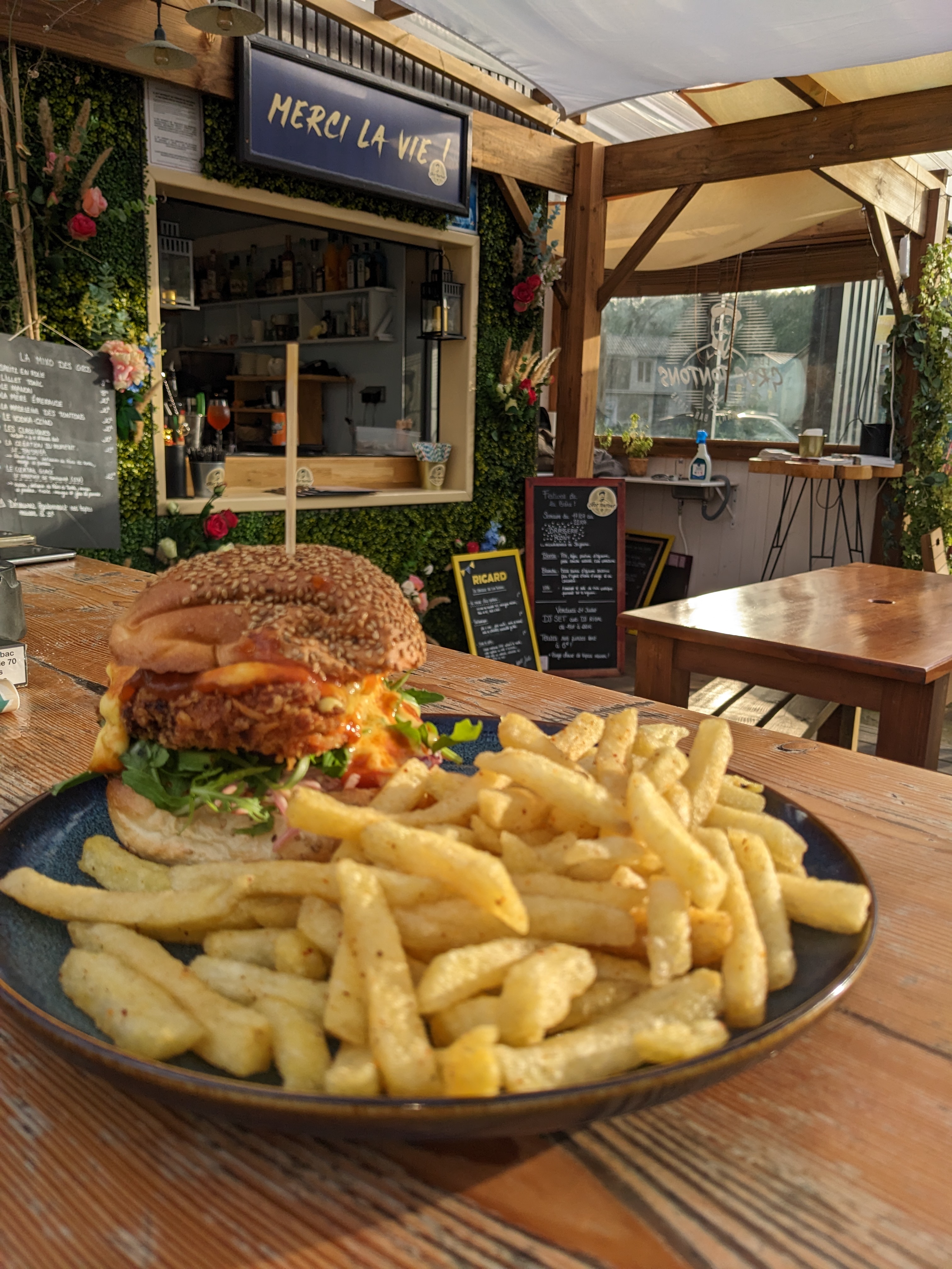 Une jolie terrasse au milieu des plantes comme cadre, une carte pleine d’humour, des burgers poulet ou côte de bœuf dingos des frittes délicieuses… tout est parfait jusqu’au café vraiment succulent ! Un service super efficace et souriant en prime… Bref, on revient quand déjà ?