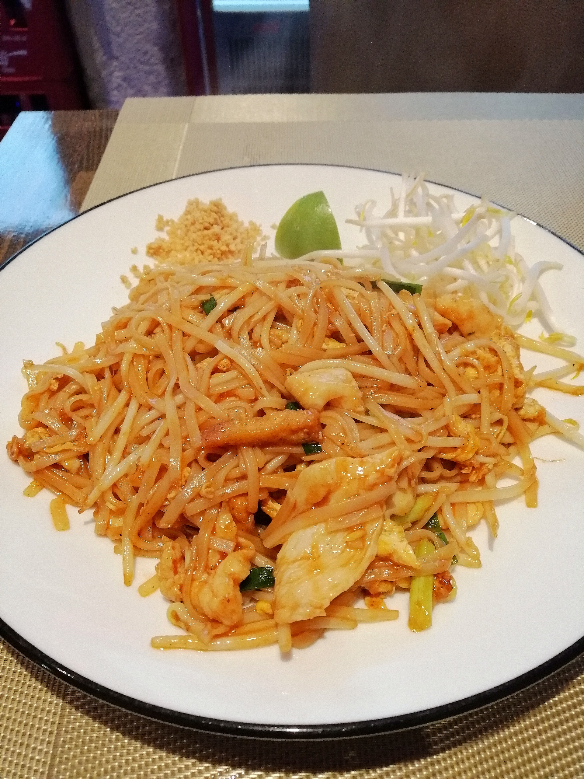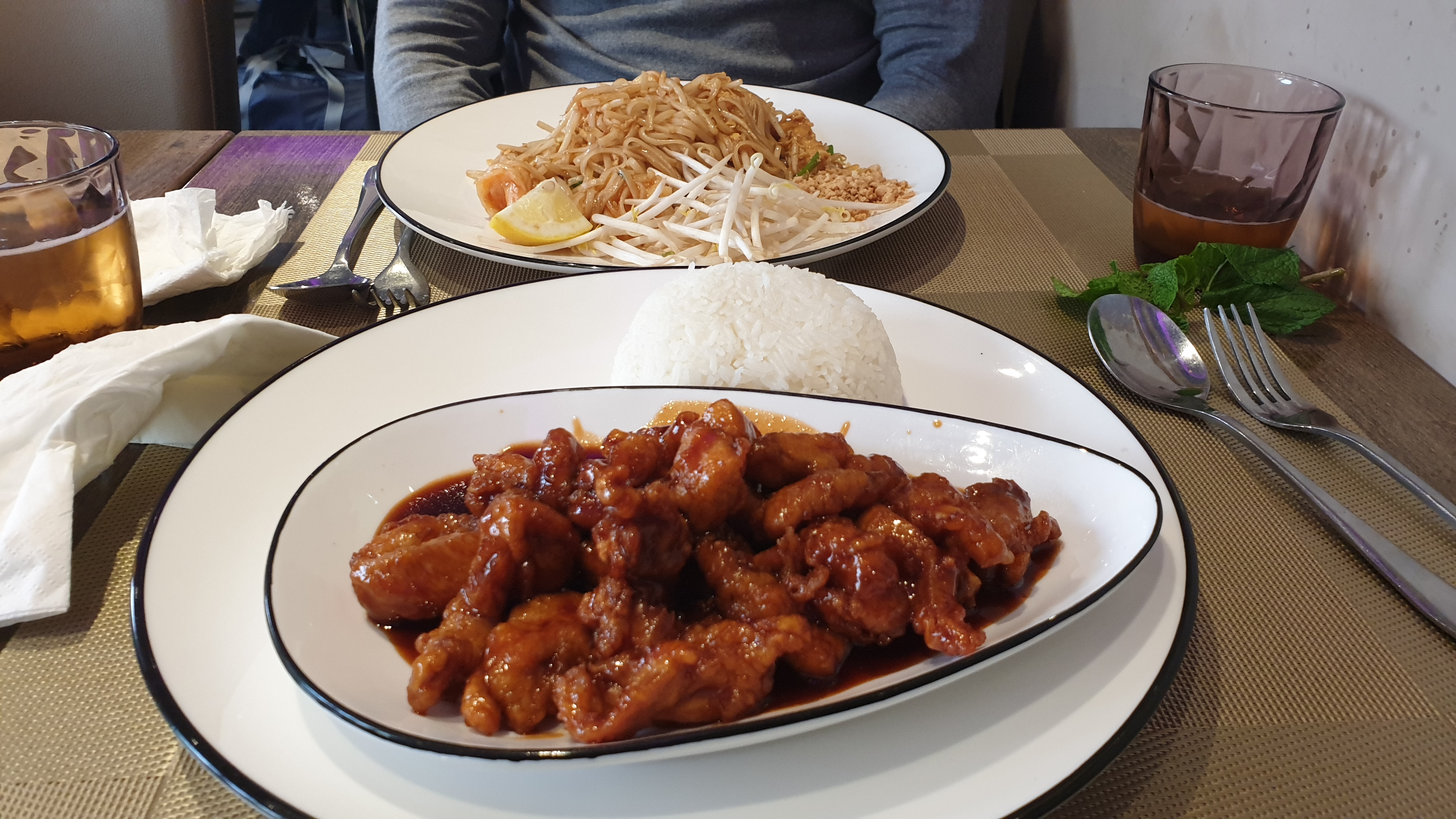 16,80 € pour un bon menu. Heureusement, le pad Thai n’est pas du tout épicé.