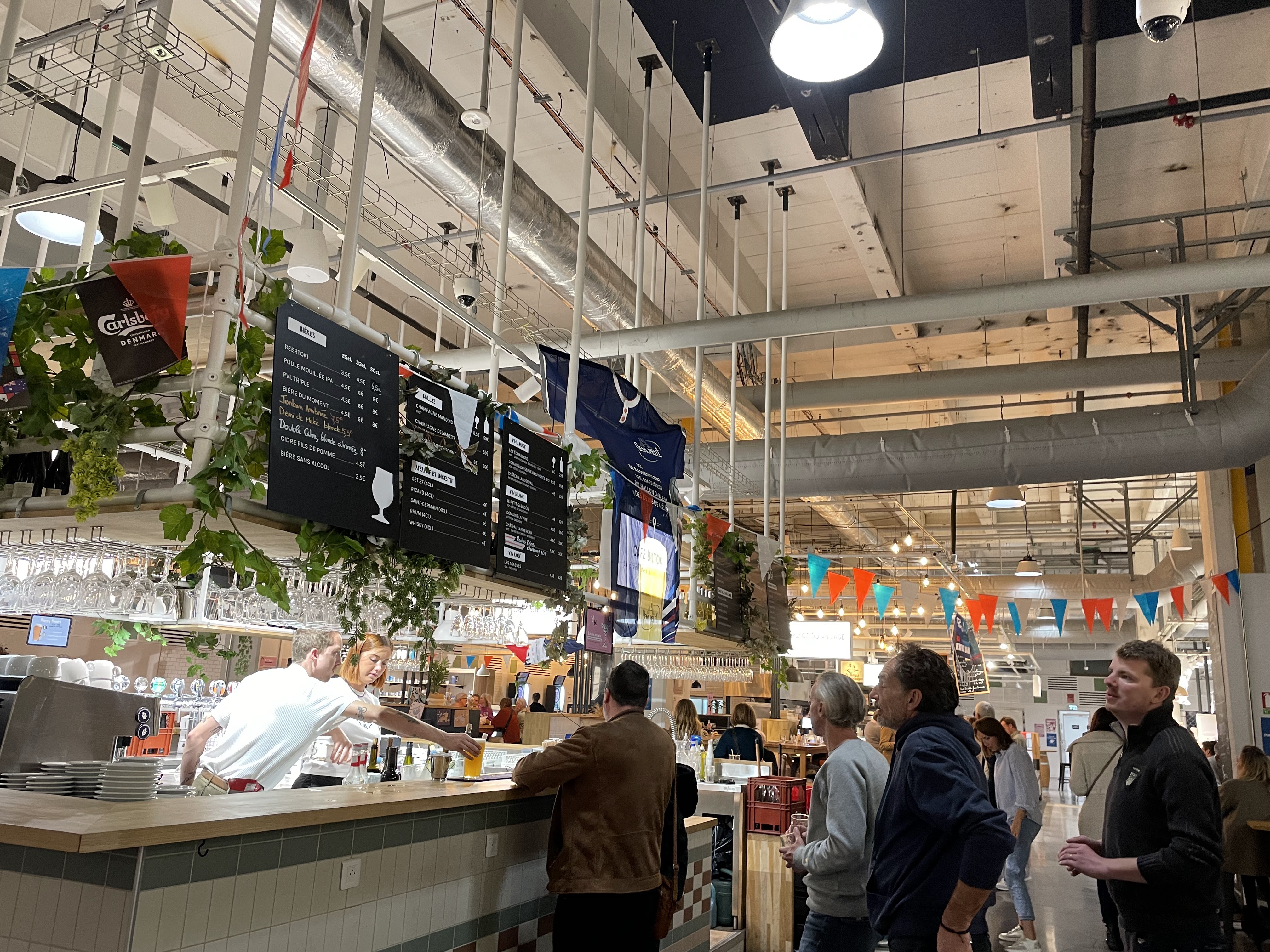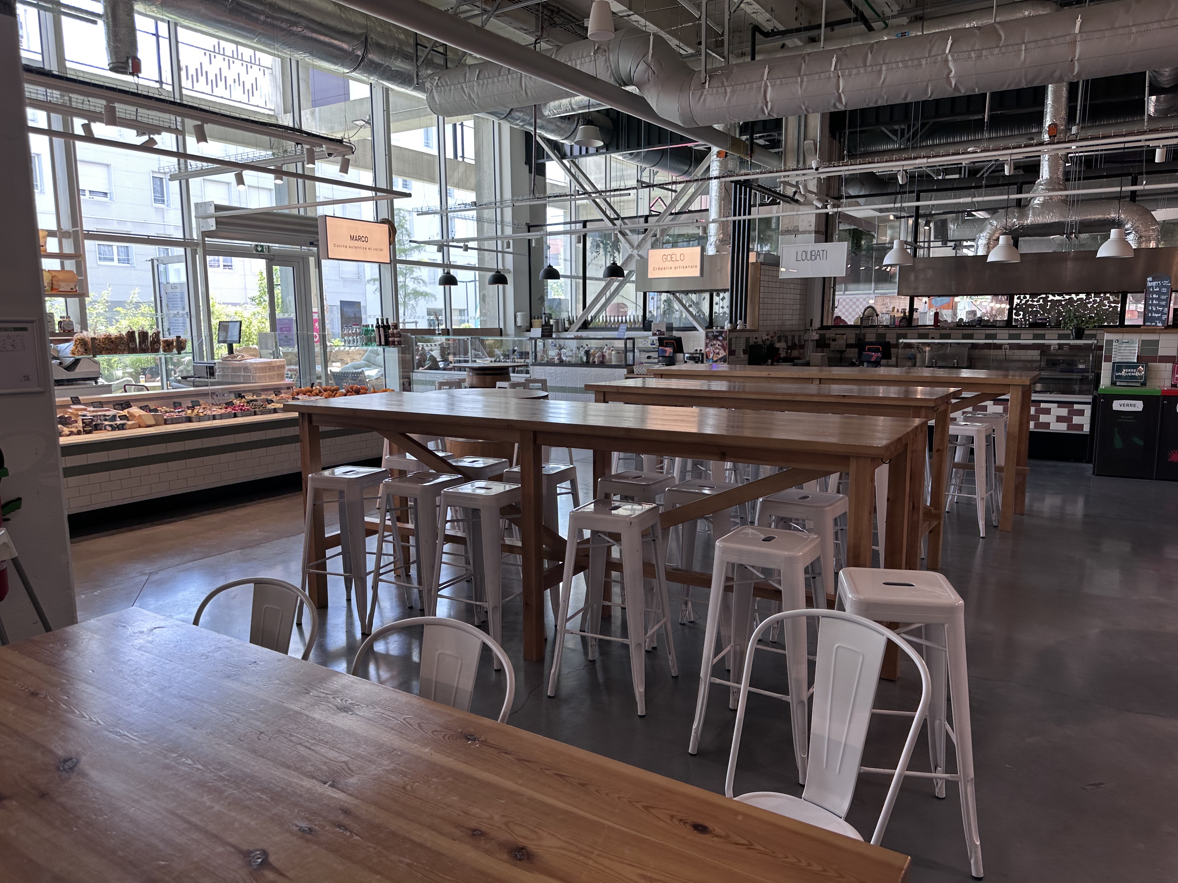 Même si le concept est sympa, nous avons été très décus. C'est trop bruyant, certains stands cher et de qualité très inégale (traiteur italien très cher et franchement moyen / fromager très bien). Bar sympa