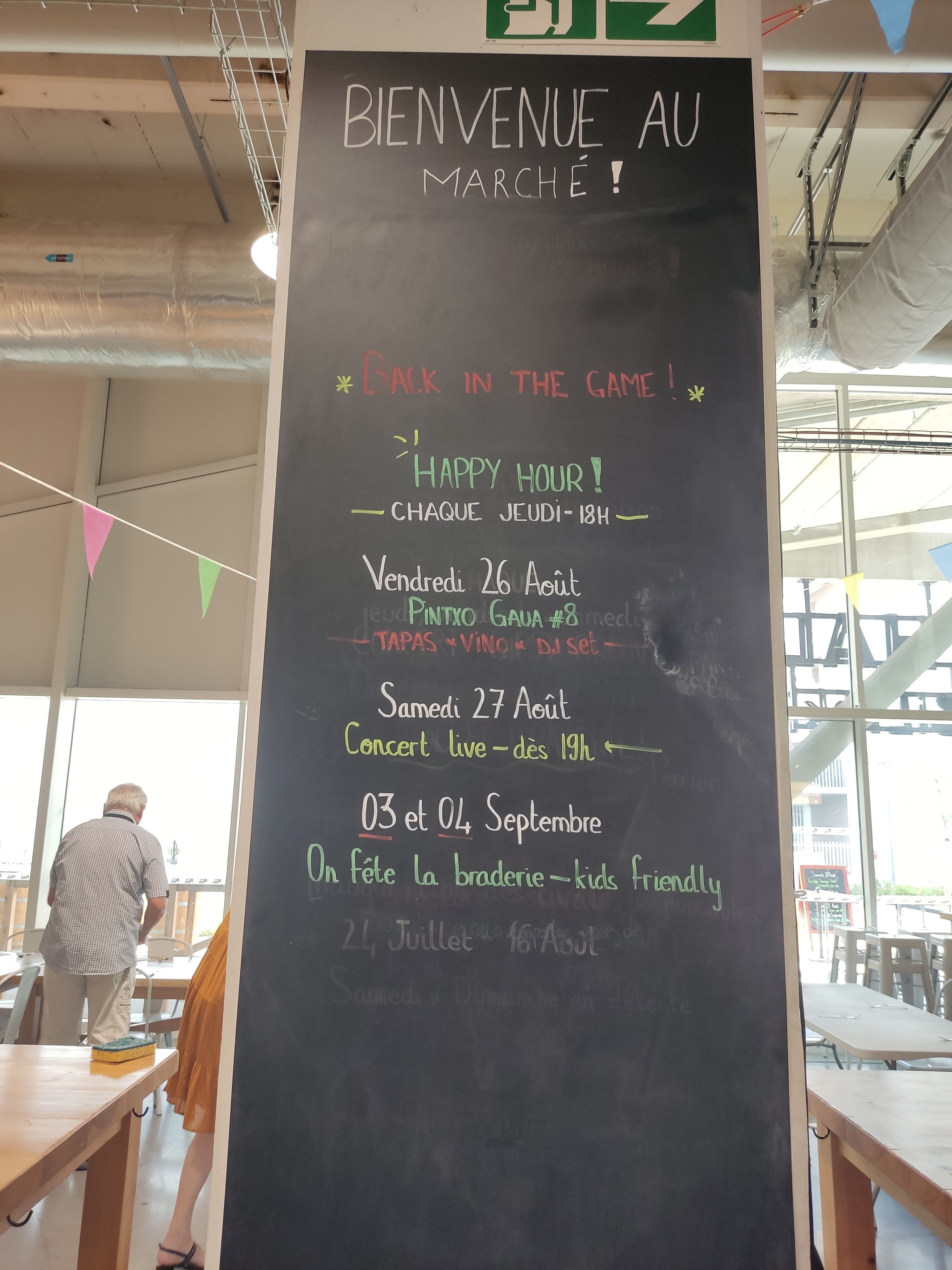 Nous y sommes allé 1 semaines après l'ouverture. C'est un endroit très sympa à l'intérieur avec plusieurs commerces. Il y a deux entrées : une côté stationnement et une côté rue. Cette dernière entrée permet de passer devant plusieurs artisans. A l'intérieur, il y a également plusieurs commerces qui s'adaptent à l'heure où les personnes sont présentes. C'est à dire qu'un marchant proposera une planche à partager autour d'un verre en plus de la vente de ces produits en étale. Il y a fromager / maraicher / poissonnier / produits locaux / vins / etc... Il y a aussi des stands de nourriture pour manger au soir en plus des planches. Je recommande vraiment cet endroit où l'on peut boire et manger avec des producteurs locaux.
