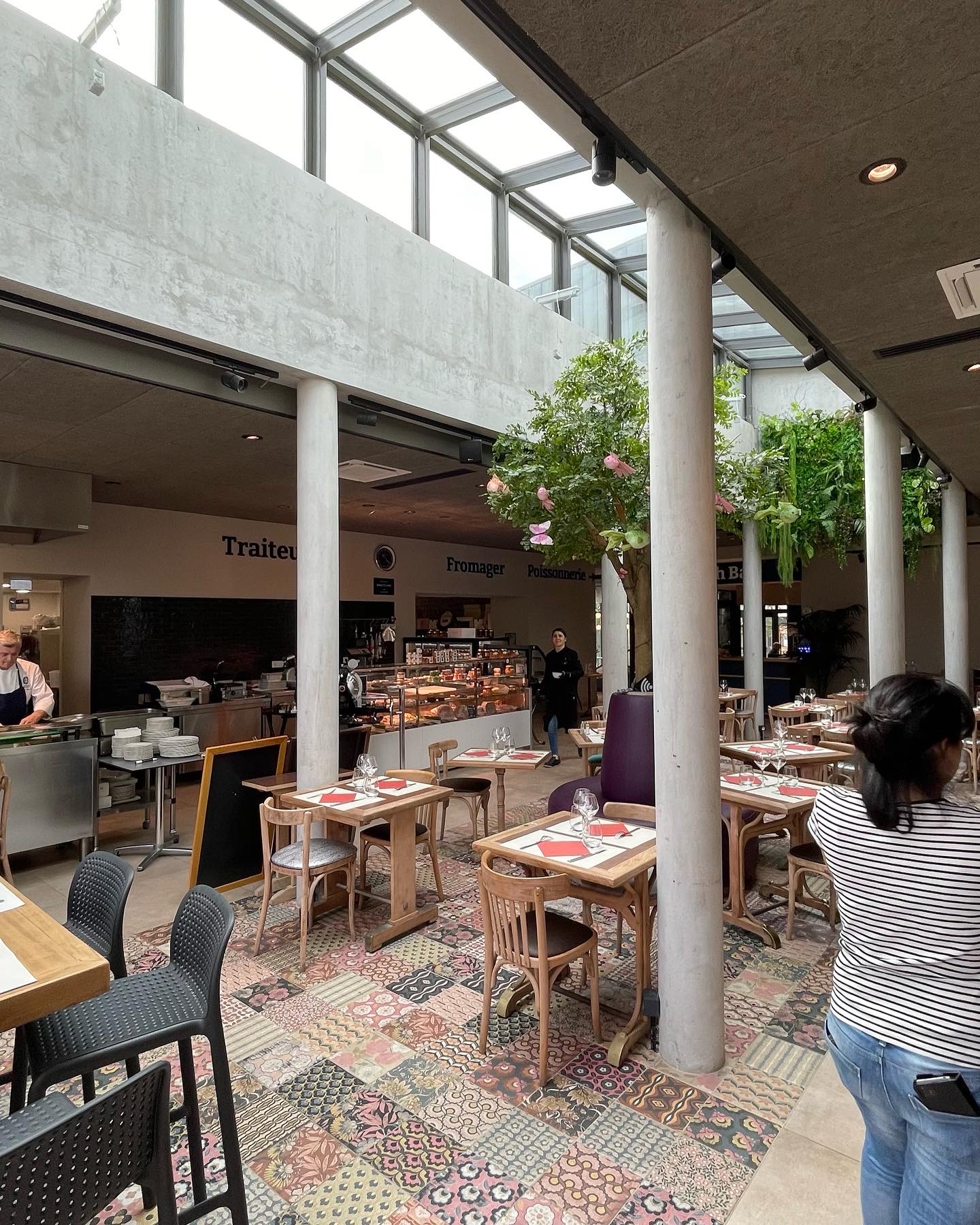 Très bel espace . On y trouve un coquet salon de thé , avec de superbe pâtisserie ! Un fromager ainsi qu’un poissonnier mais aussi Un espace de restauration au cœur de la pièce baignée de lumière. Tout est à porter de main , la possibilité de retrouver le poisson de l’étale à l’assiette, idem pour le fromage ou la pâtisserie , C’est parfait ! C’est une belle idée pour compléter la vie commerçante de Limonest .